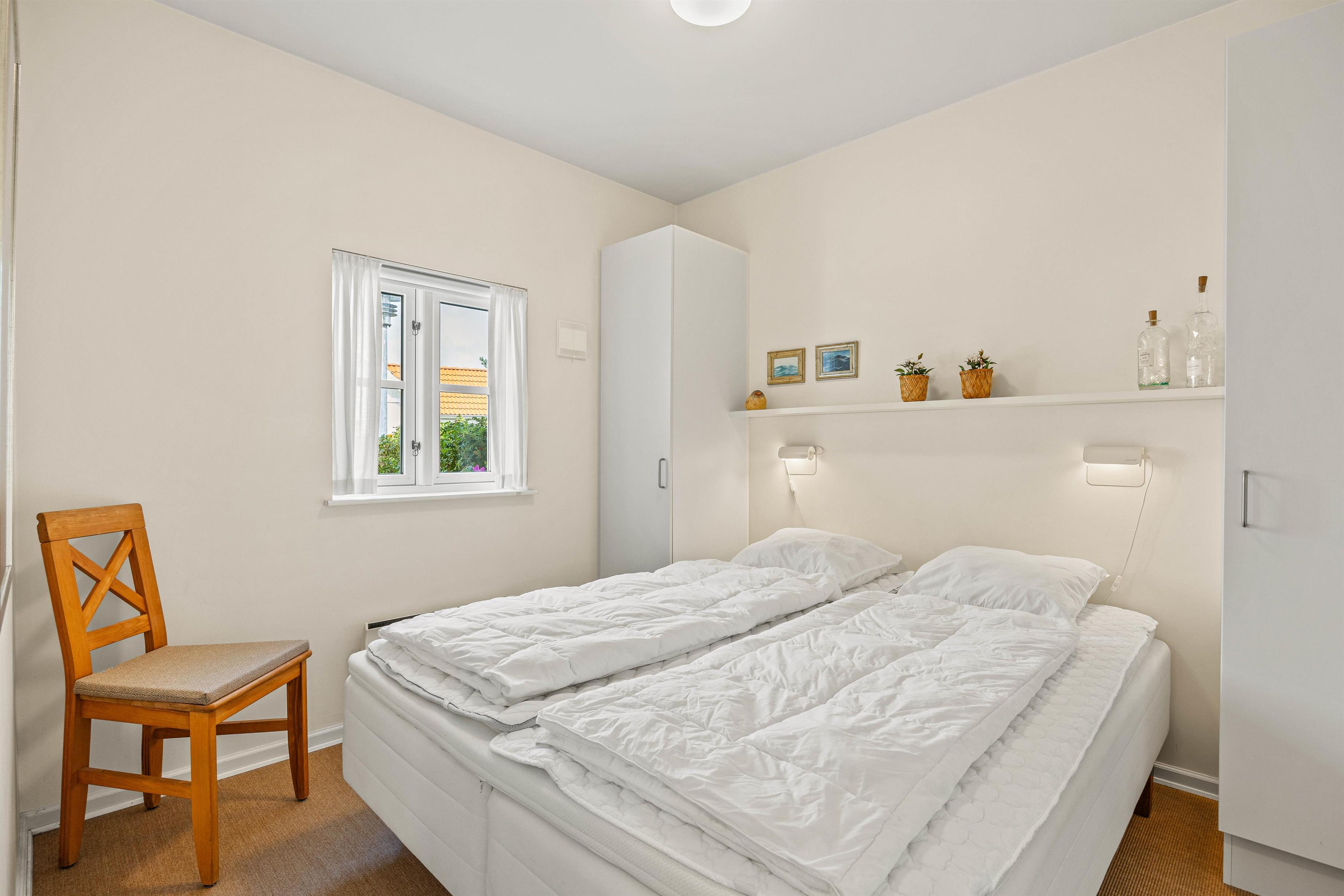 Sommerhusets 124 kvadratmeter fordeler sig på to plan. På førstesalen ligger 2 af de 3 soveværelser, mens det tredje soveværelse ligger i stueetagen. På soveværelserne er der sisaltæpper på gulvet. I stueetagen ligger også badeværelset, hvor spabadet står klar til at forkæle jer med afslapning.
