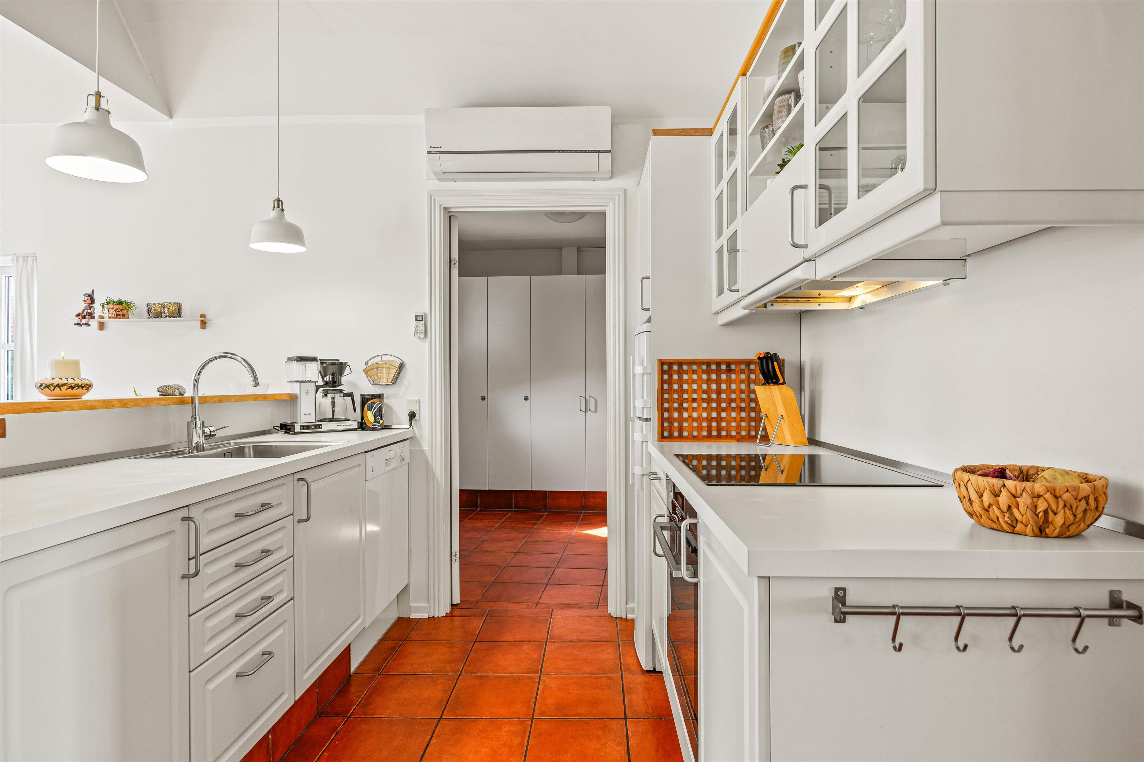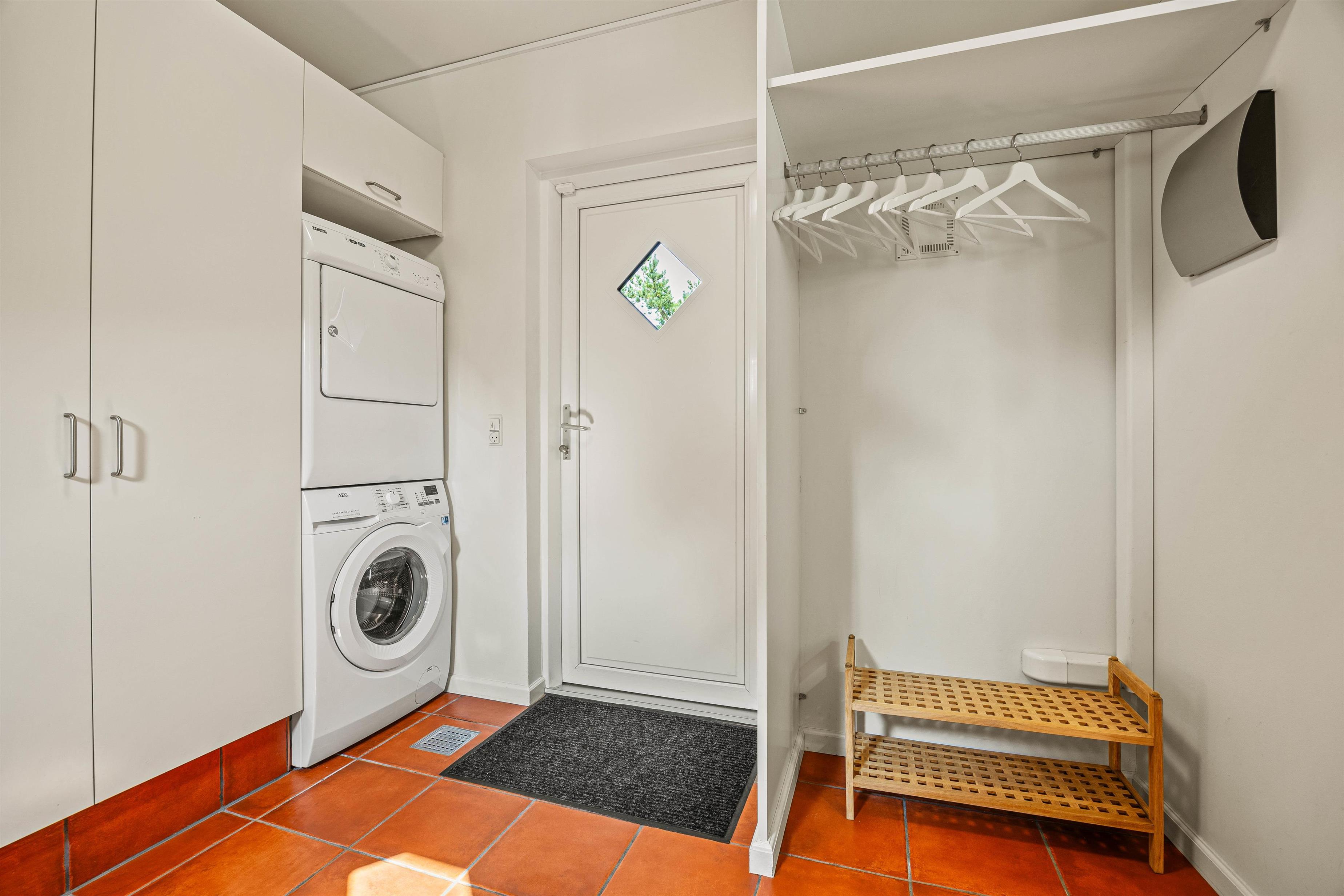I sommerhuset har I alle de praktiske faciliteter, I måtte have brug for på ferien. I køkkenet klarer opvaskemaskinen jeres opvask, og i bryggerset har I en vaskesøjle, hvor I kan klare tøjvasken på ferien. Sommerhuset opvarmes desuden af en energivenlig varmepumpe.