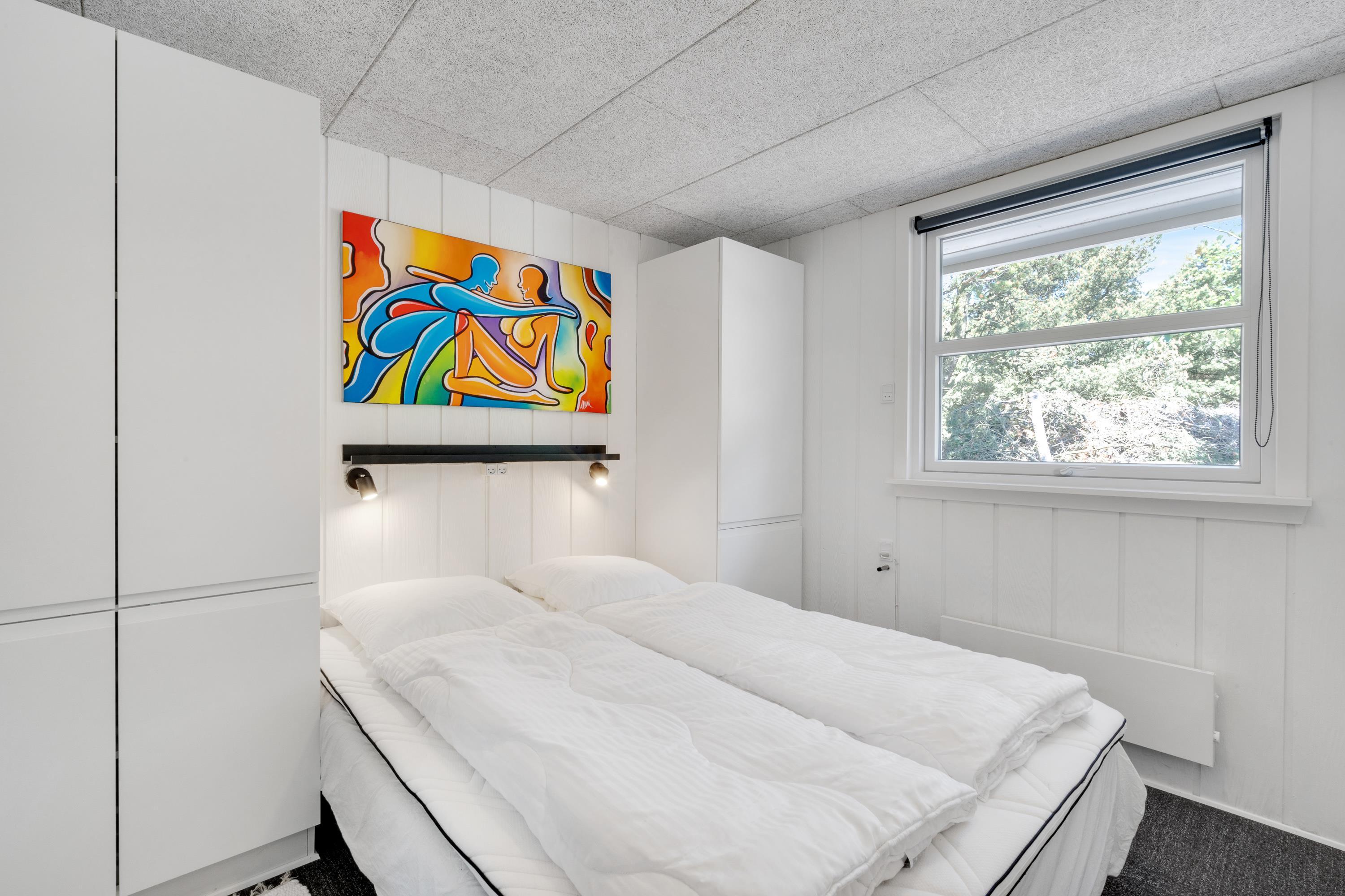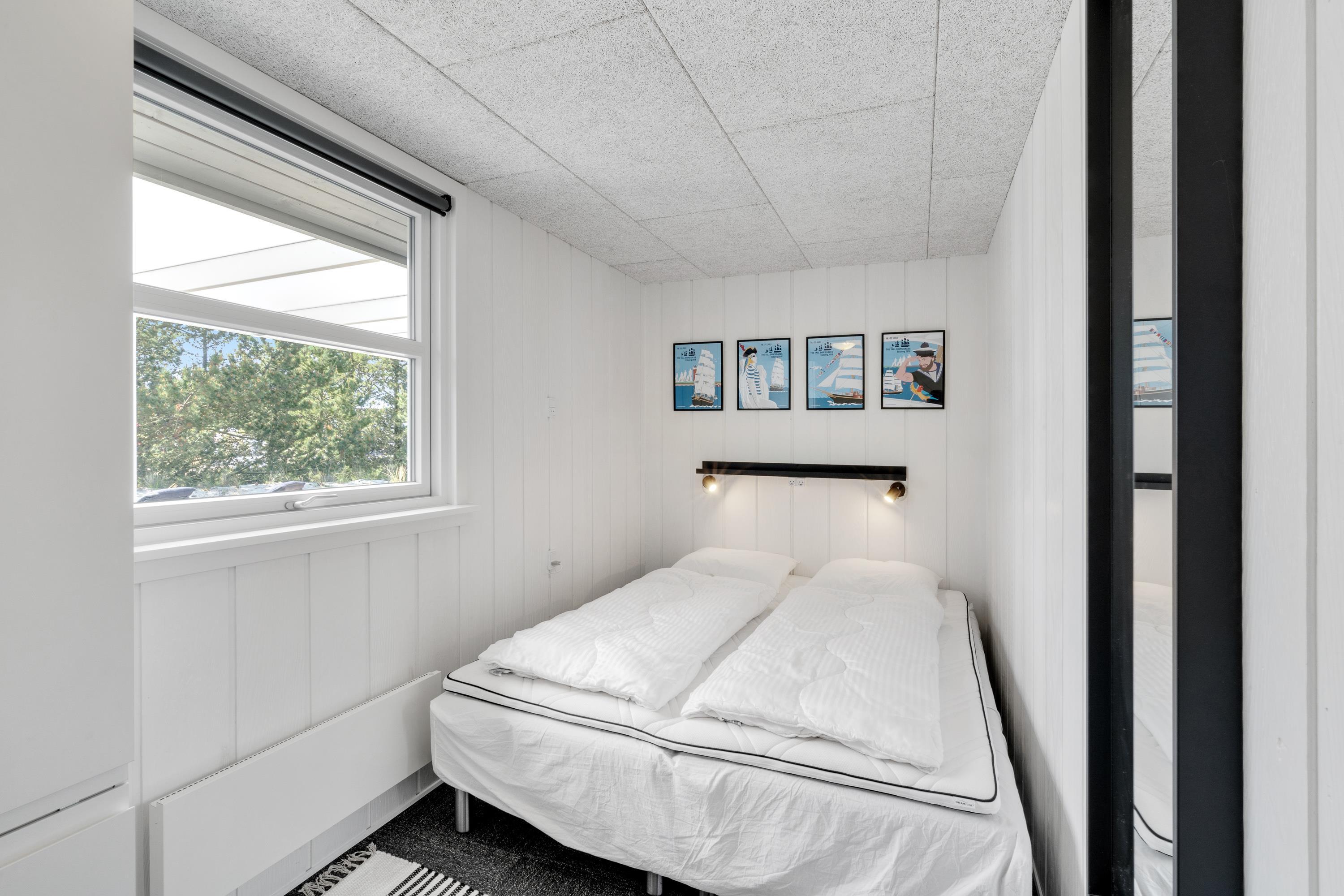 Det skønne sommerhus på 55 kvadratmeter er indrettet med 2 soveværelser, der begge har en dobbeltseng, samt 1 badeværelse med gulvvarme – her er der ingen, der fryser fødderne fra morgenstunden.