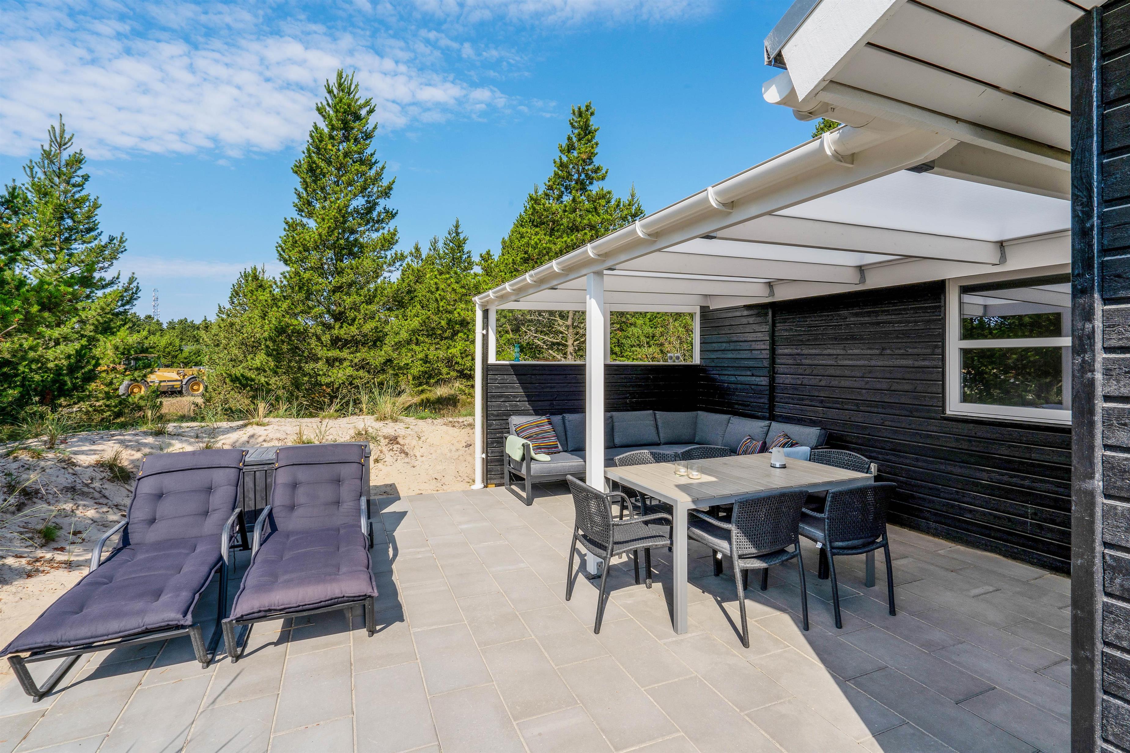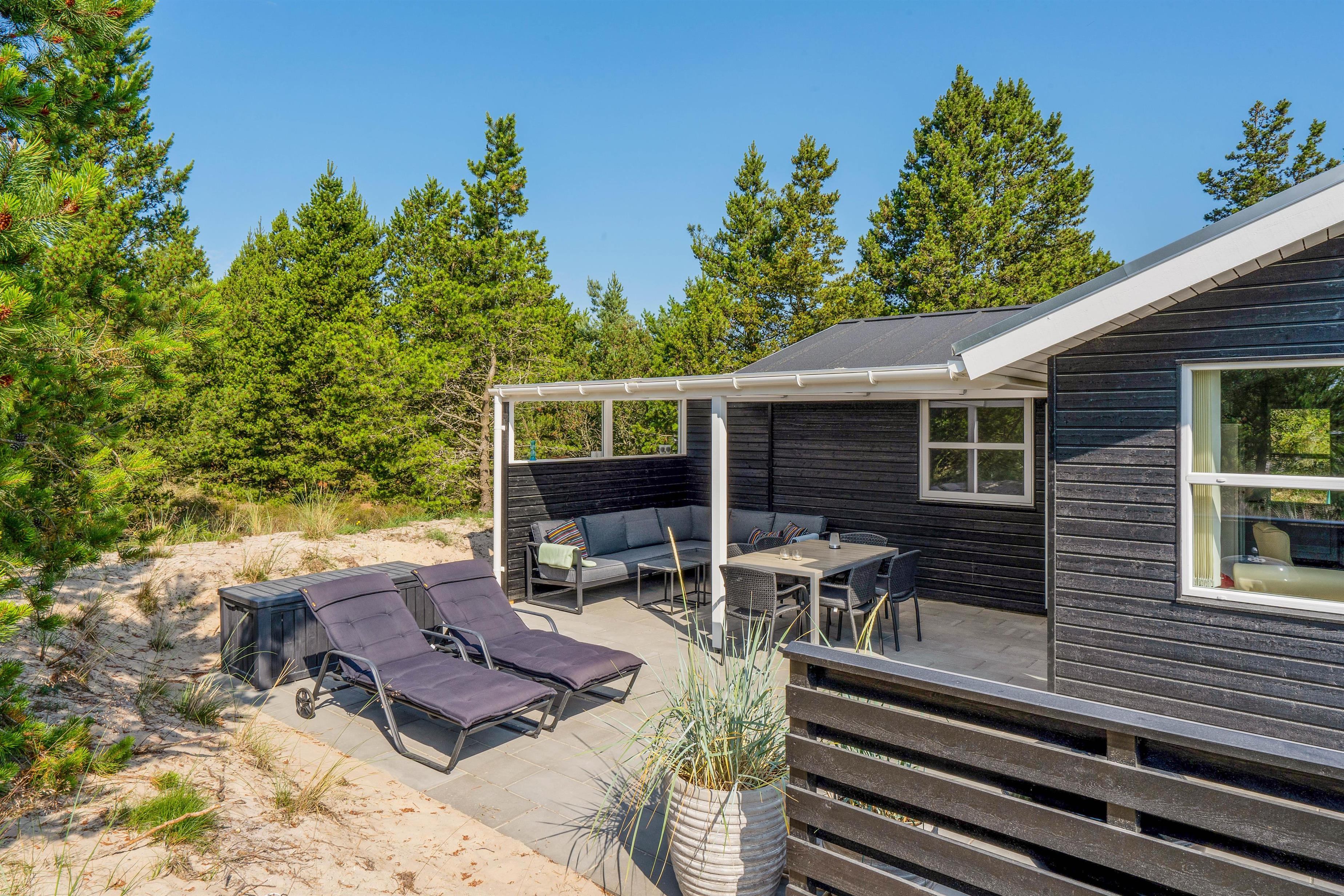 Sommerhuset har en skøn terrasse, hvor I kan søge ud på de varme feriedage. På terrassen er der både havemøbler og liggestole, så I har mulighed for at finde jer godt til rette på en god plet i solen med en god bog og kolde drikkevarer.