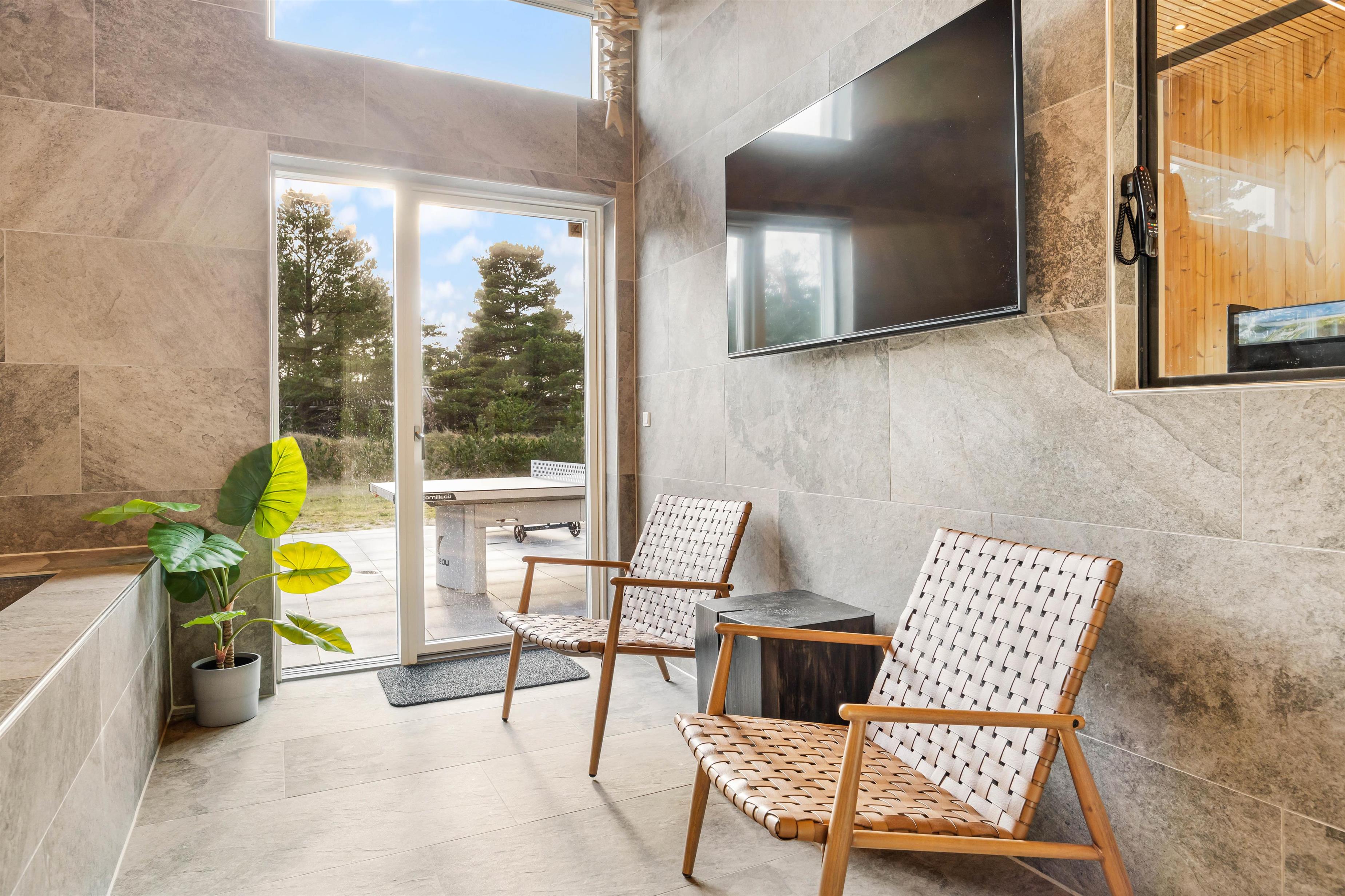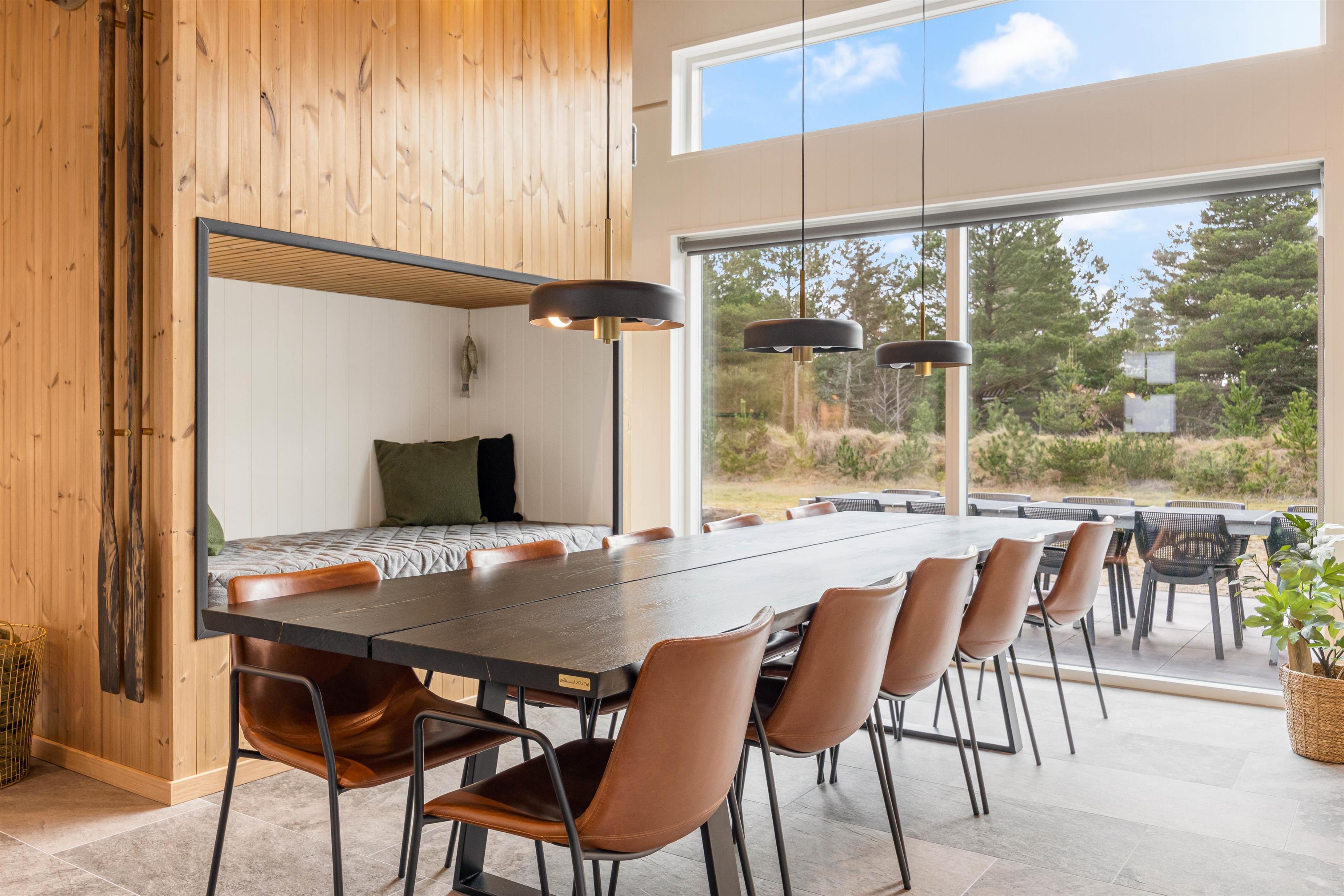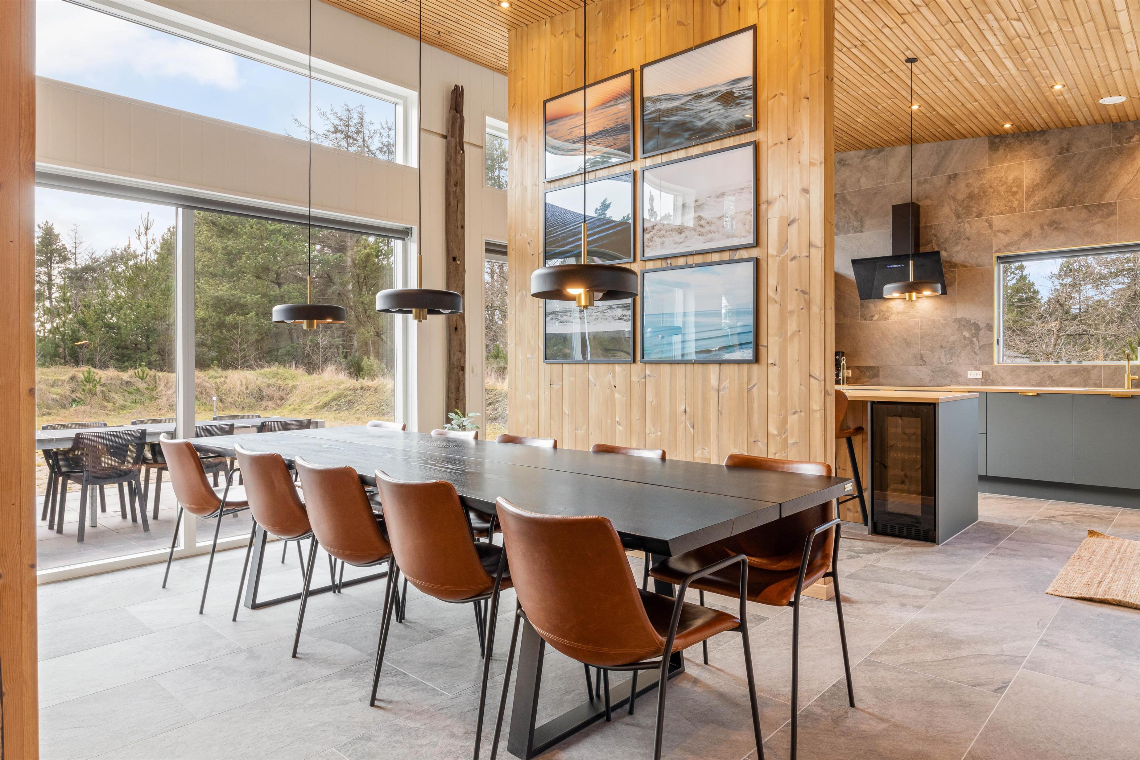 Der er højt til loftet i feriehuset, der er opført og bygget i kvalitetsmaterialer, der indbyder til ren afslapning. Arkitekturen er holdt i en åben nordisk moderne og lys stil med mange fine indretningsdetaljer og lysindfald fra panoramavinduerne.