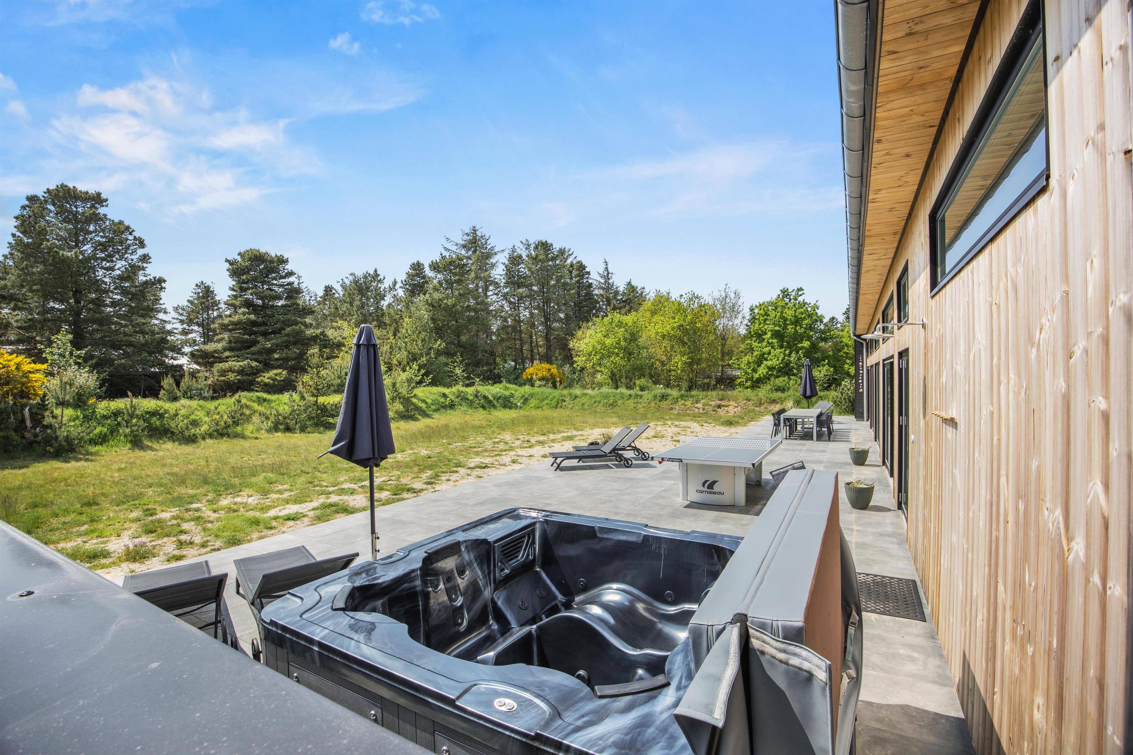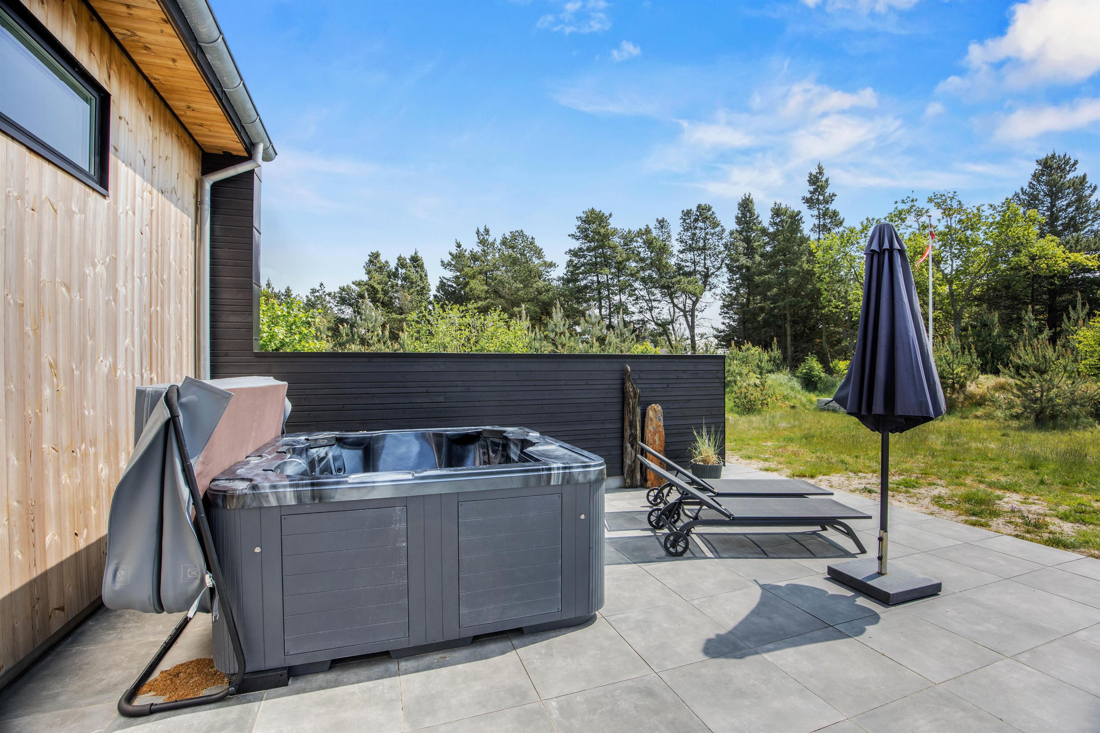 Nyd udelivet på den læfyldte 160m2 store terrasse, hvor I op til 6 personer kan benytte jer af udespaens varme vand med kig til stjerner om aftenen.