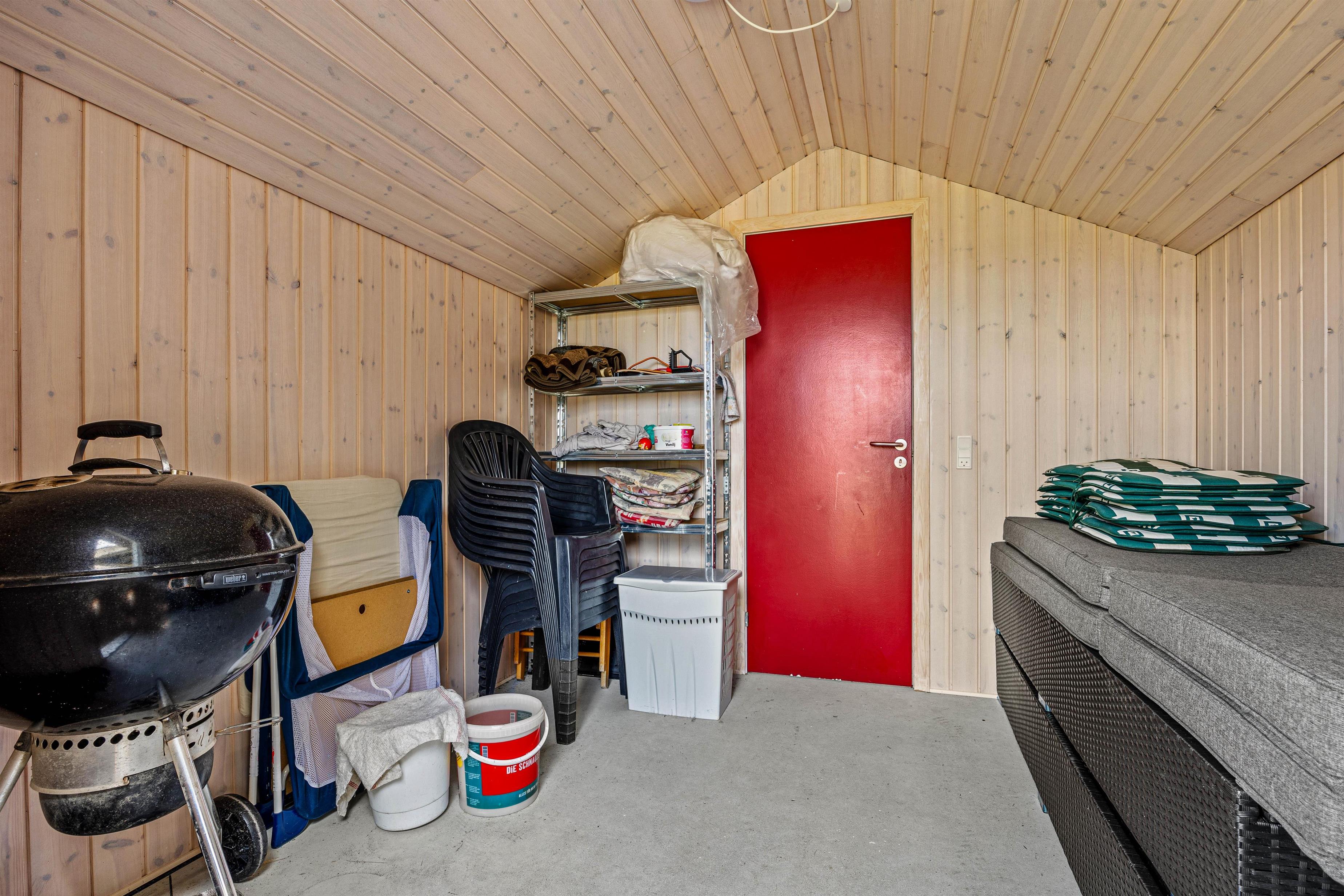 Sommerhuset ligger på en fin naturgrund, hvor I kan nyde udelivet fra morgen til aften. Den delvist overdækkede terrasse er udstyret med havemøbler og grill, så I nemt kan gøre plads til både afslappede morgenstunder med kaffe og lune sommeraftener med grillmad under åben himmel.