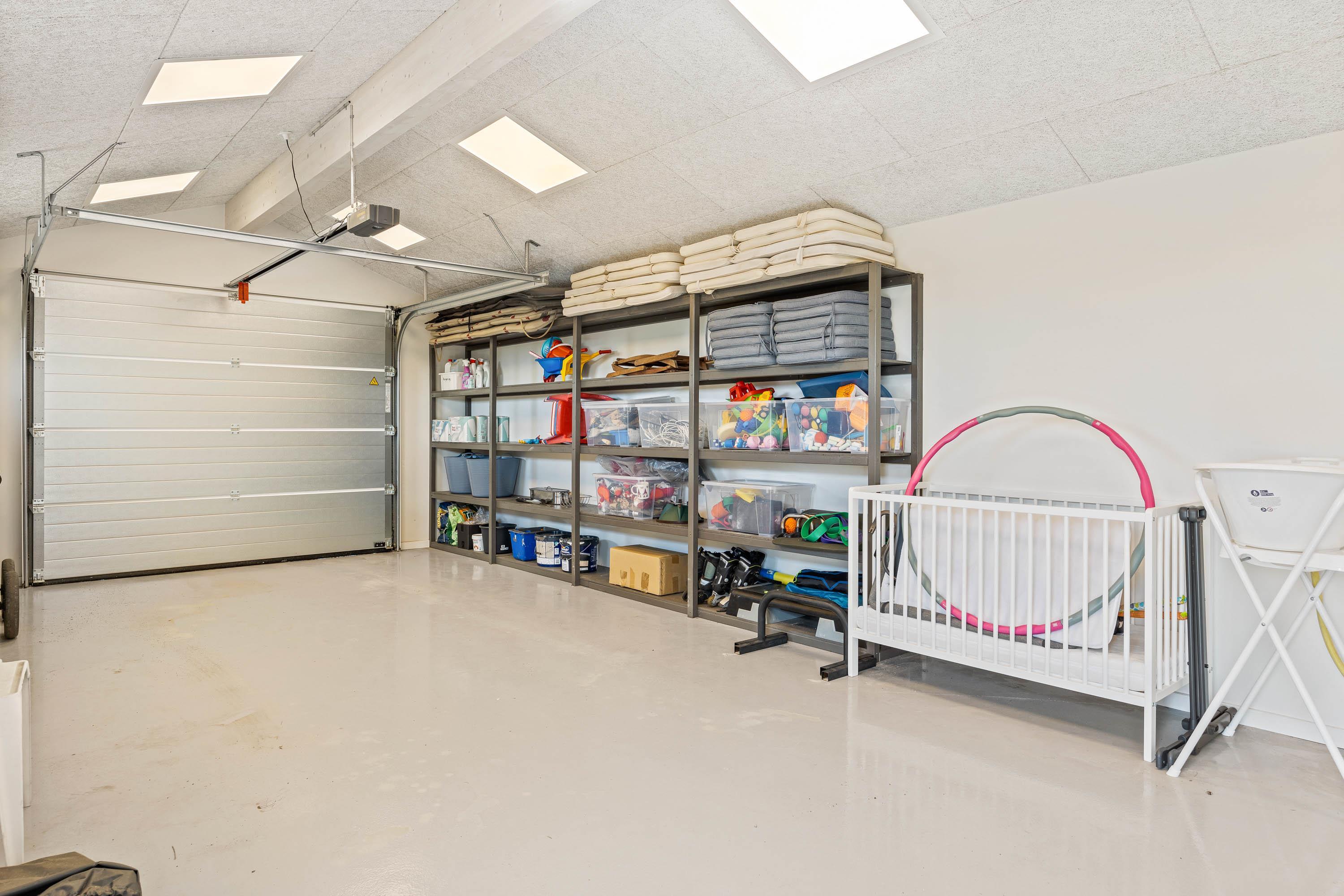 På feriens varme dage kan I rykke udendørs, hvor der venter jer et udeområde, der byder på noget for både store og små. Feriens yngste gæster kan se frem til at hoppe på trampolin og lege i legetårn med gyngestativ. I garagen er der træningsudstyr til både de store børn og voksne, som kan bruges udenfor sammen med træningsstativet.