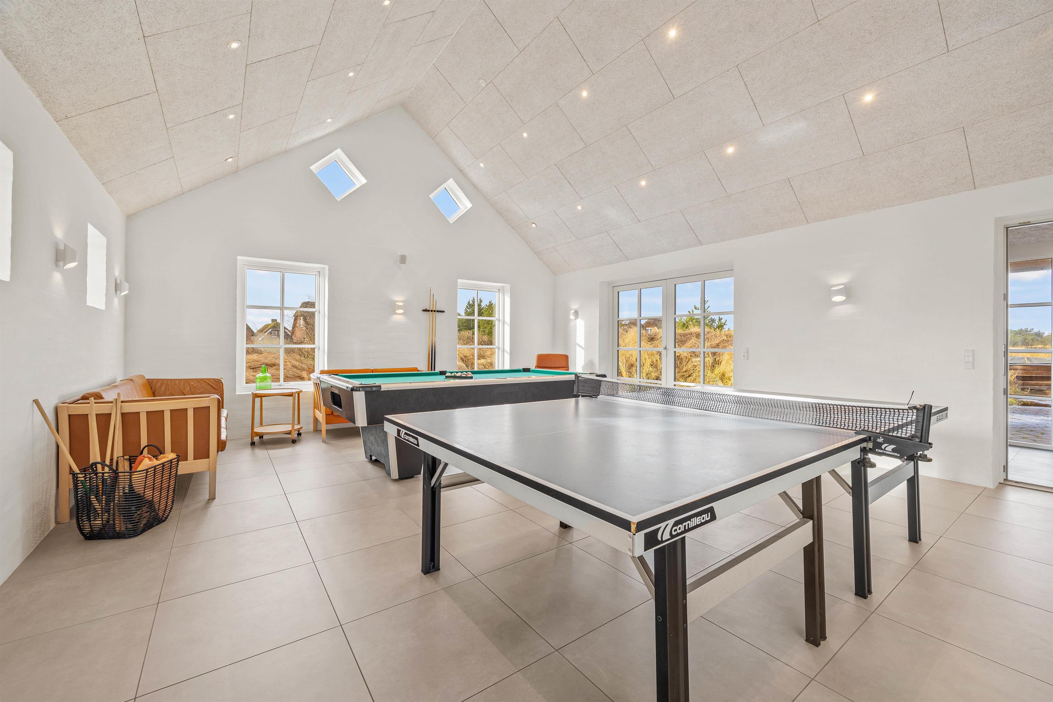 Et andet højdepunkt er sommerhusets aktivitetsrum på 45 m2. I aktivitetsrummet kan I både spille billard og bordtennis, og I vil med garanti komme til at tilbringe mange underholdende timer sammen her. Desuden er der også et bordfodboldbord i feriehuset - var der nogen, der sagde spilaften med turnering?