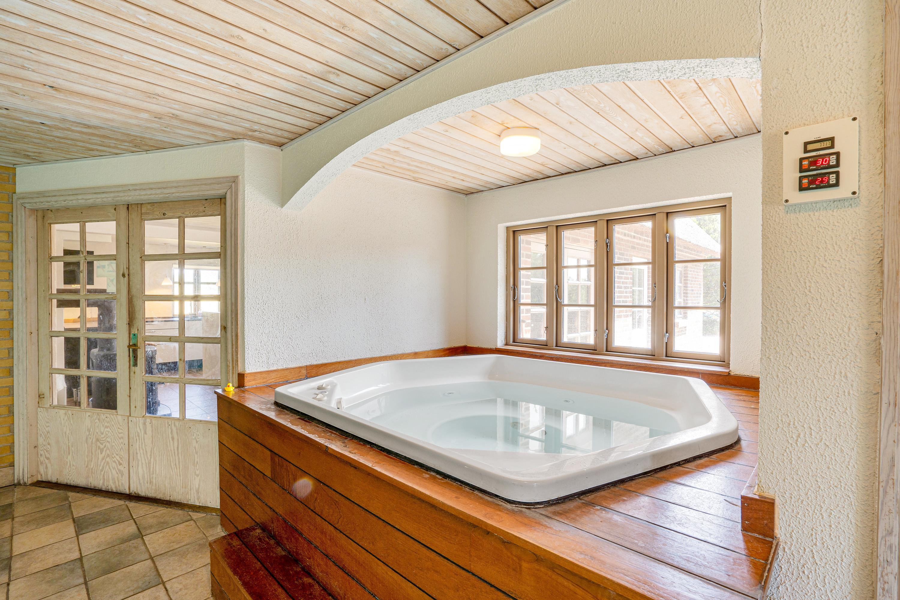 Højdepunktet i sommerhuset på Horns Rev 20 er uden tvivl poolrummet. Her er der både noget for dem, der vil være aktive, og for dem, der hellere vil slappe af. I den 18 kvadratmeter store pool kan vandhundene give den gas i timevis med mange sjove vandlege.