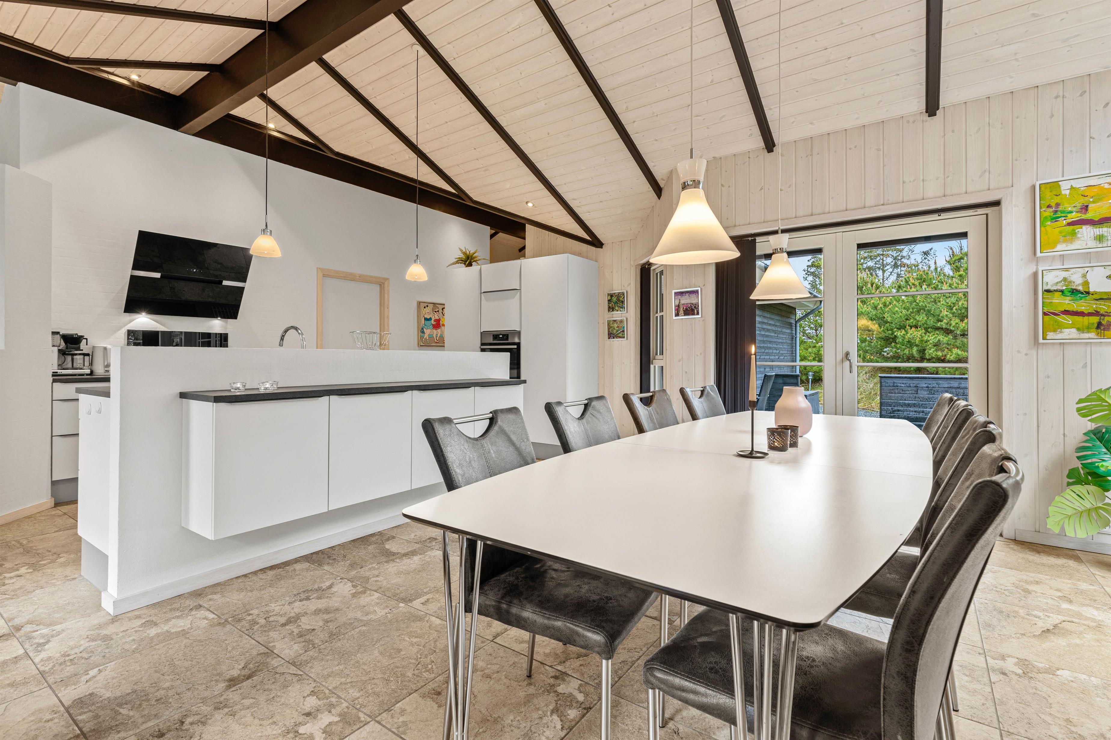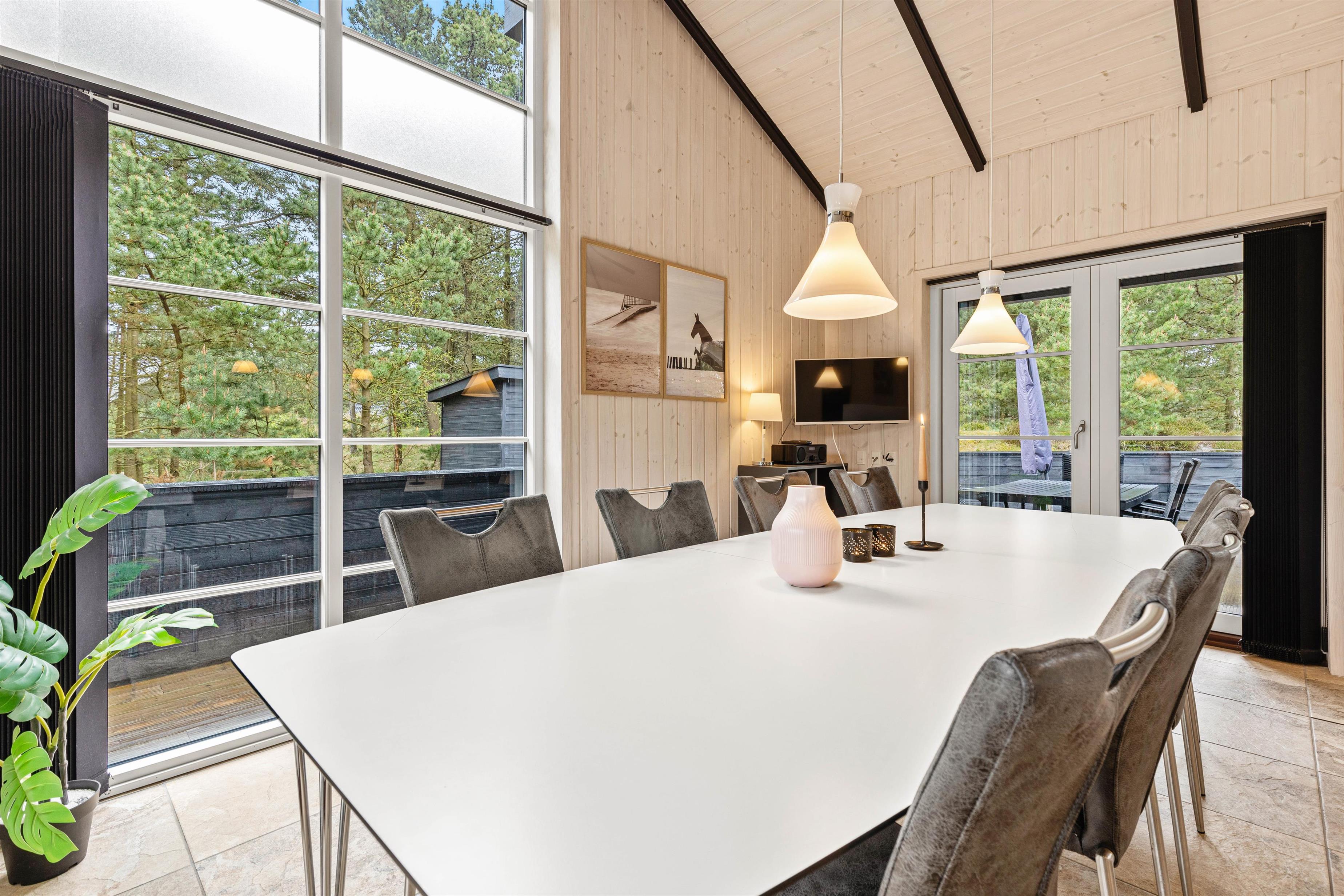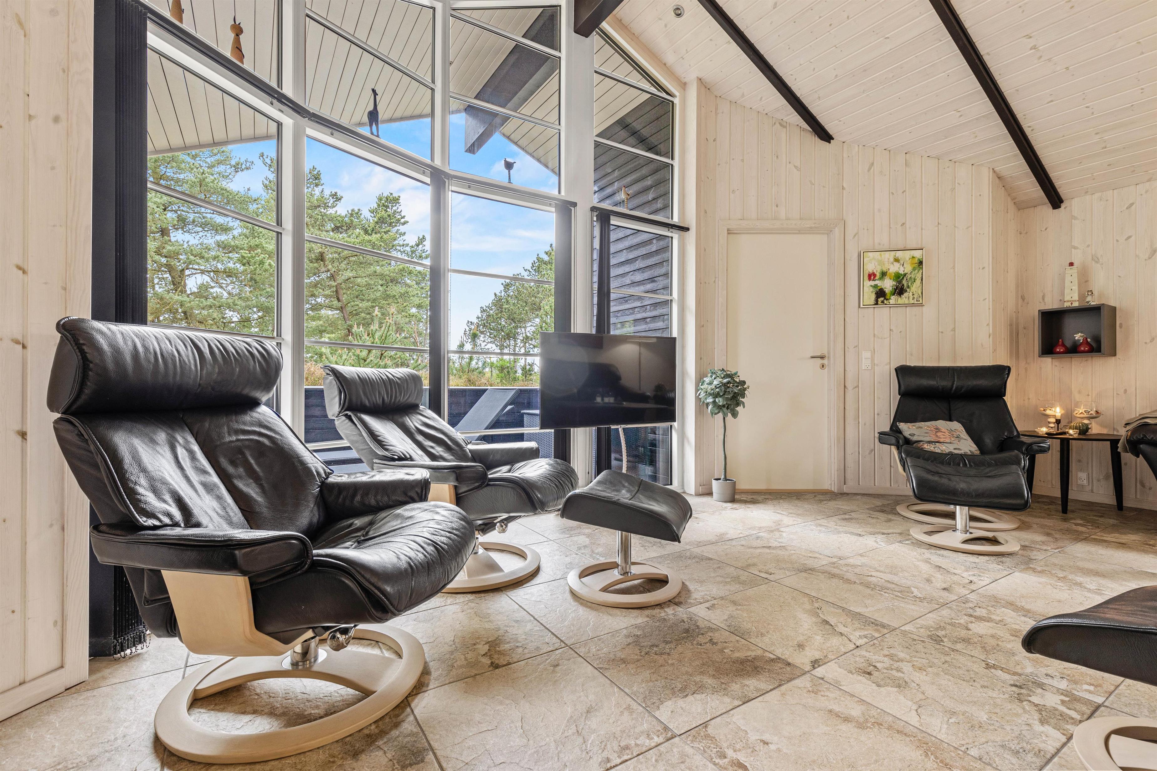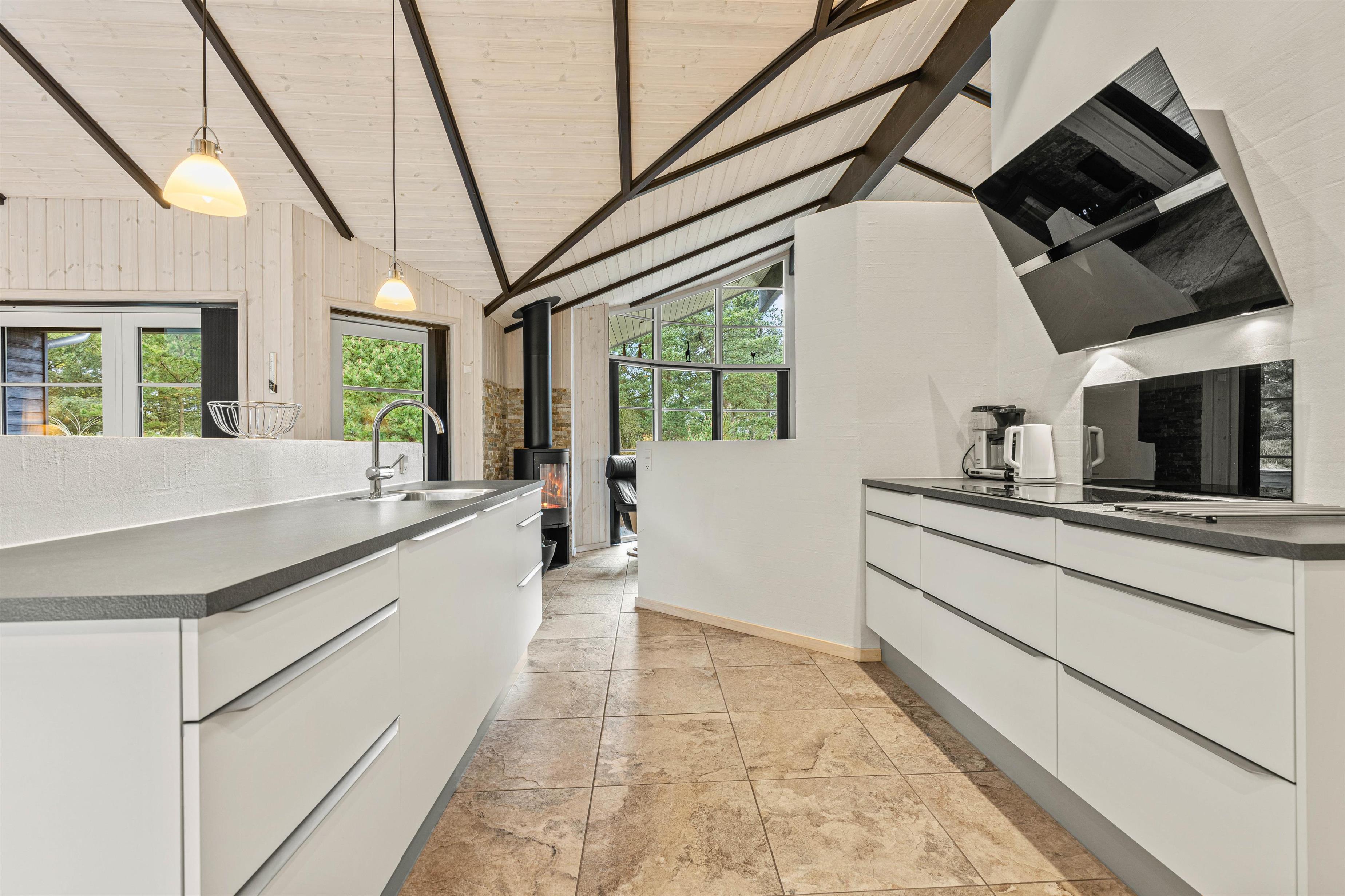 Lige meget om I hygger med madlavningen i køkkenet, slænger jer i lænestolene foran brændeovnen eller sidder i solen på terrassen, kan I nyde udsigten ud på den grønne natur, som giver en fantastisk ro i sjælen.