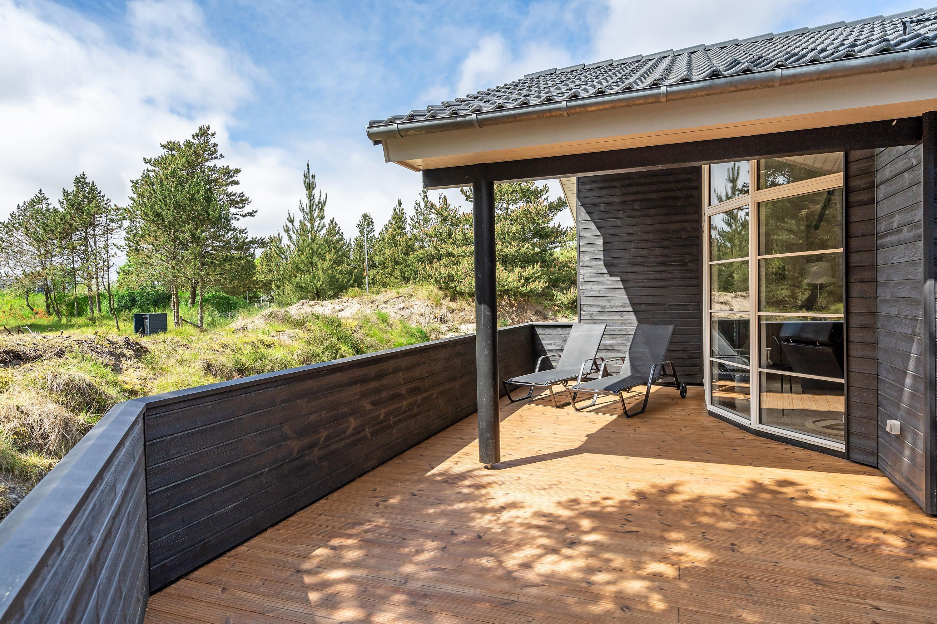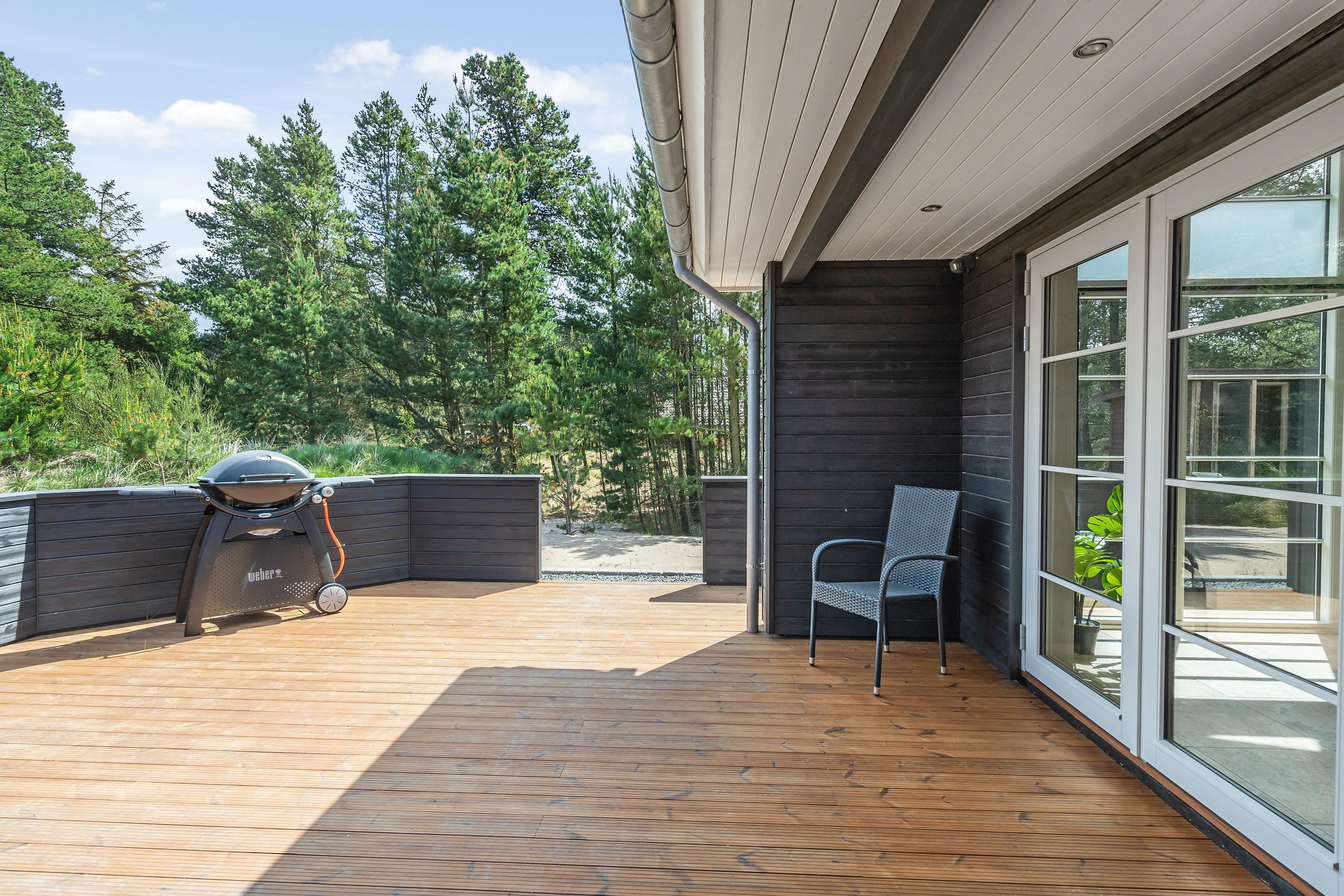 På den delvist overdækkede og læfuldte terrasse kan I tilbringe nogle skønne grillaftener og nyde den friske havluft, mens solen langsomt sænker sig ned i Vesterhavet. Der er naturligvis også mulighed for at fordybe sig i en god bog eller tage sig en lur på terrassens solvogne.