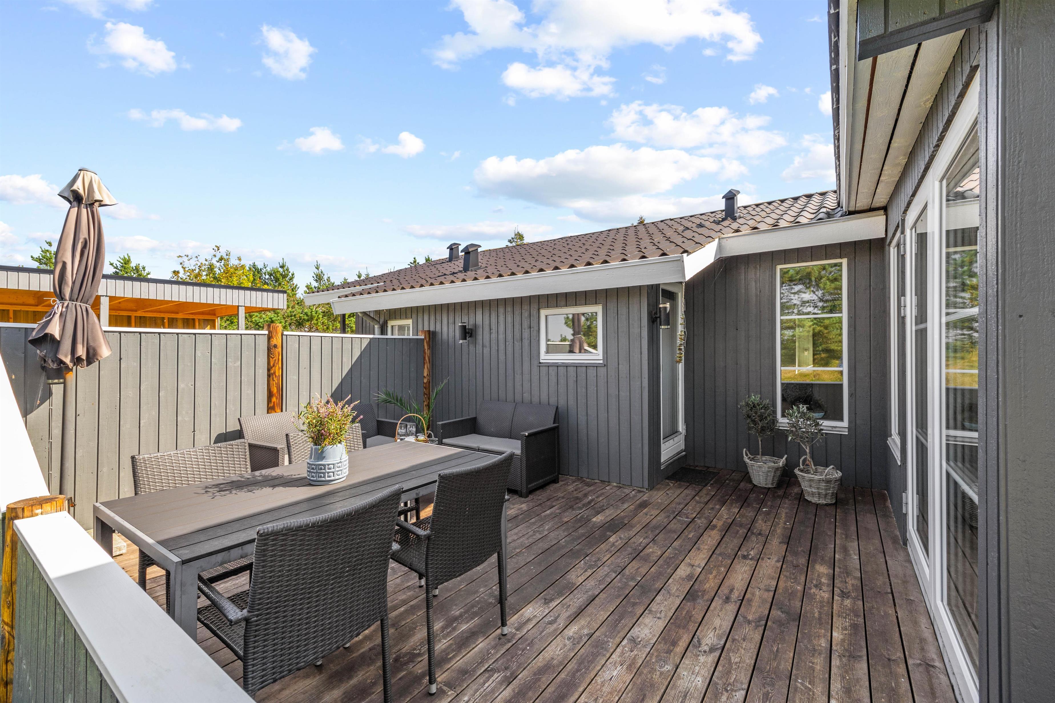 Sommerhuset har 2 gode terrasser, hvorfra I kan nyde sommersolen og fuglenes kvidren. På terrassen står havemøbler og liggestole klar til jer, så I kan sætte jer godt til rette med en god bog. Imens kan børnene lege på plænegrunden, hvor der både er gyngestativ og trampolin til familiens yngste.