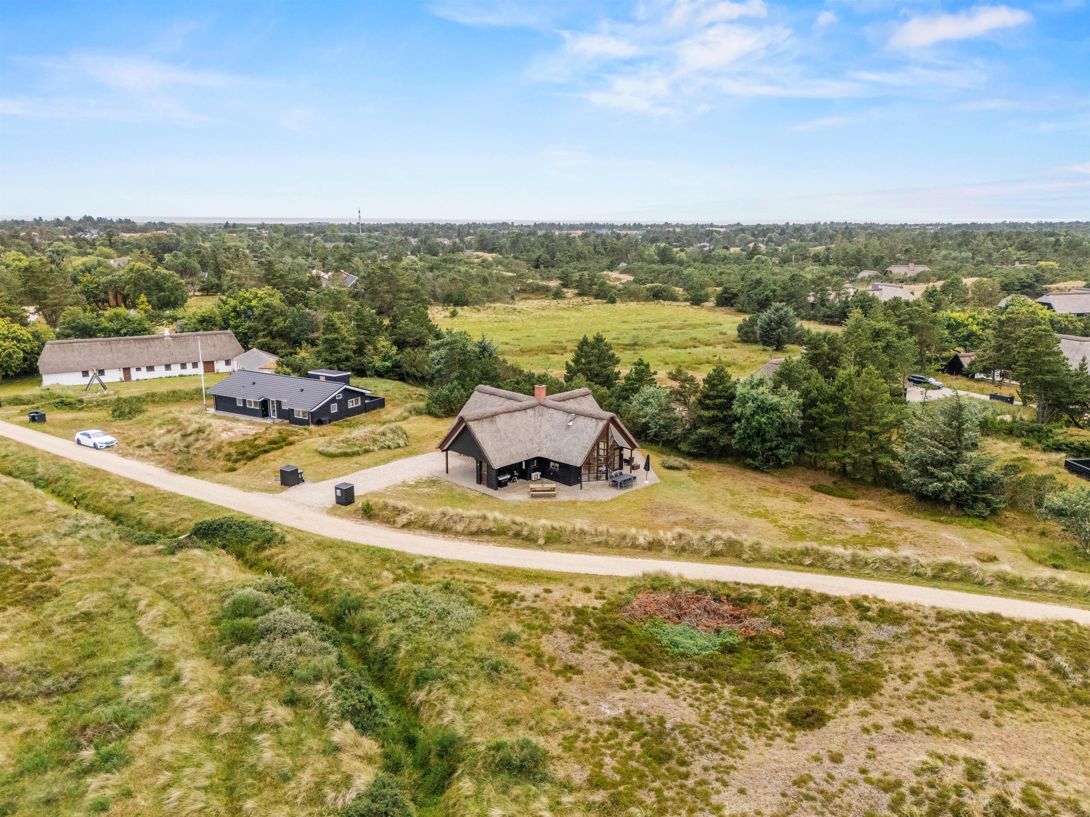 På den 2184 m² store klitgrund har I rigelig plads til udendørs aktiviteter eller blot afslappende stunder i det fri, og når I er klar til nye eventyr ude omkring i lokalområdet, er sommerhuset i miljøvenlighedens tegn udstyret med et ladestik til jeres elbil.