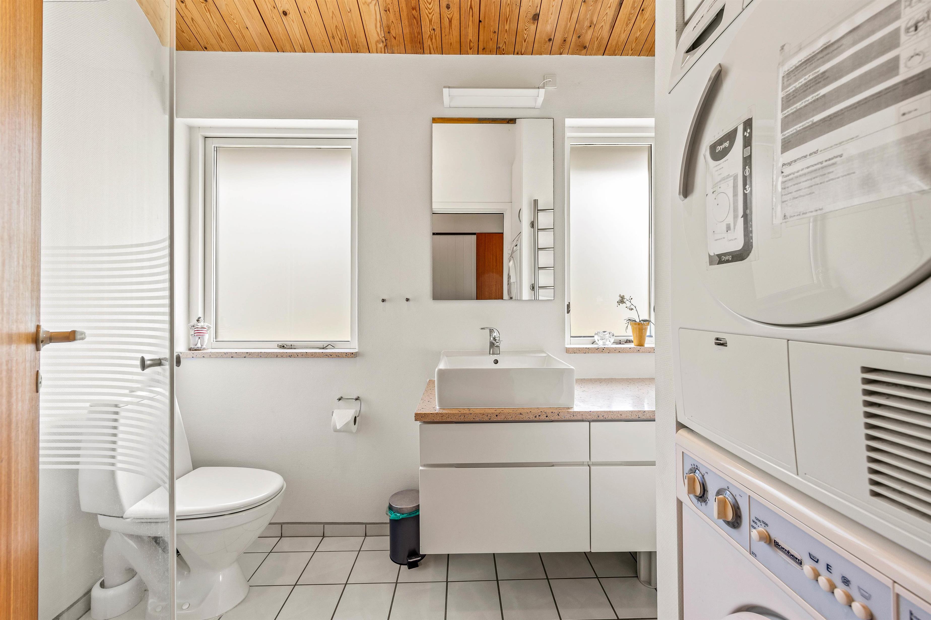 På badeværelset er desuden installeret vaskemaskine og tørretumbler, så I evt. kan vaske strandhåndklæderne undervejs.