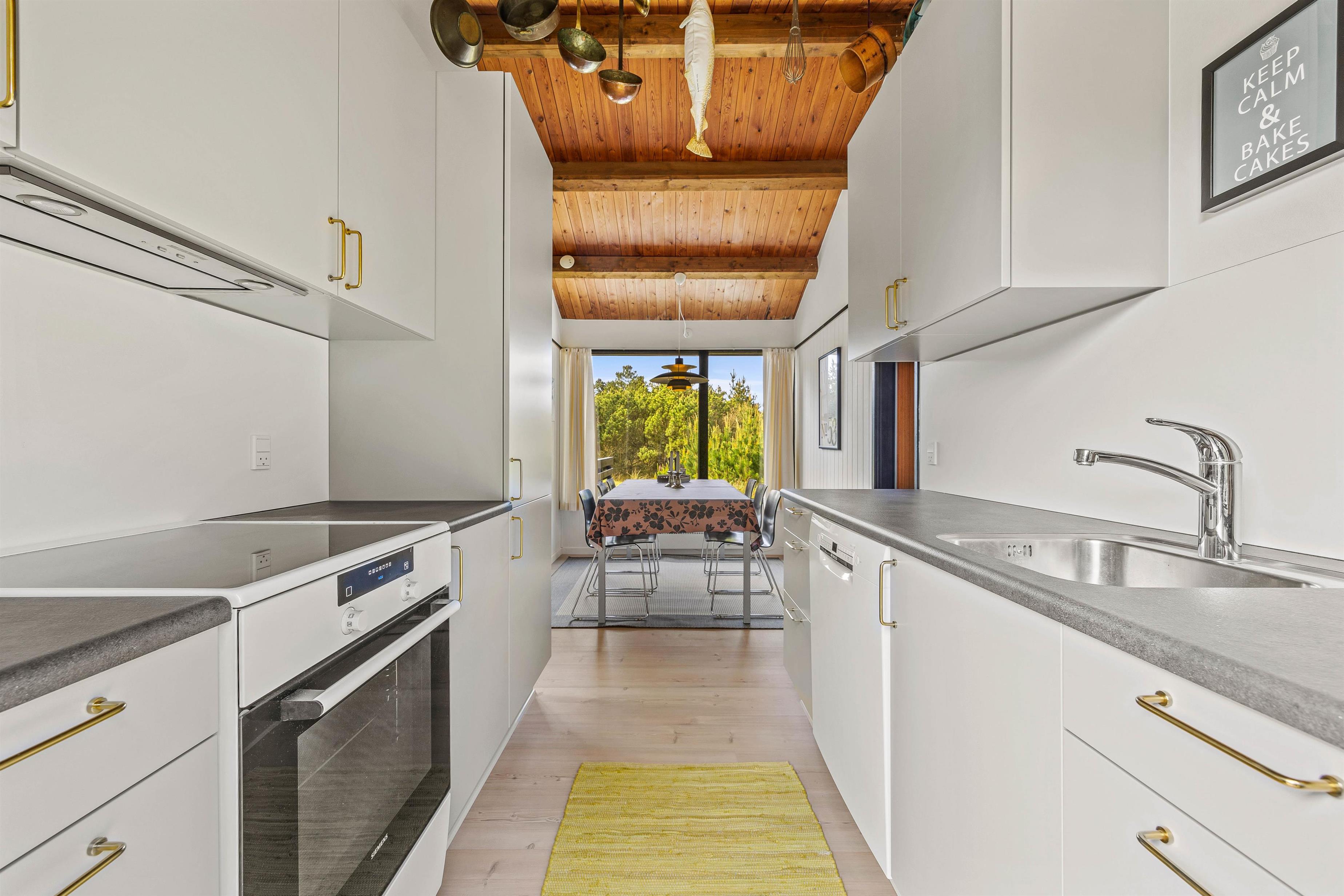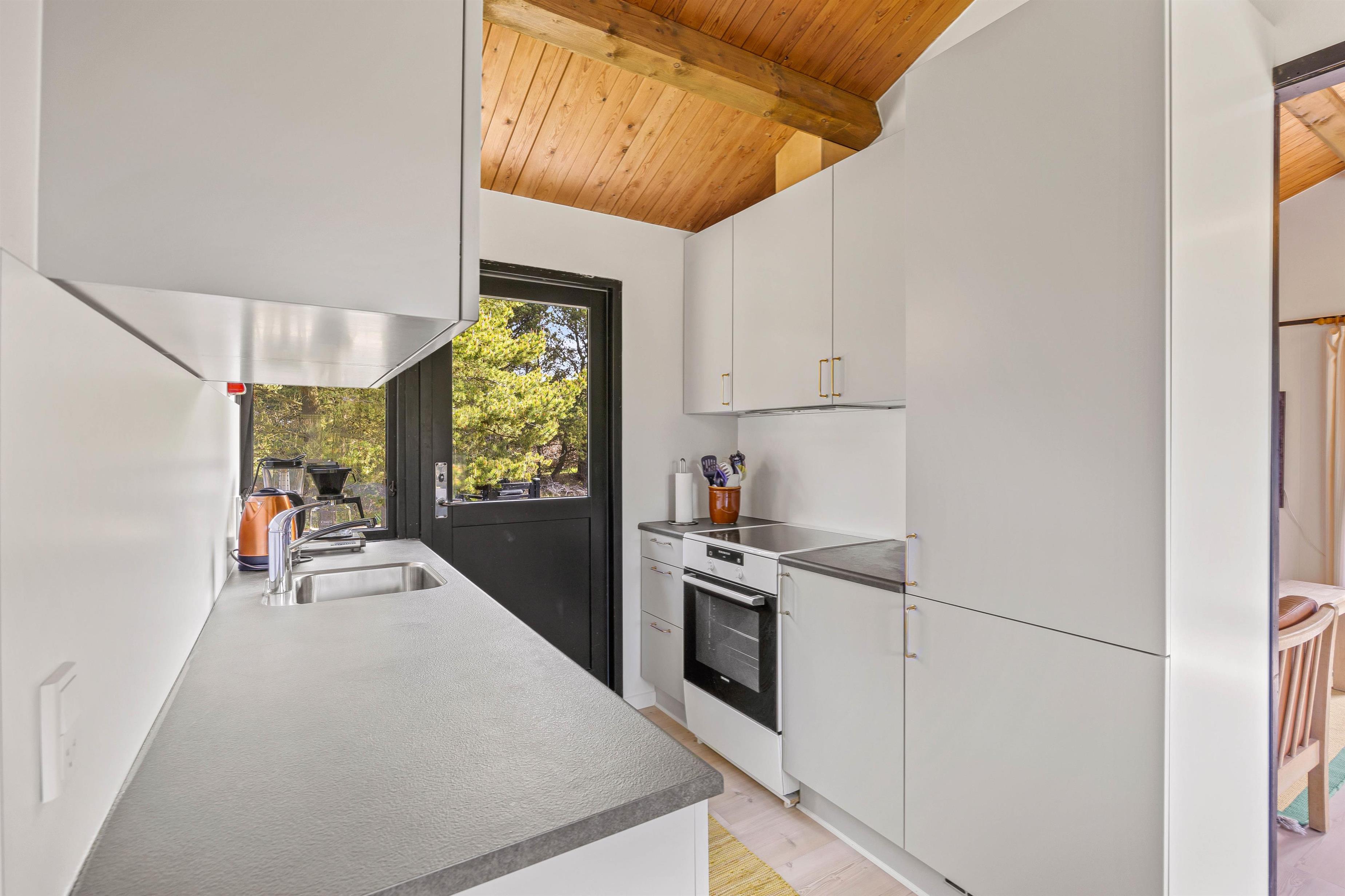 I sommerhusets skønne opholdsafdeling i form af et køkken-alrum med åben forbindelse til en stue kan I være fælles om madlavningsprojekter, nyde gode måltider ved spisebordet og efterfølgende slappe af i sofaen med brætspil eller med popcorn og jeres yndlingsfilm. Når solen er gået til køjs, kan I fordele jer på husets to soveværelser. Her er godt med opbevaringsplads og behagelige senge venter på jer.