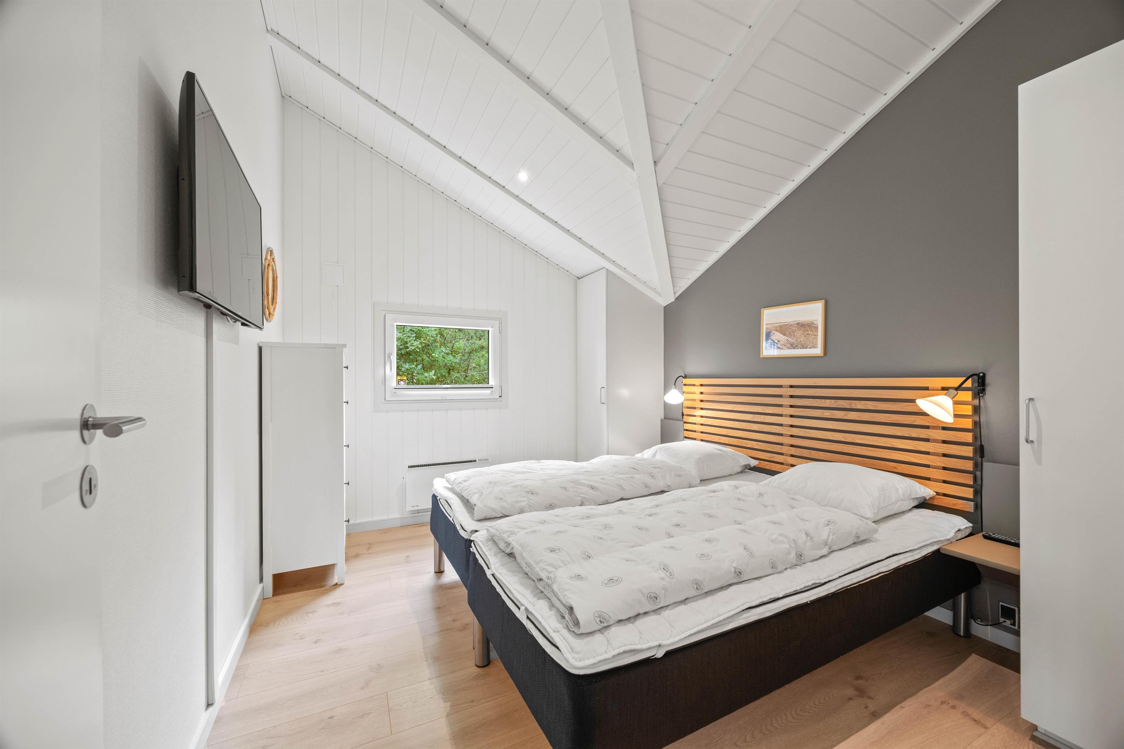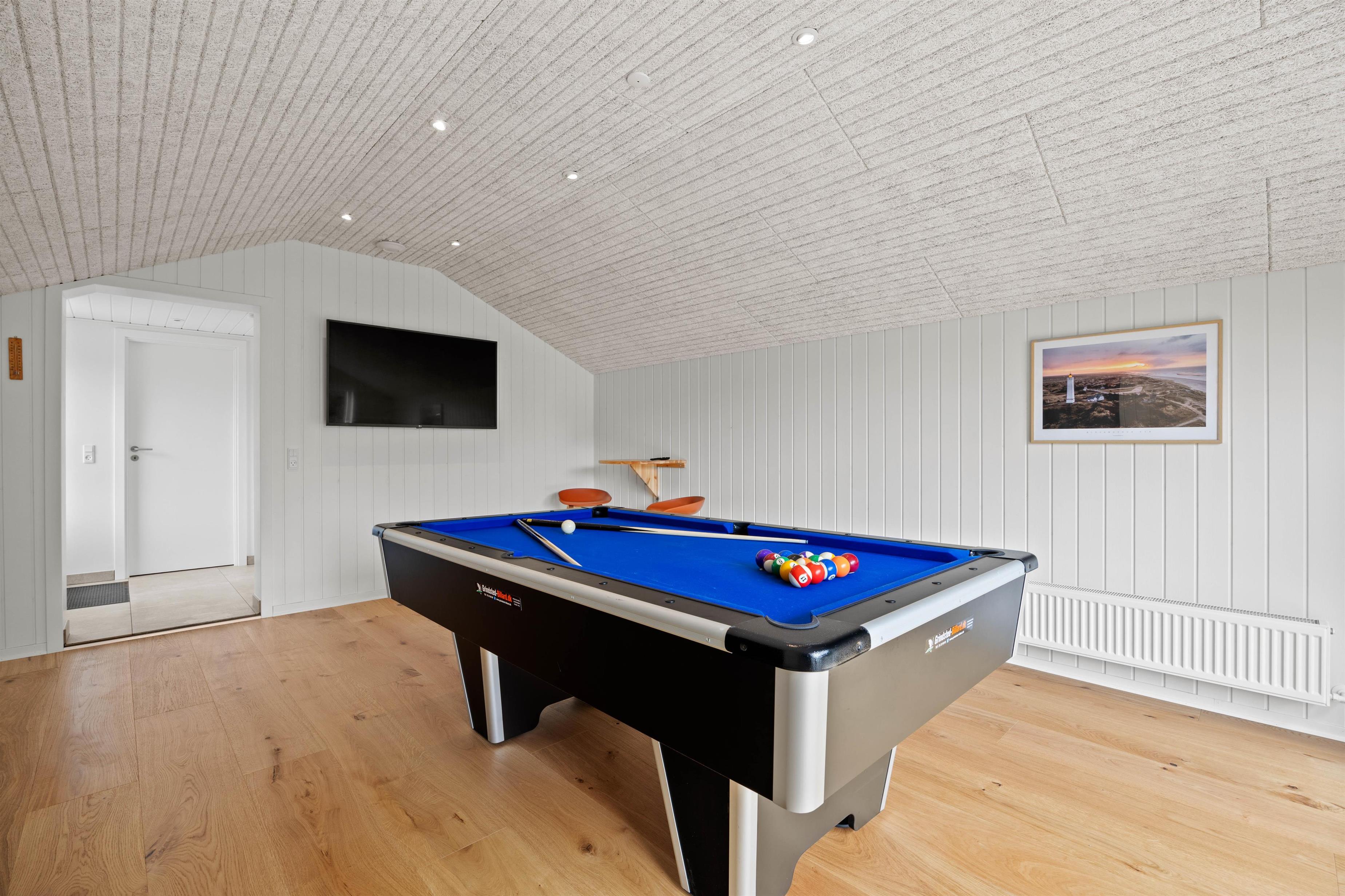 Der er 2 badeværelser med gulvvarme og et gæstetoilet til rådighed for jer, så I behøver ikke at stå i kø til tandbørstningen, og i forbindelse med det ene badeværelse er også spa og sauna, så I kan arrangere jeres egen private wellnessaften. I de 4 soveværelser med komfortable dobbeltsenge kan I hvile rigtig godt ud i den friske vesterhavsluft - det ene ligger i et anneks med aktivitetsrum og eget toilet og bad.