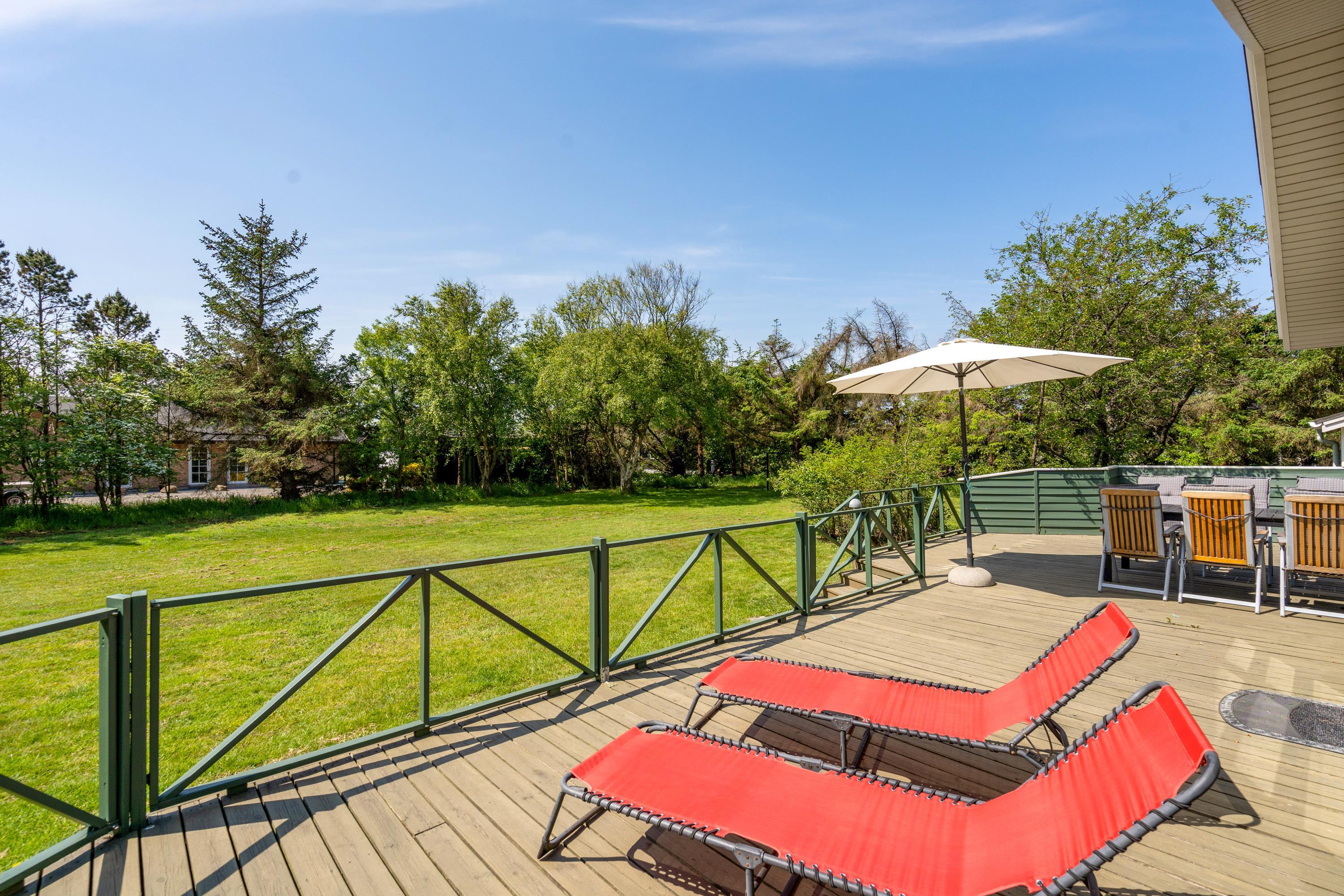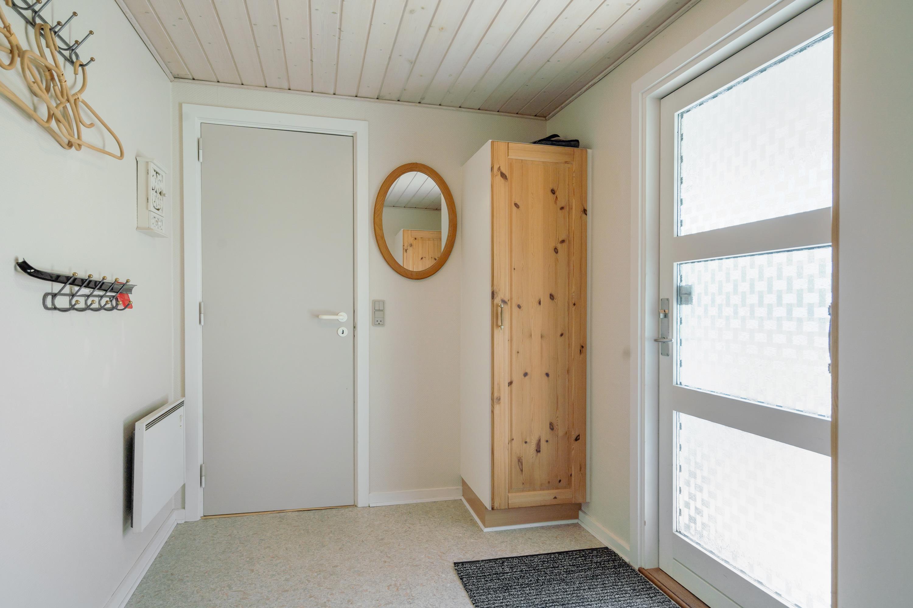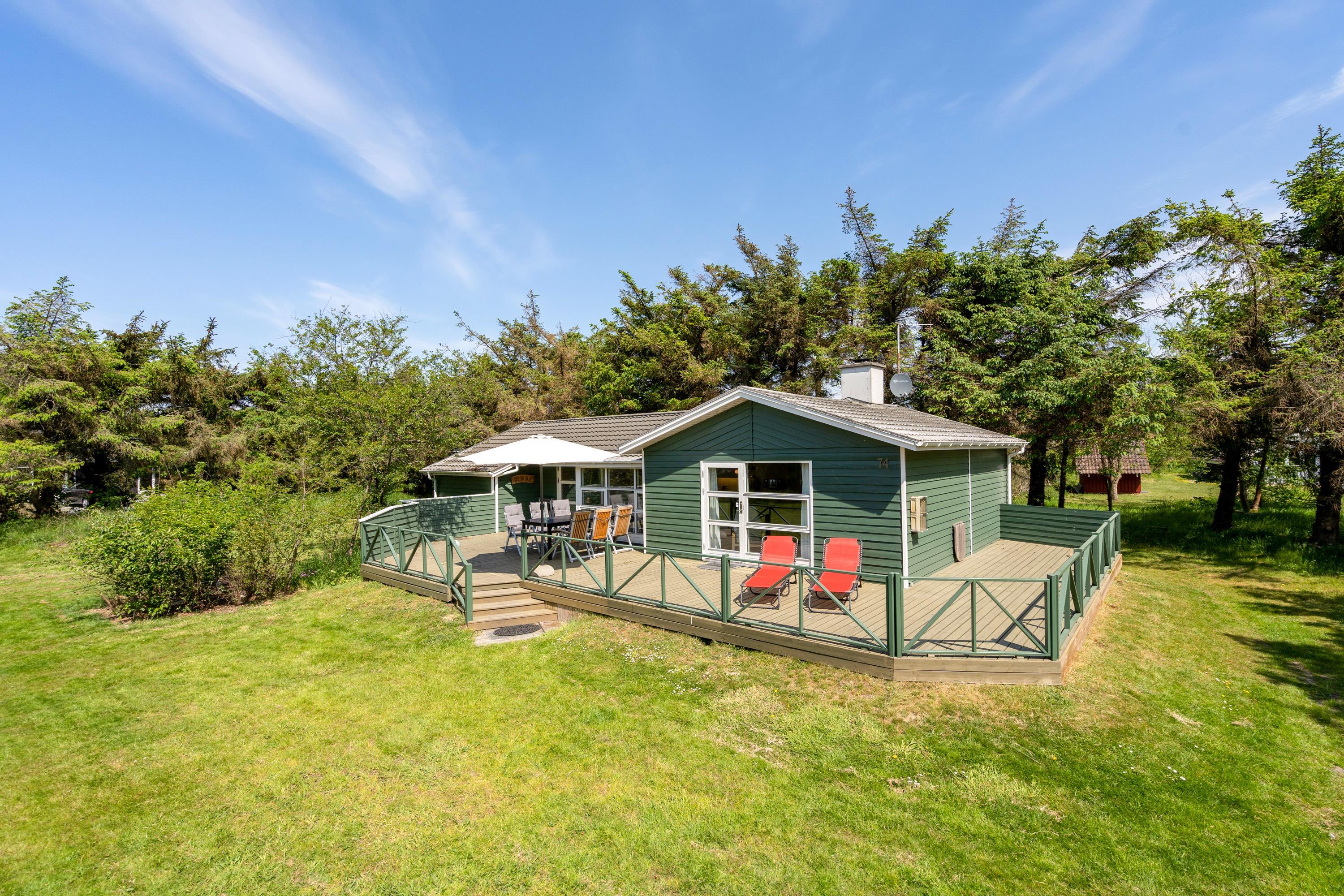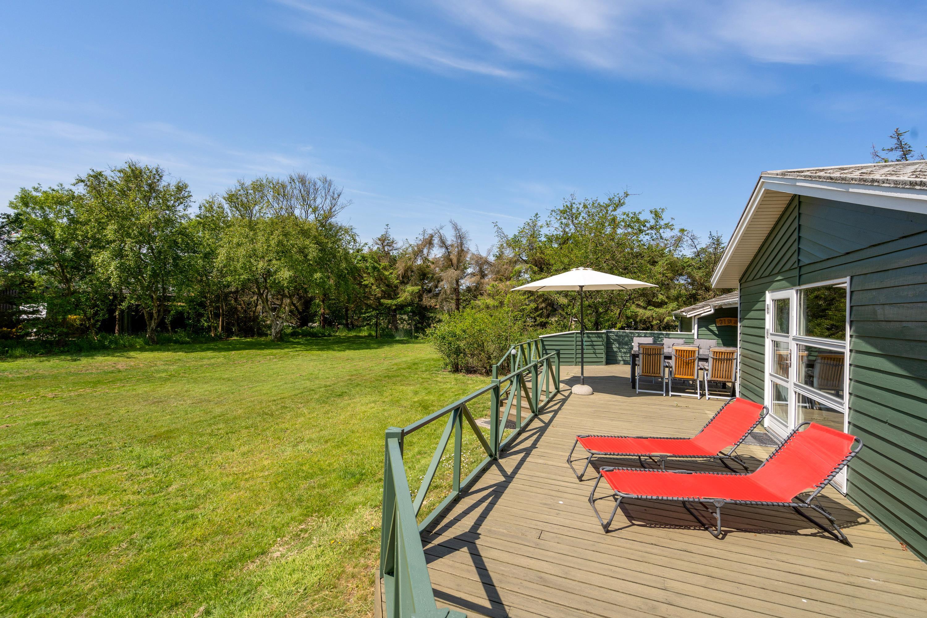 Sommerhuset har også et dejlig køkken/alrum med direkte udgang til den store træterrasse hvor der mulighed for, at I kan sidde uforstyrret og grille eller bare nyde solen i mens børnene leger i den store have hvor der er både gyngestativ og sandkasse.
