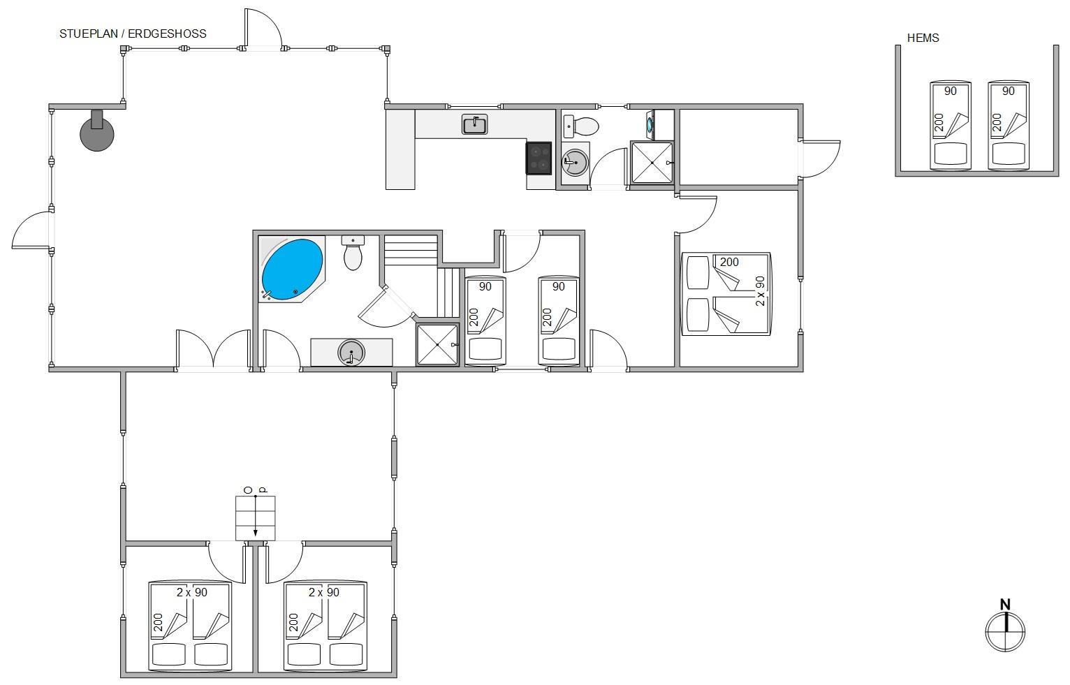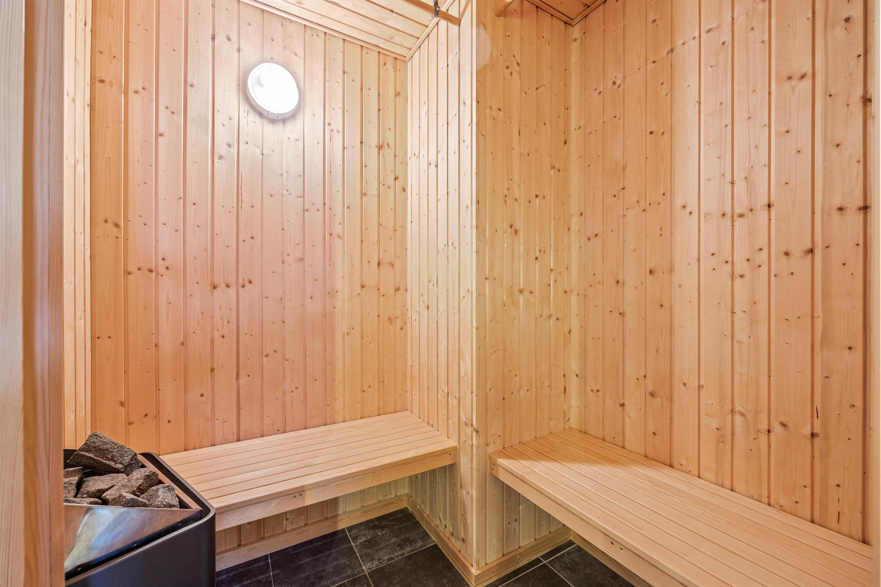 I feriehuset finder I 4 gode værelser samt en hems med sovepladser – et sted familiens teenagerne uden tvivl gerne vil være! På det ene badeværelse har I også mulighed for at komme helt ned i gear med sauna og spa! Her kan man glemme hverdagen for en stund! Feriehusets 2 badeværelser er begge med gulvvarme og med til at sikre, at ventetid aldrig bliver et problem, selv når I er mange afsted!