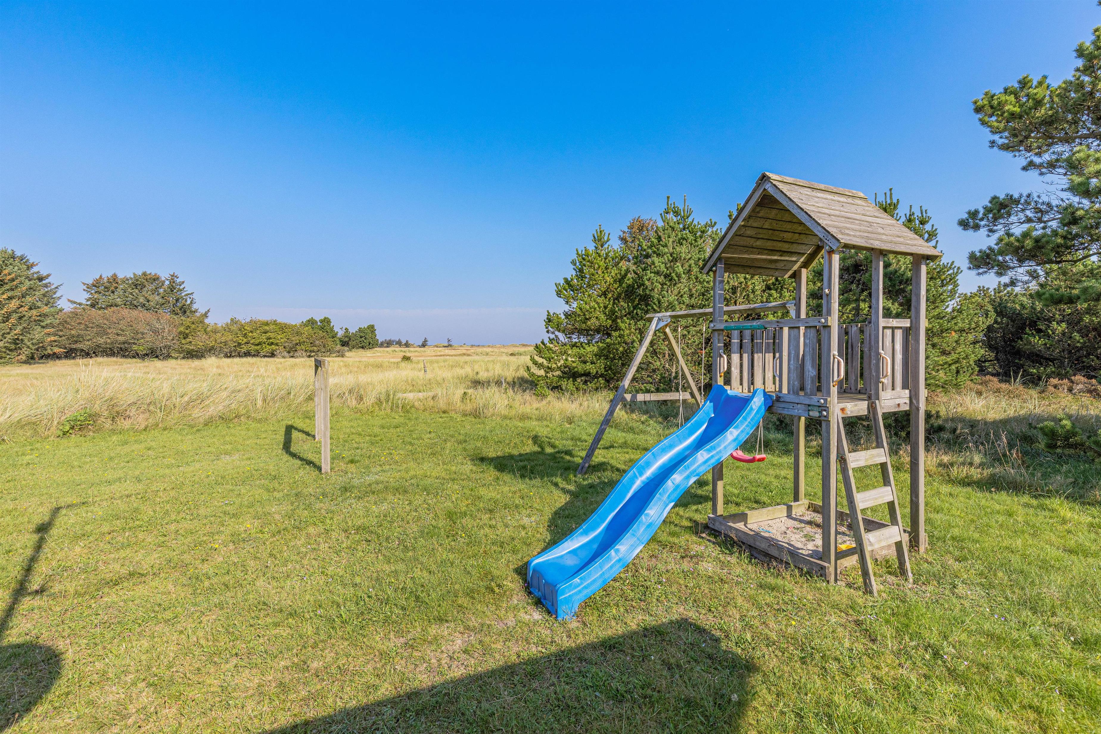 Feriehuset er beliggende på en stor naturgrund med en dejlig græsplæne. Den flade græsplæne er perfekt til fodbold, kongespil og leg! Her sætter fantasien kun grænser! I haven er I også lovet timevis af sjov med både trampolin, gynger, legehus og sandkasse – et feriehus med en super børnevenlig have!