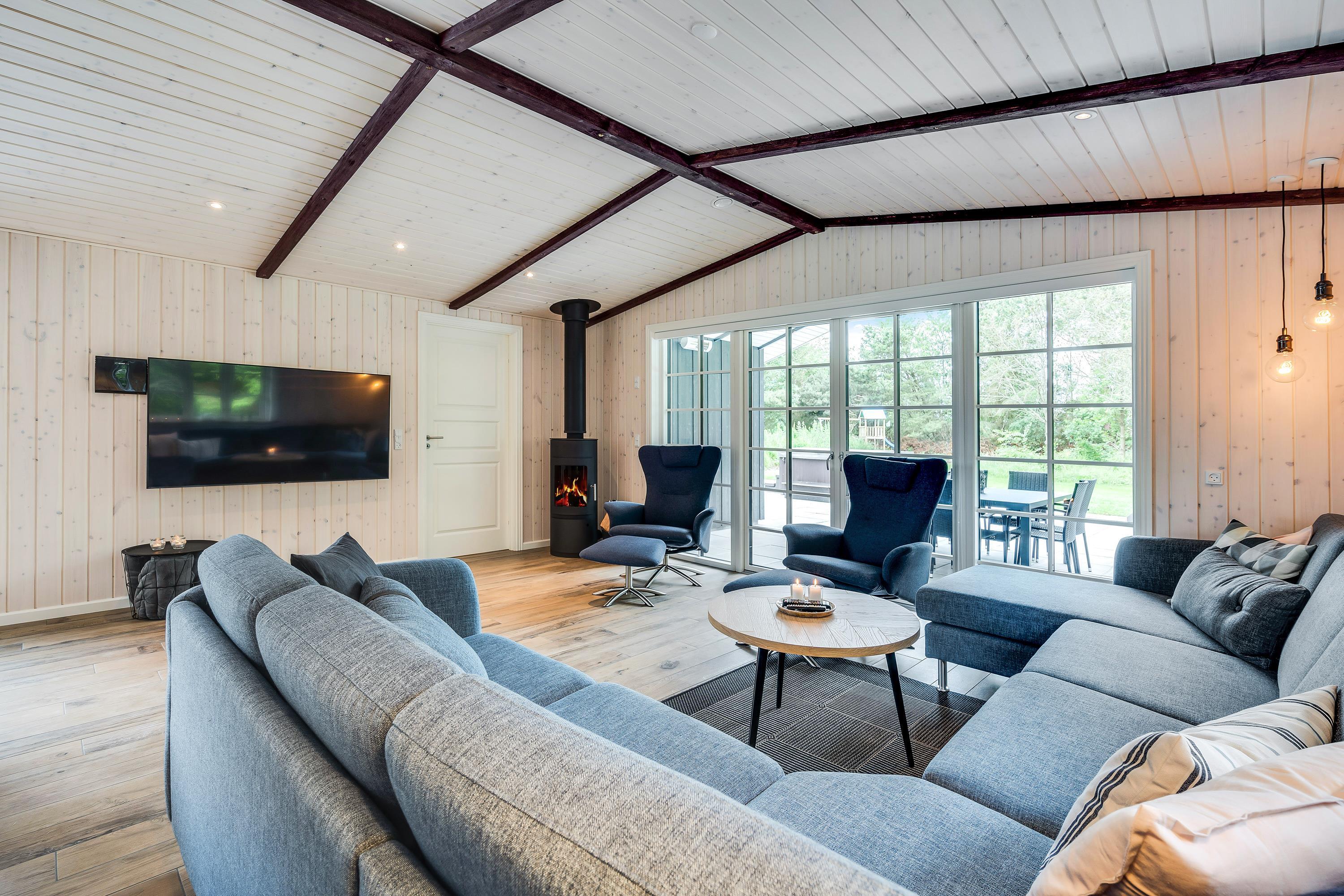 Den moderne indretning rummer noget for enhver smag. I stuehjørnet kan I slappe af med en god bog foran den knitrende brændeovn, imens de konkurrenceglade feriegæster kan slå sig løs i aktivitetsrummet, der ligger i forlængelse af stuen. Her finder I både med et 7 fods store billardbord, airhockey og bordfodbold.