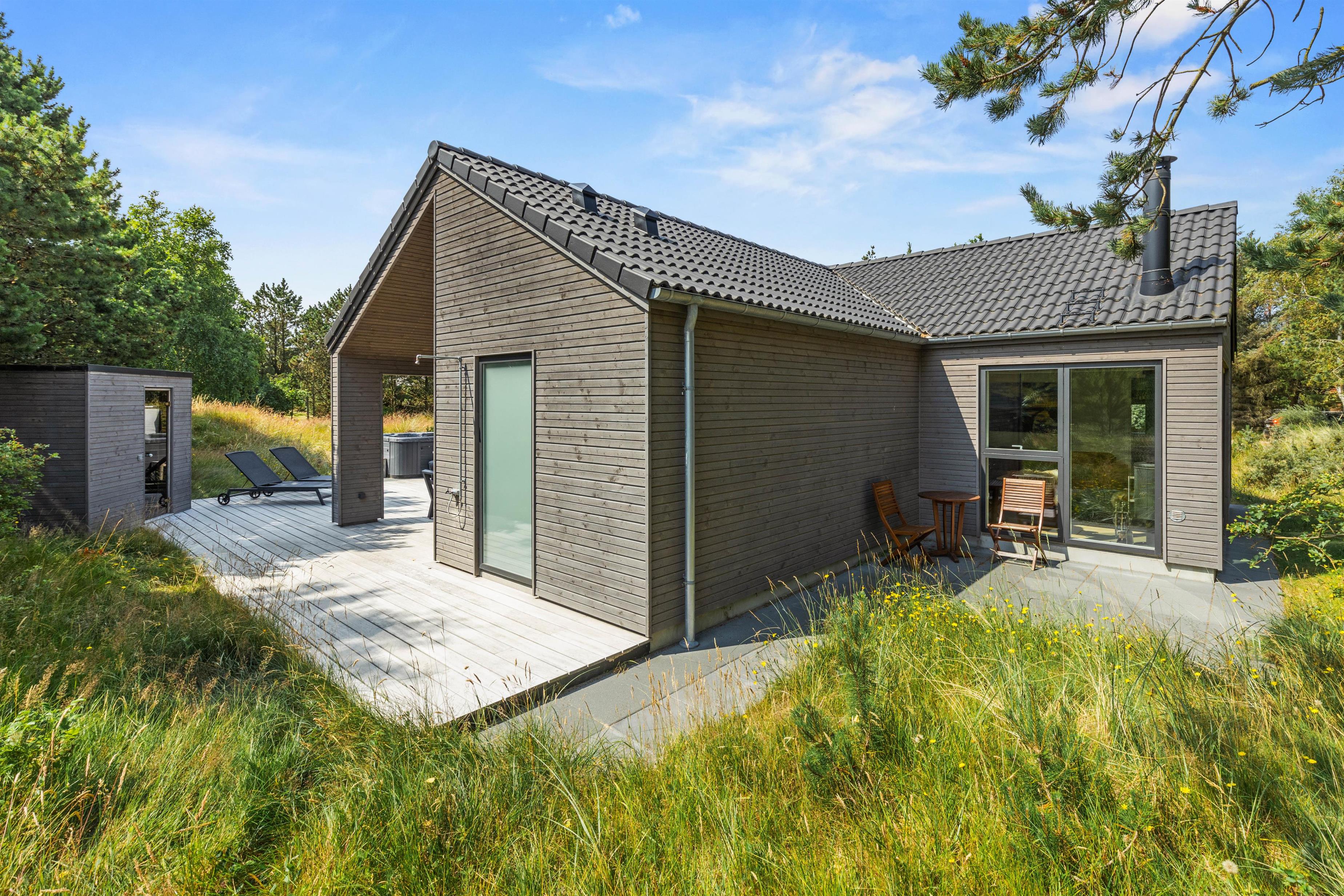 På en stor naturgrund kort vej fra Blåvands centrum ligger dette femstjernede aktivitetshus, der inviterer til en luksuriøs ferie for op til 8 personer. Den stilfulde indretning indbefatter blandt andet et billardbord, bordtennis, dart og så får I et fantastisk uderum med udendørs sauna og udespa.