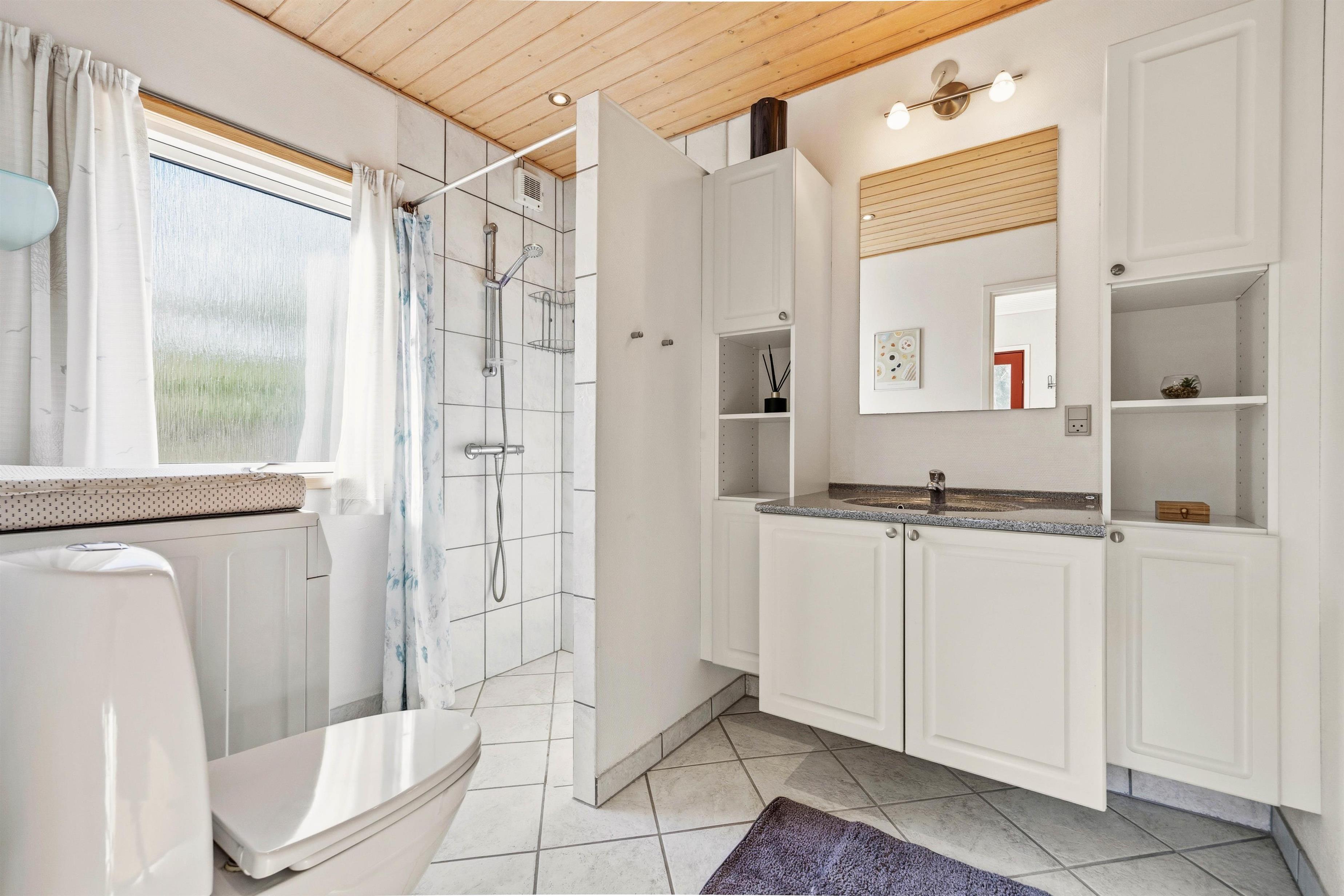 De 3 soveværelser er alle indrettet med dobbeltsenge, og i badeværelset med gulvvarme er der også en vaskemaskine, så man kan vaske tøjet, hvis det er blevet beskidt eller vådt på strandturen. Et godt sparetip: brug varmepumpen til opvarmning og spar på el-omkostningerne.