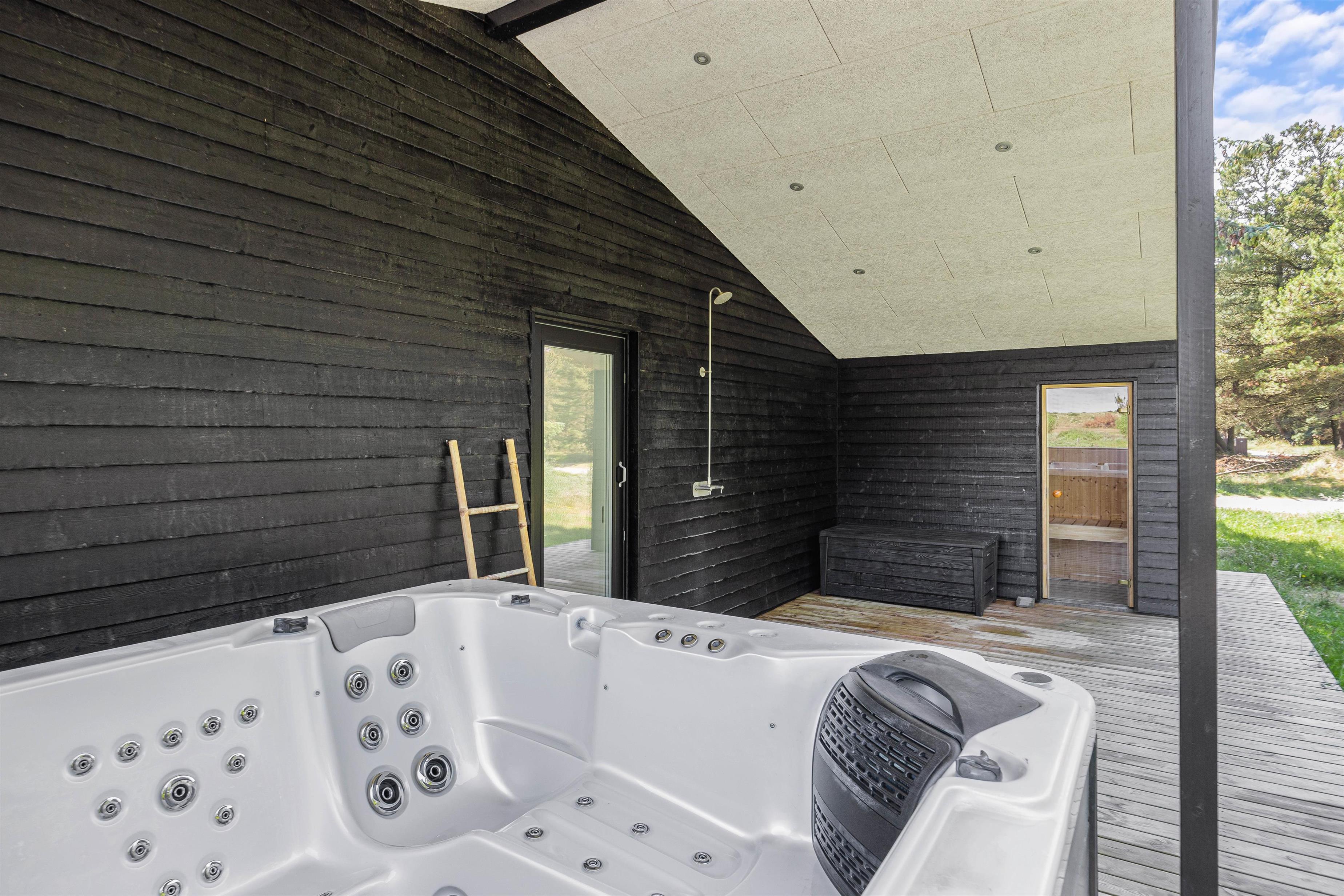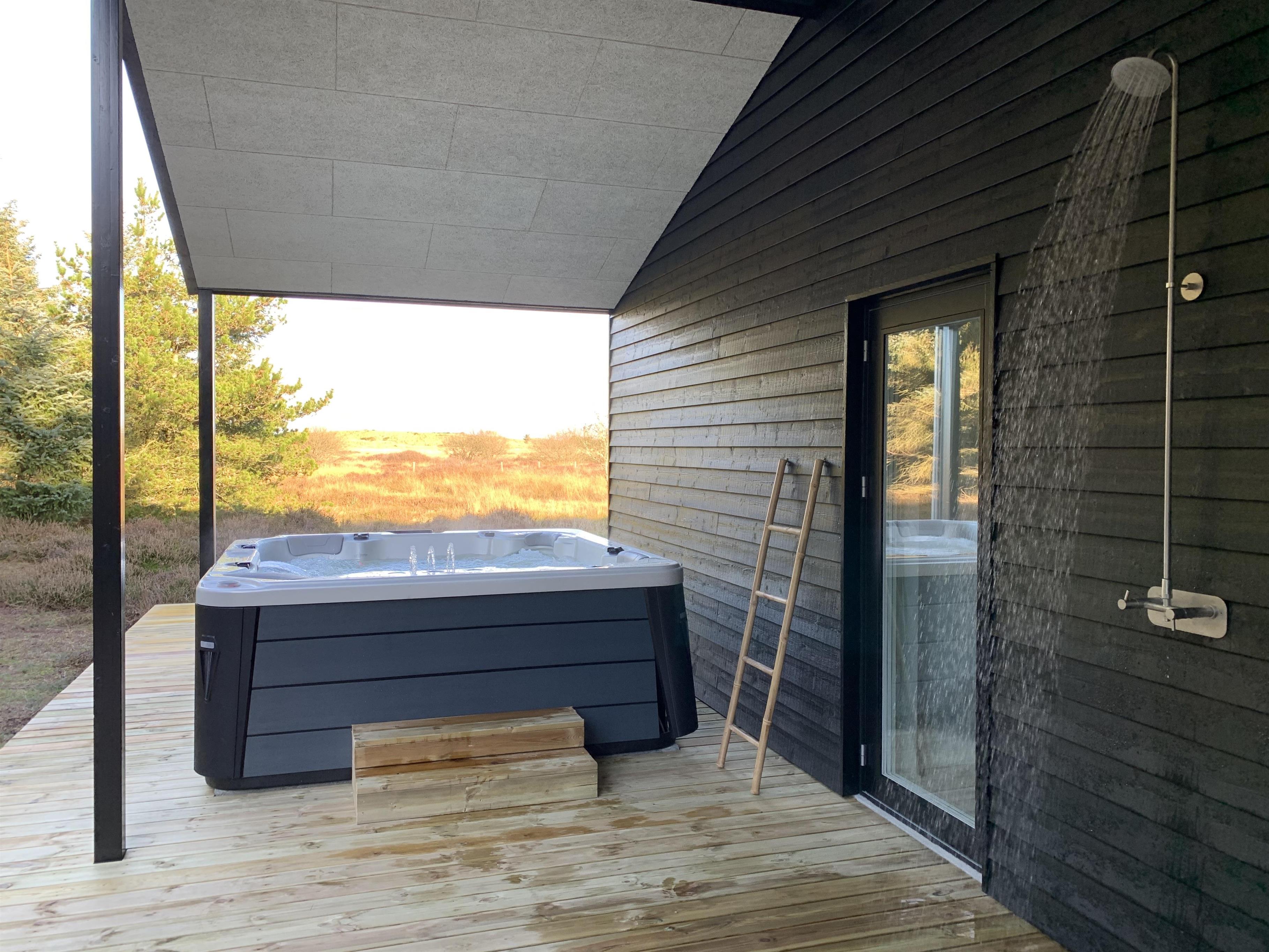 I forbindelse med terrassen finder I også en skøn sauna – det helt perfekte sted at få varmen igen efter en tur over klitterne til Vesterhavet, der kun ligger 1 kilometer væk. Efter en tur til stranden kan I med fordel skylle jer under den udendørsbruser på terrassen for at undgå for meget sand over det hele. Udebruseren kan benyttes fra 1. april til 31. oktober.