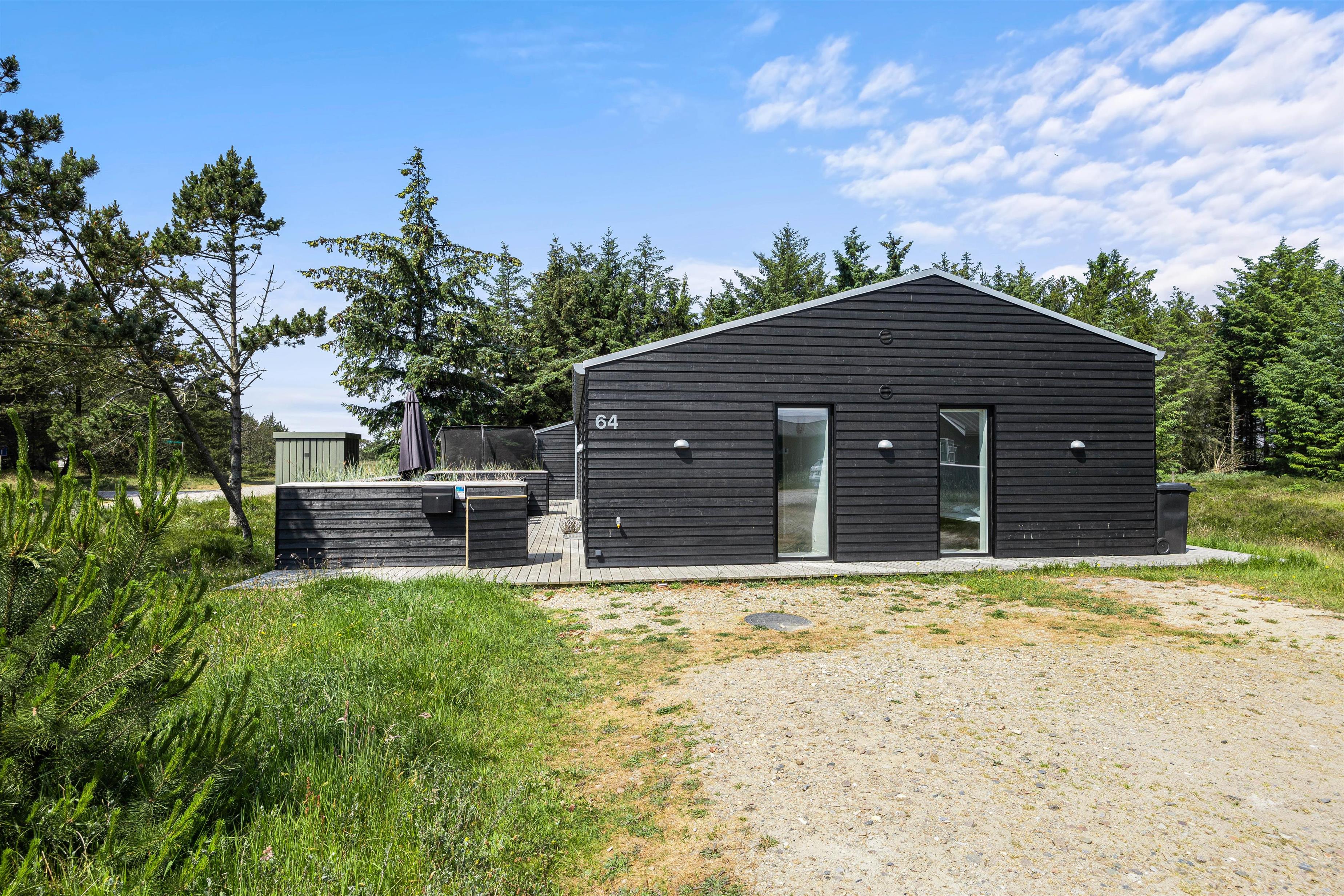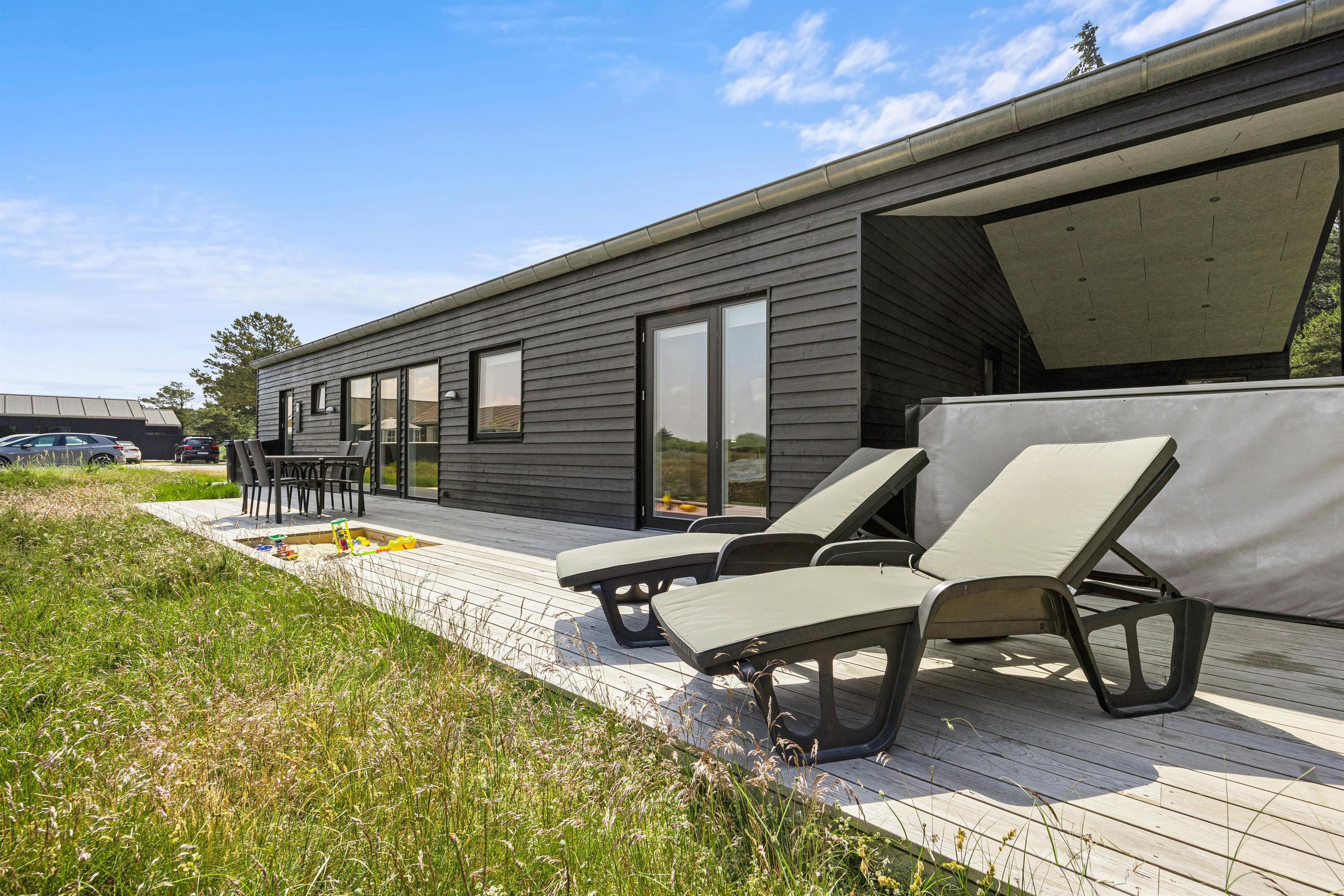 Strandnært og naturskønt ligger dette femstjernede sommerhus, der indbyder til en lækker og afslappende ferie. Sommerhuset på Horns Bjerge 64 er skønt indrettet og har en helt fantastisk terrasse: Her finder I både en lækkert udespa, en skøn sauna at få varmen i samt en udebruser, I kan skylle jer under efter en tur over klitterne til den nærliggende strand. I feriehuset er der plads til op til 8 personer og 2 hunde.