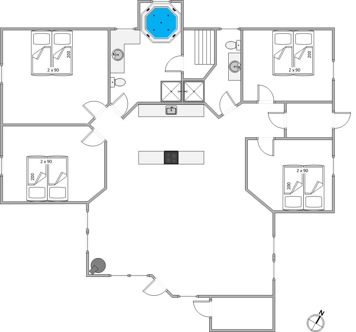 Dette indbydende feriehus i Blåvand har plads til op til otte gæster, så familie og venner har masser af plads. Fire rummelige soveværelser byder på to dobbeltsenge og fire enkeltsenge, så du kan sove ligeså behageligt som derhjemme, og de to moderne badeværelser sikrer en god start på dagen - eller giv dig hen til en luksusfølelse som afslutning på dagen med et bad i standvandsspabadet.