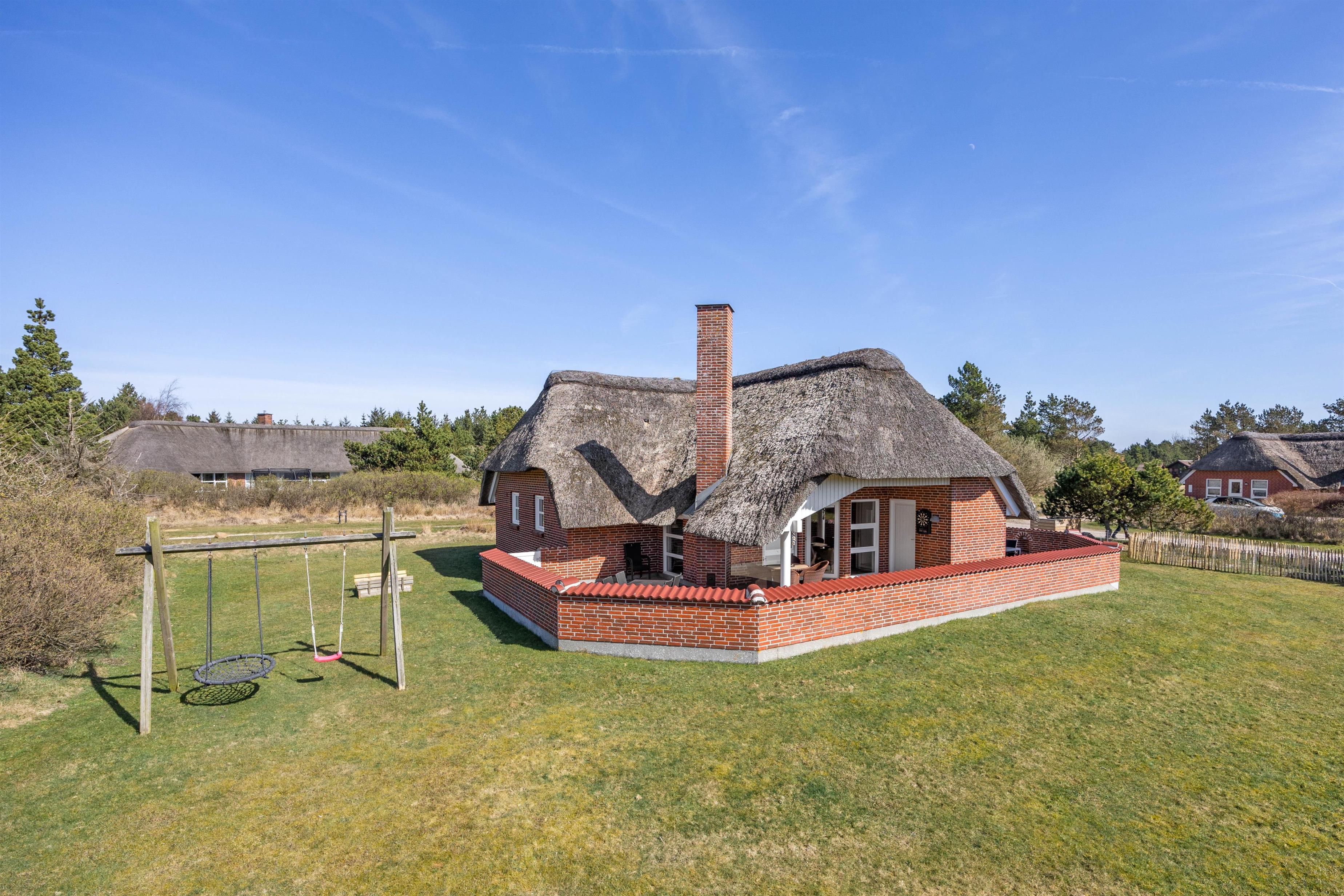 Feriehuset i Blåvand byder ikke blot på et vidunderligt interiør i fineste, skandinaviske stil, men også et skønt udendørsareal uden sidestykke. På den generøse græsplæne på 1856 m² kan børnene boltre sig frit, og gyngen giver mulighed for ekstra sjov. Nyd afslappende grillaftener på den overdækkede og afskærmede terrasse, der er udstyret med komfortable havemøbler.