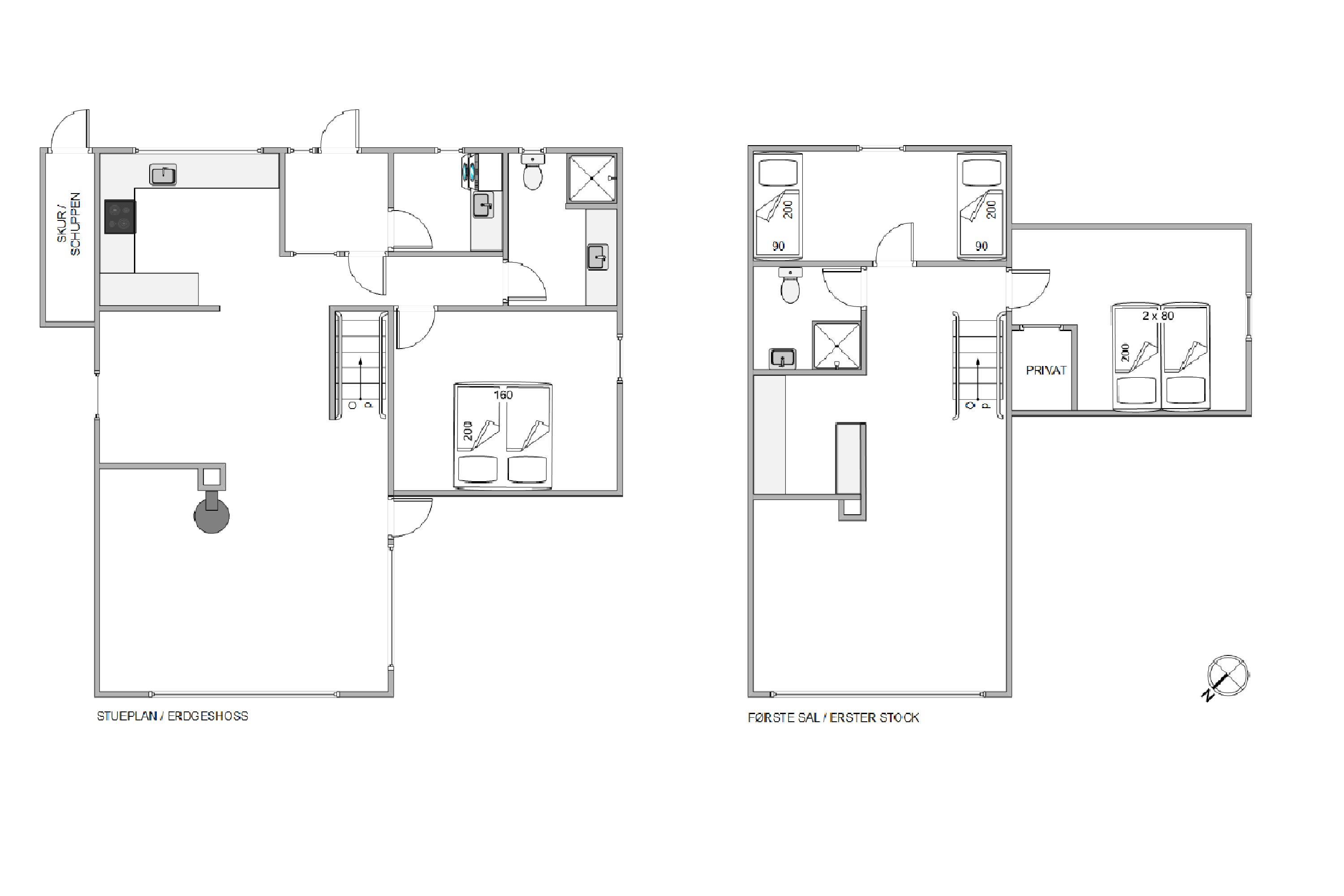 Det 143 kvadratmeter store sommerhus byder på 3 gode soveværelser, som I kan søge mod, når det er tid til at gå til køjs. Efter en god nats søvn skal I selvfølgelig ikke stå i kø til toilettet – her er der nemlig 2 badeværelser.