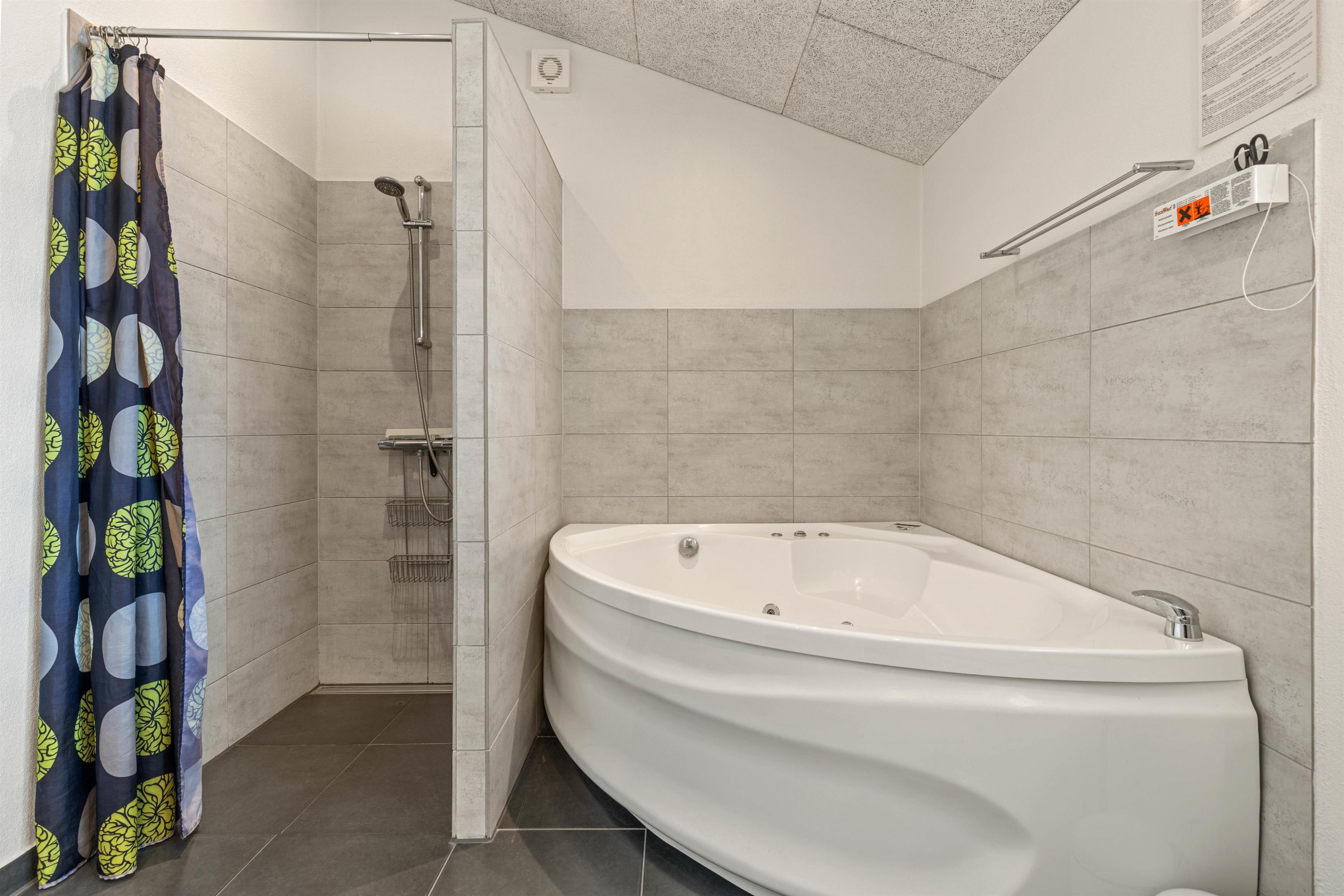 Der er 2 badeværelser med gulvvarme og på det ene badeværelse finder I et af husets highlights: Her står spabadet, som giver mulighed for lidt ekstra wellness og selvforkælelse på ferien. Der er desuden PlayStation 2 og Wii i stuen.