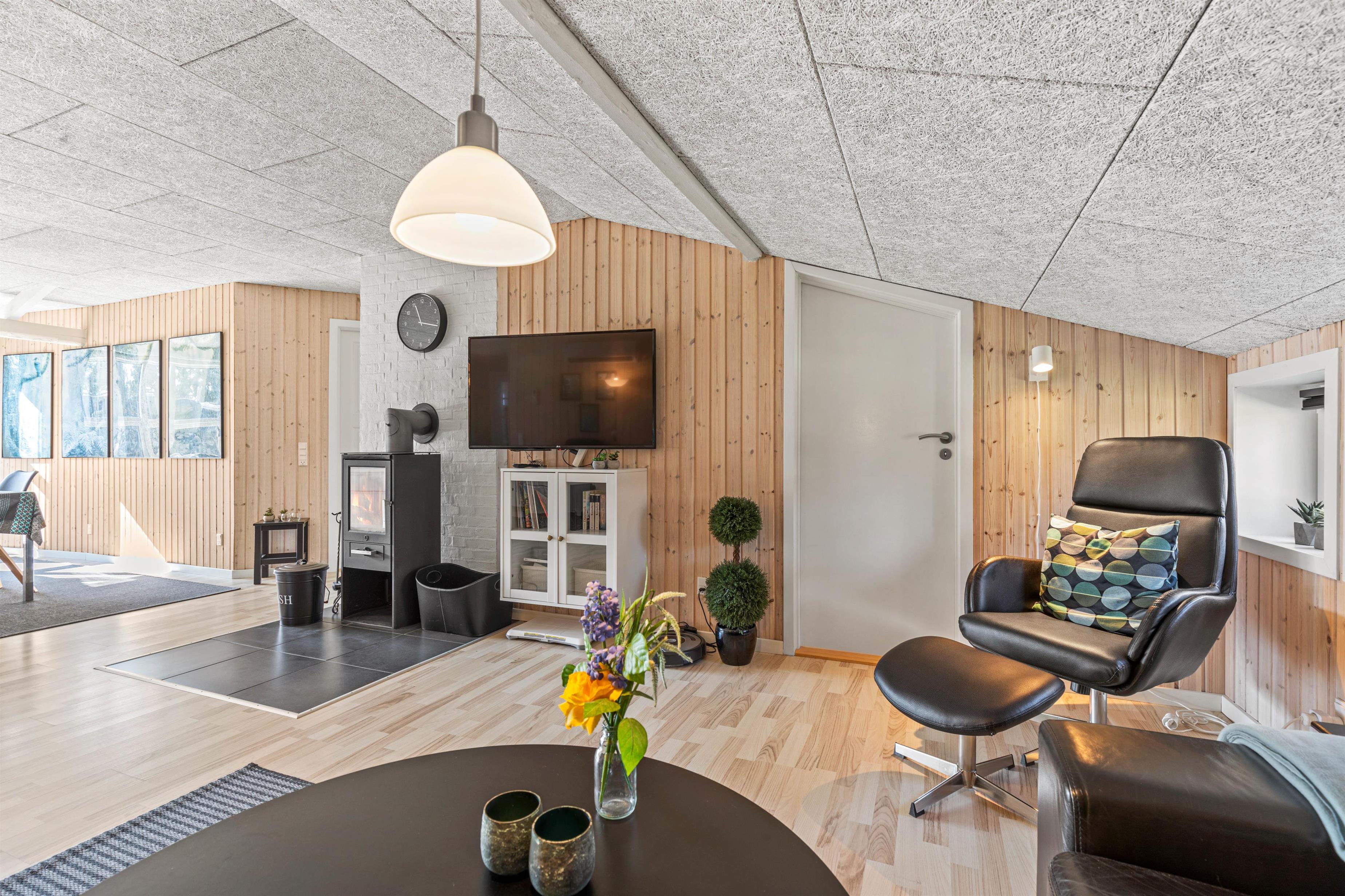 Med sine lyse farver og moderne interiør fremstår sommerhuset rigtig velholdt og hyggeligt. Der er åbnet godt op for rummene med højt til loftet og masser af vinduer, og især i husets hjerte, opholdsrummet med køkken og stue, er der god plads.