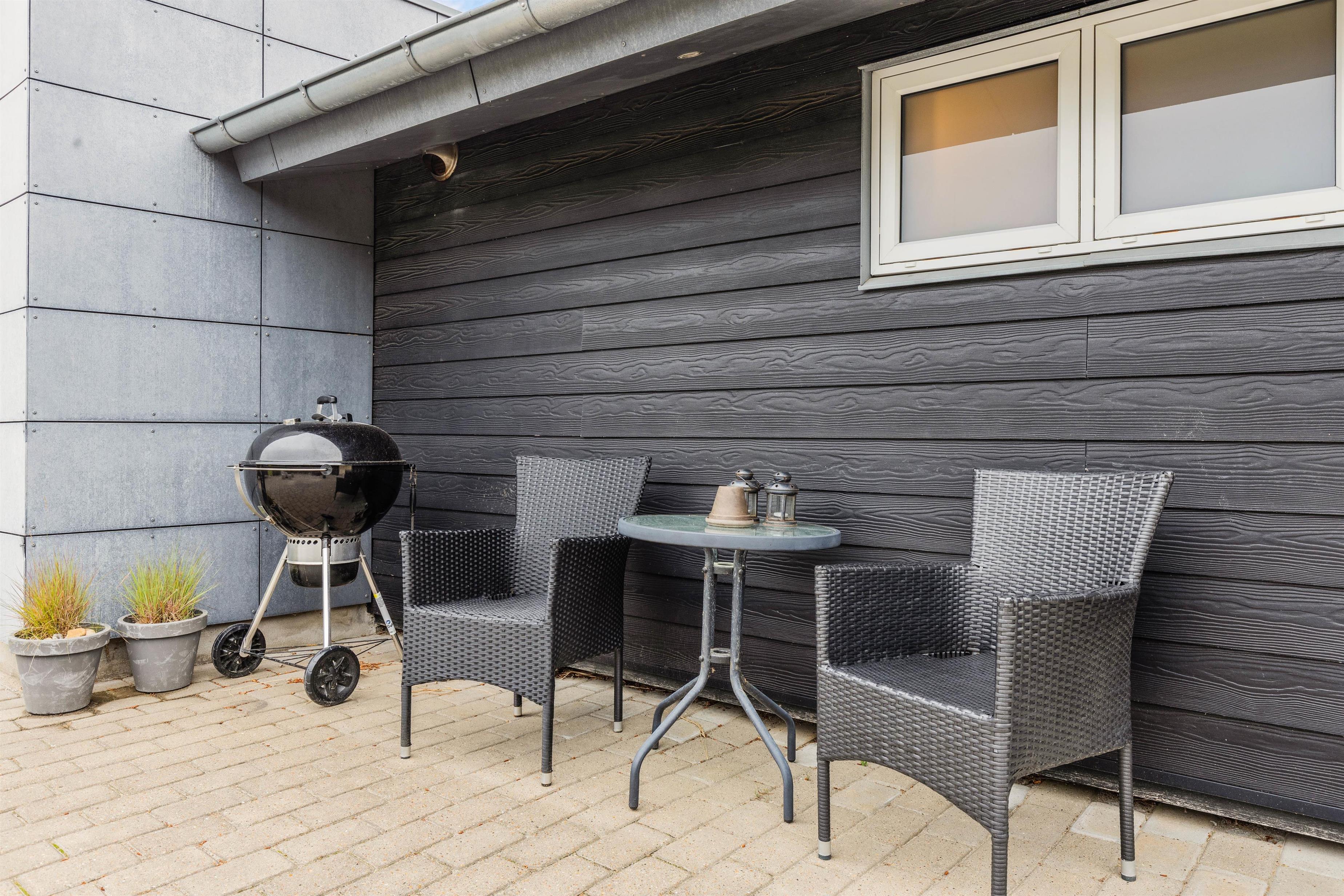 Sommerhuset har en rigtig dejlig beliggenhed på en stor og velholdt plænegrund i Blåvand. Her kan I helt ugeneret nyde de dejlige solskinsdage på terrassen, hvor der er mere end god plads til alle feriegæster. Om aftenen kan I tilberede en lækker middag på grillen i den lune aftensol.