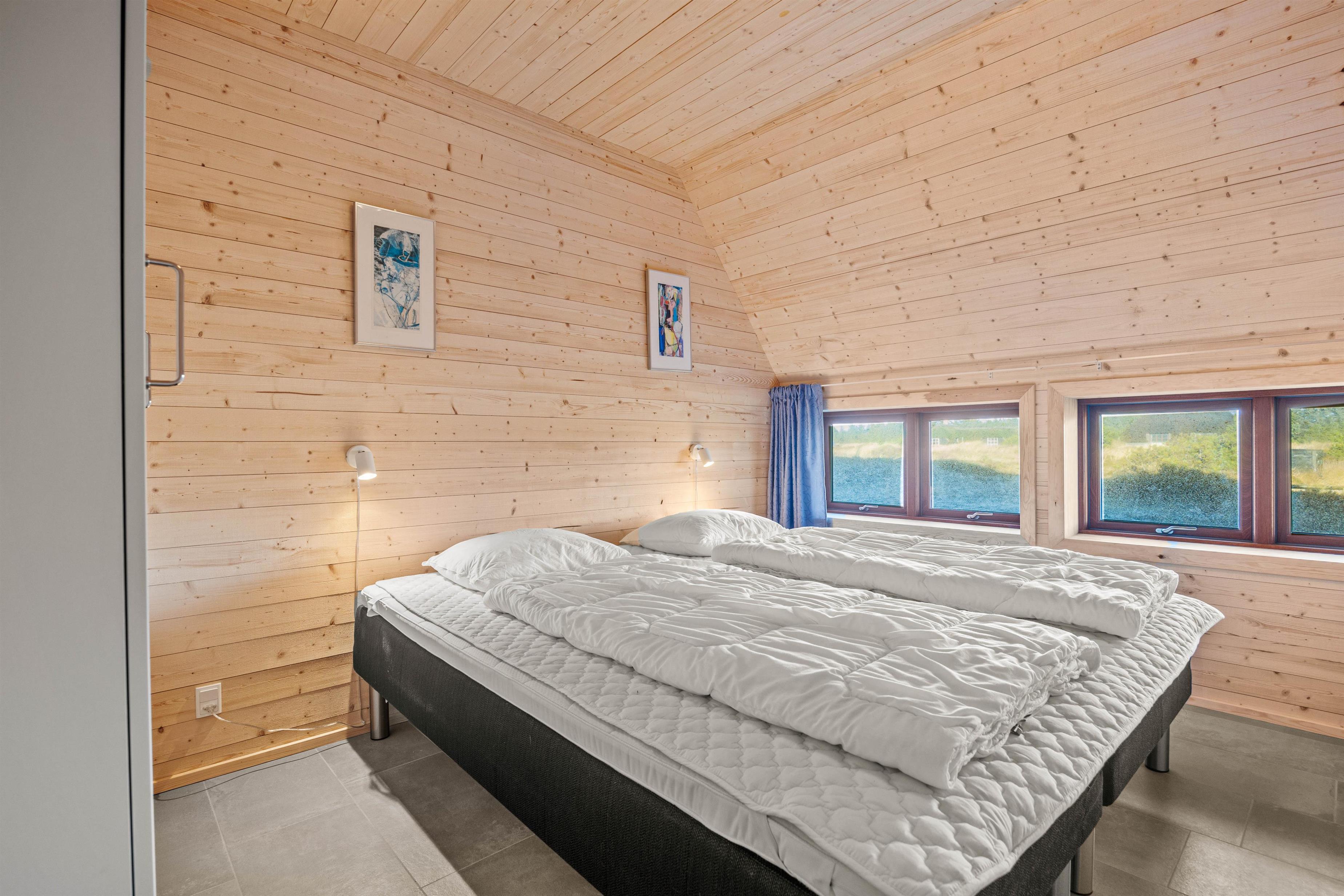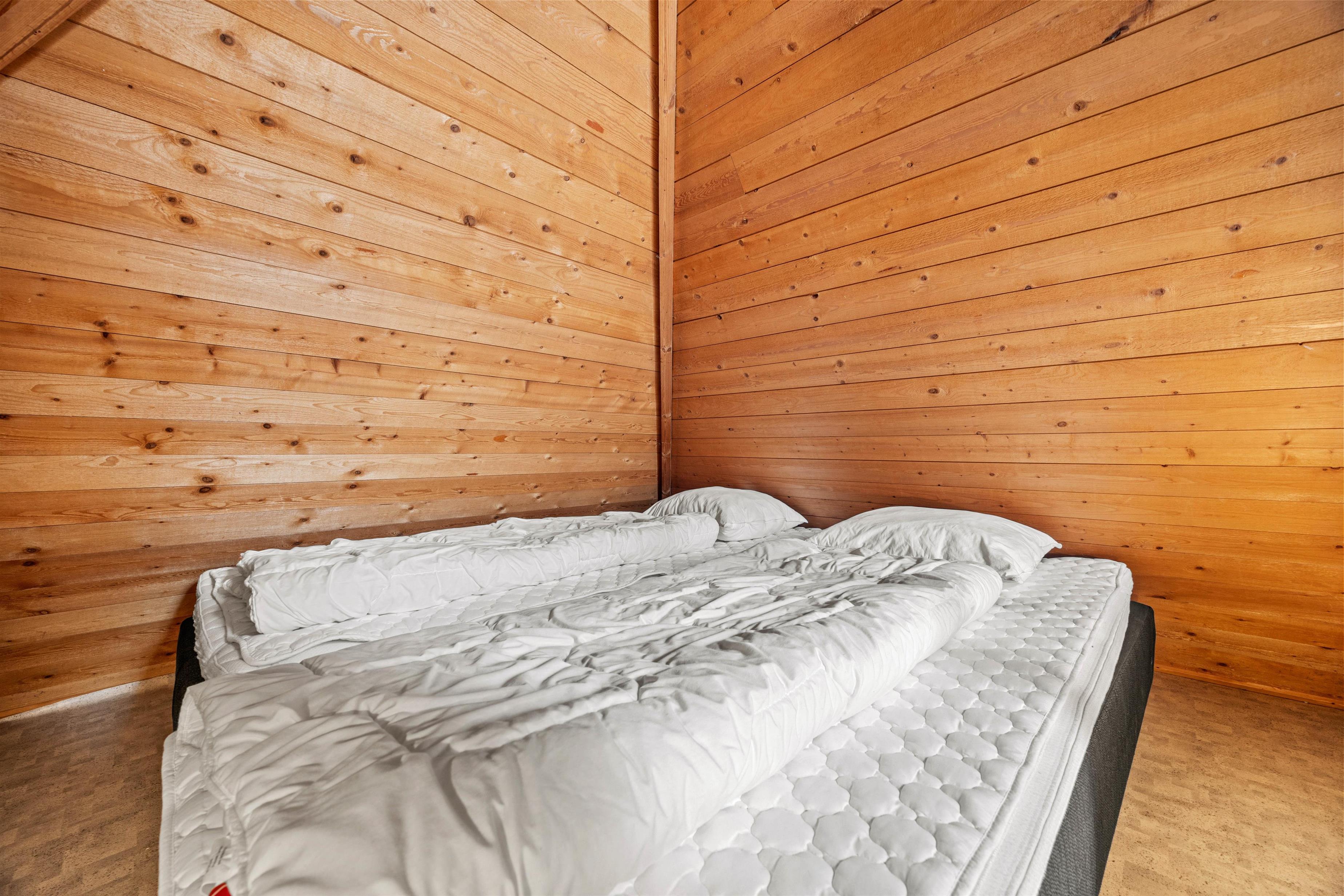 Sommerhuset er i 2024 udvidet med en ny afdeling med 3 soveværelser, et ekstra badeværelse og en stue. Dermed er der så i alt 5 soveværelser - 3 af soveværelserne er indrettet med 1 dobbeltseng hver, mens de 2 andre soveværelser er indrettet med enkeltsenge. Desuden er der en ekstra opredning i et af soveværelserne og 2 ekstra sovepladser på hemsen, som børnene helt sikkert vil være vilde med.