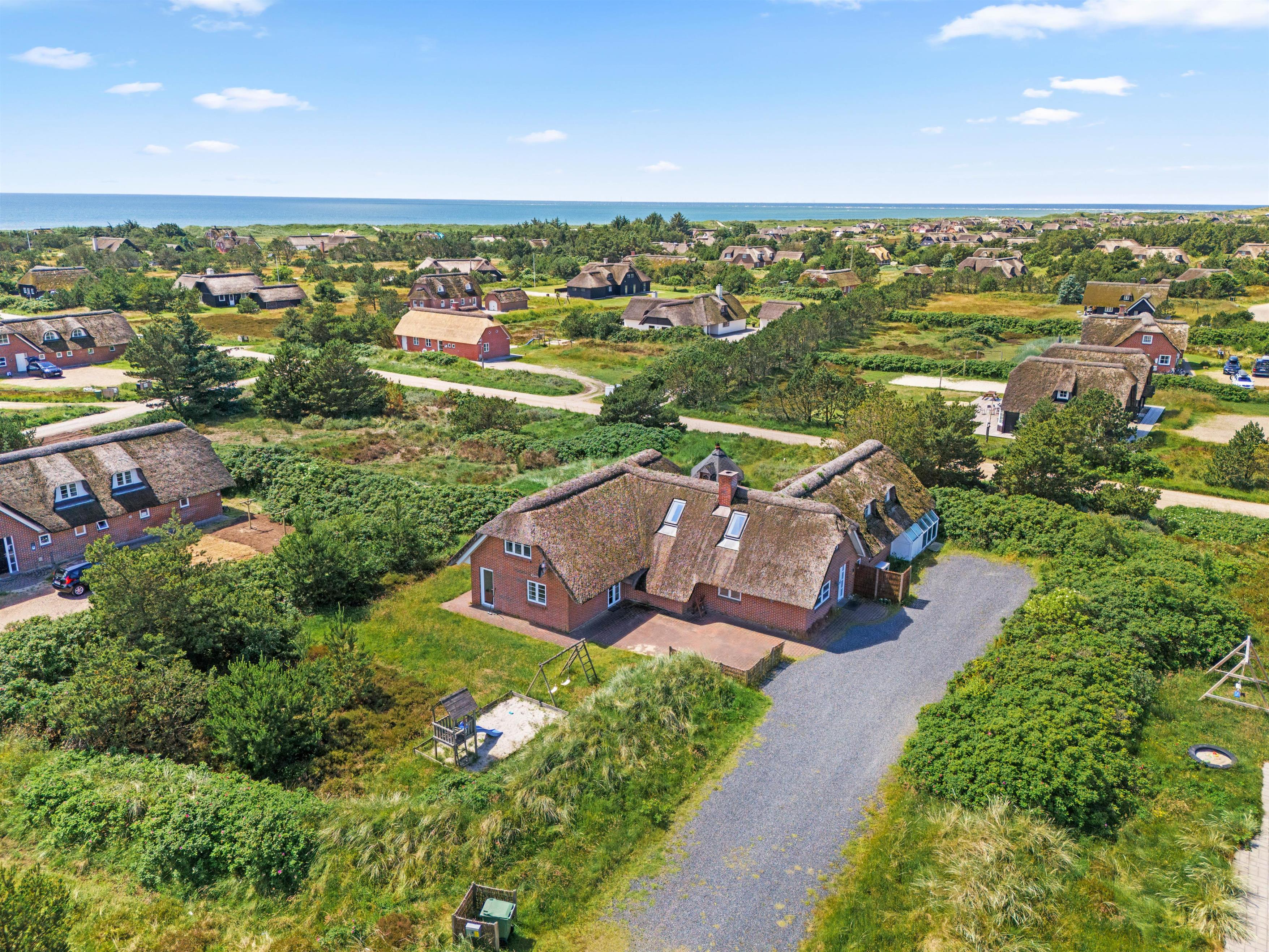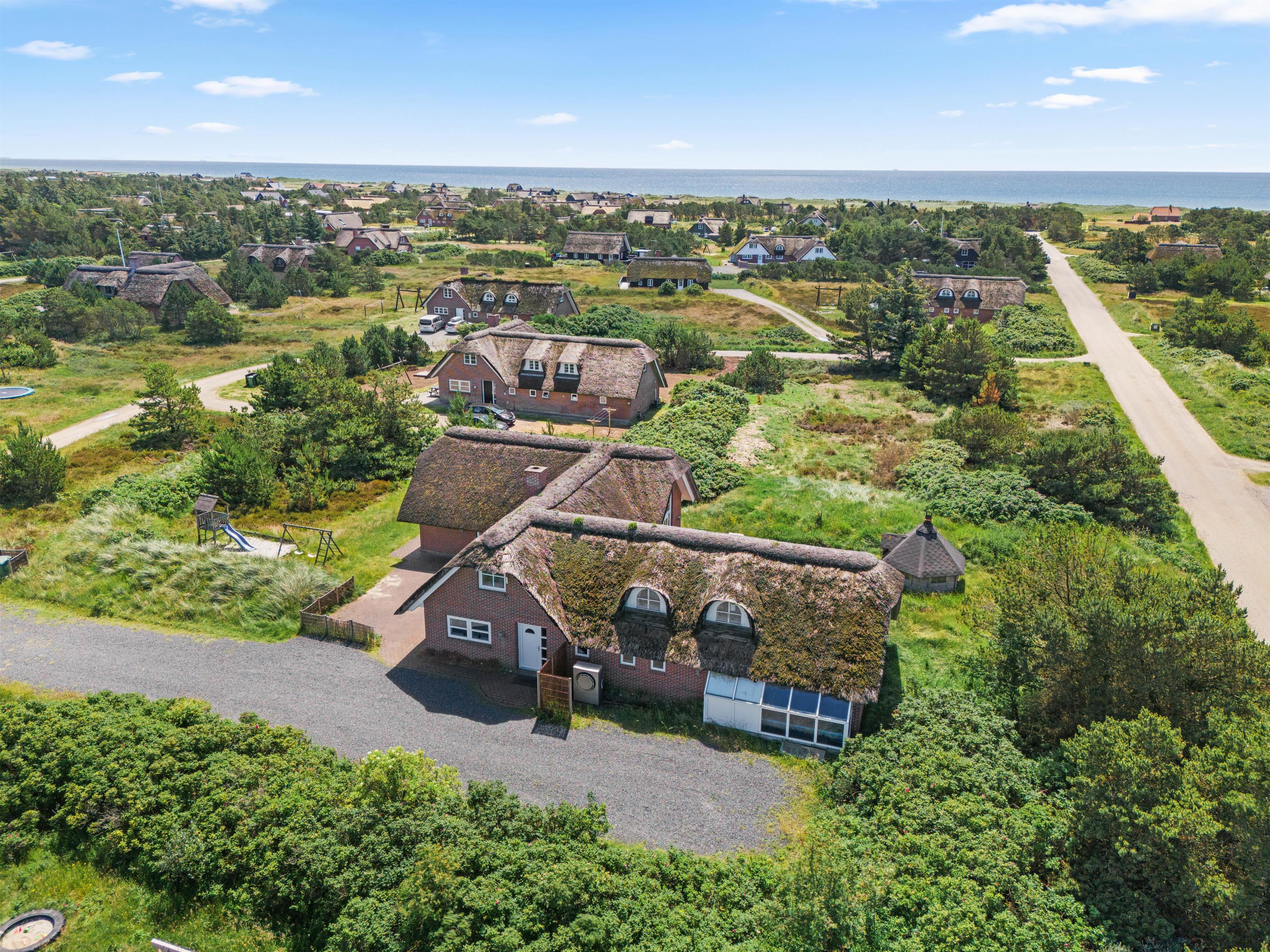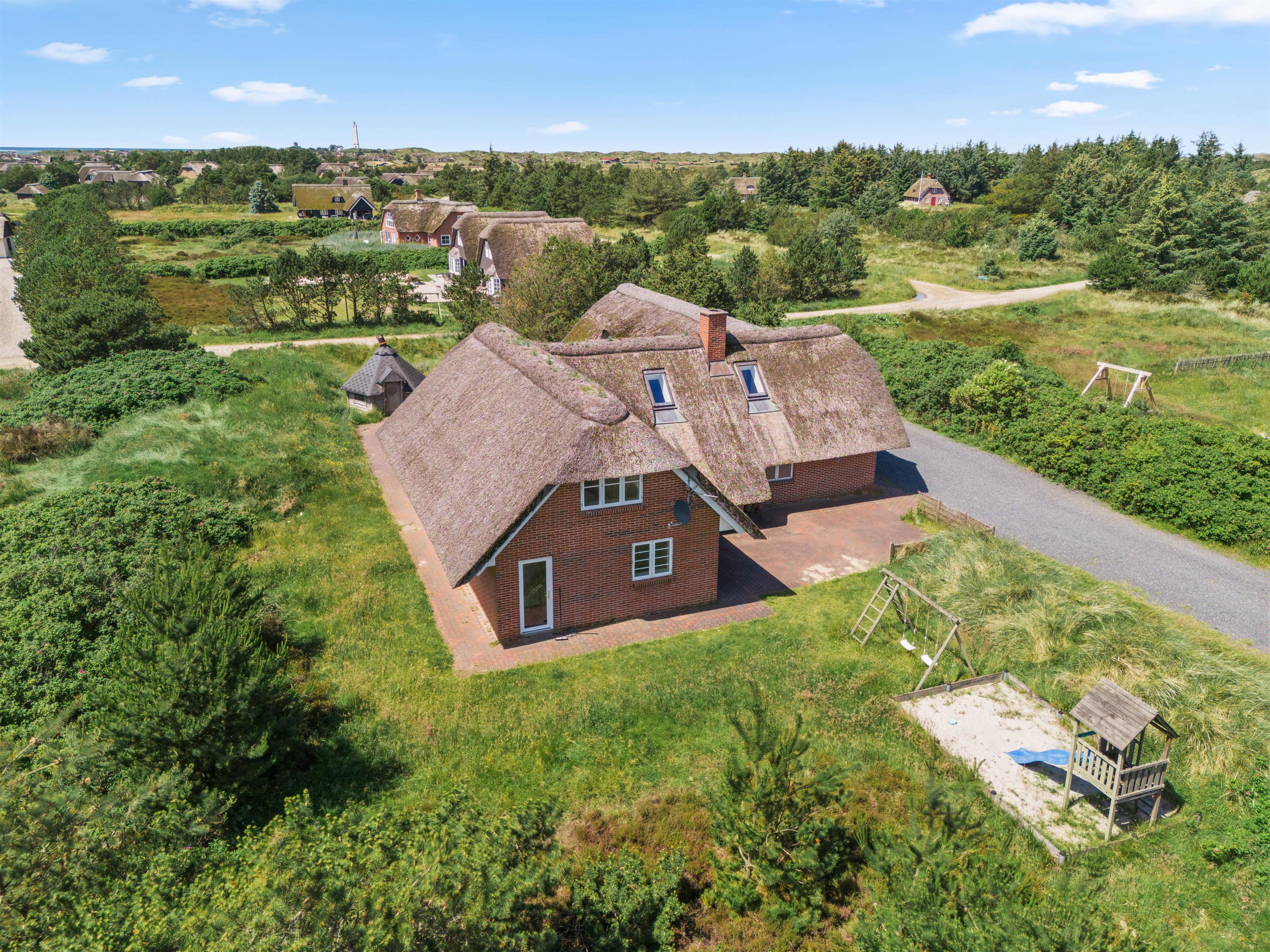 Sommerhuset i Blåvand har meget at byde på både indenfor og udenfor. Den enorme naturgrund på 2865 m² vil børnene få stor glæde af, når de leger på gyngen eller i sandkassen, og på den åbne terrasse kan du sidde og nyde den friske luft sammen med dine nærmeste, måske over lækker mad fra gasgrillen, mens I følger børnenes leg.