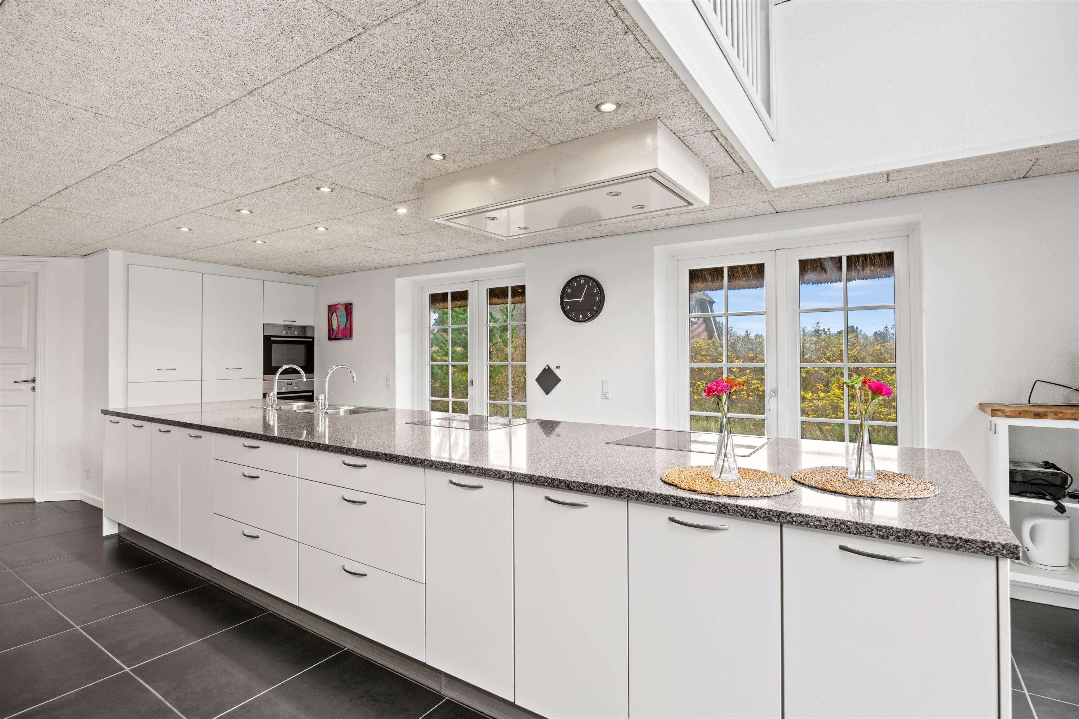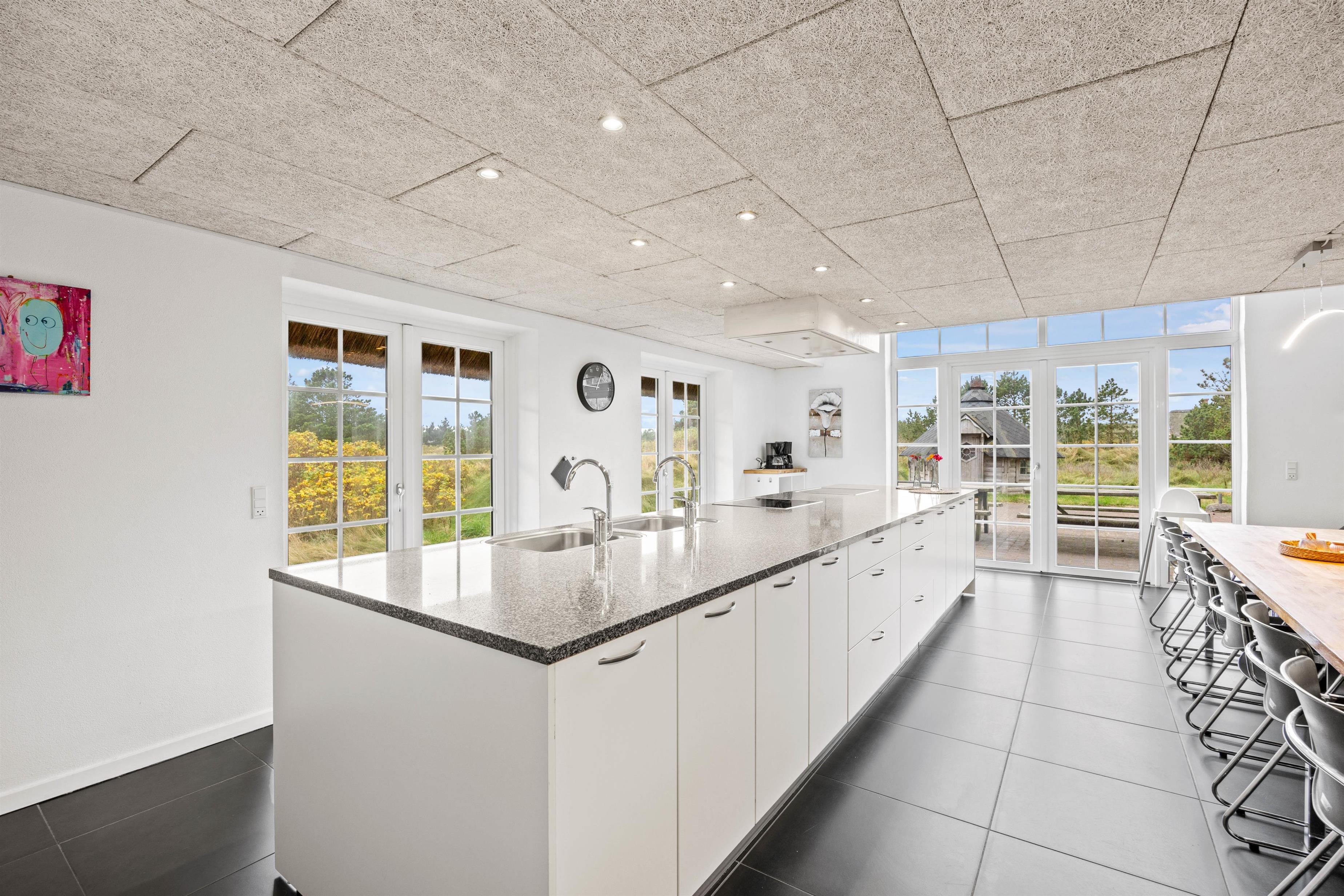 Med i alt 4 badeværelser opstår der aldrig kø, selv ved fuld belægning, og det veludstyrede køkken med opvaskemaskine, vaskemaskine og tørretumbler gør dit ophold endnu mere komfortabelt. De moderne bekvemmeligheder i køkkenet gør tilberedningen af måltider til en leg, mens vaskemaskinen og tørretumbleren sikrer, at du altid har rent tøj.