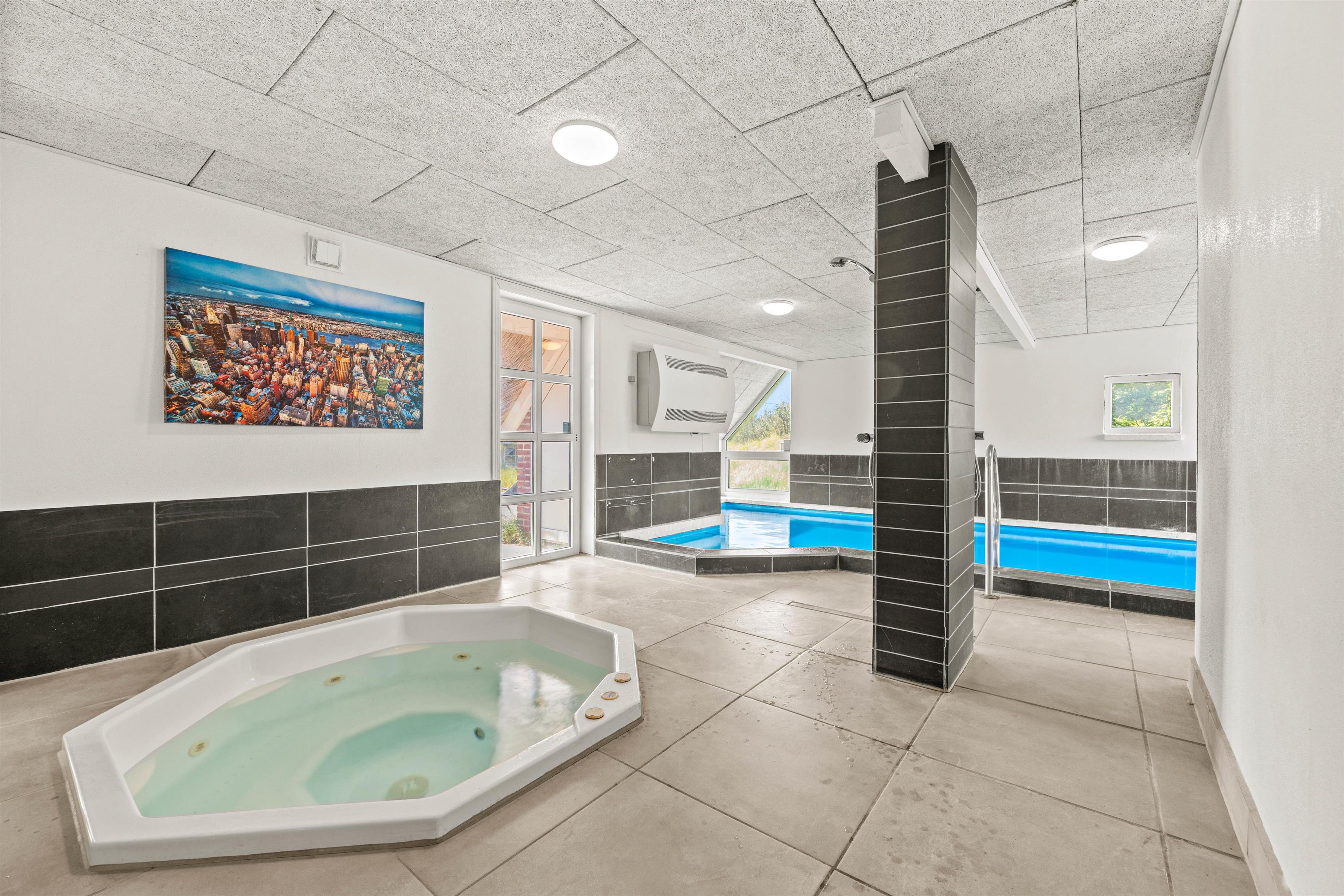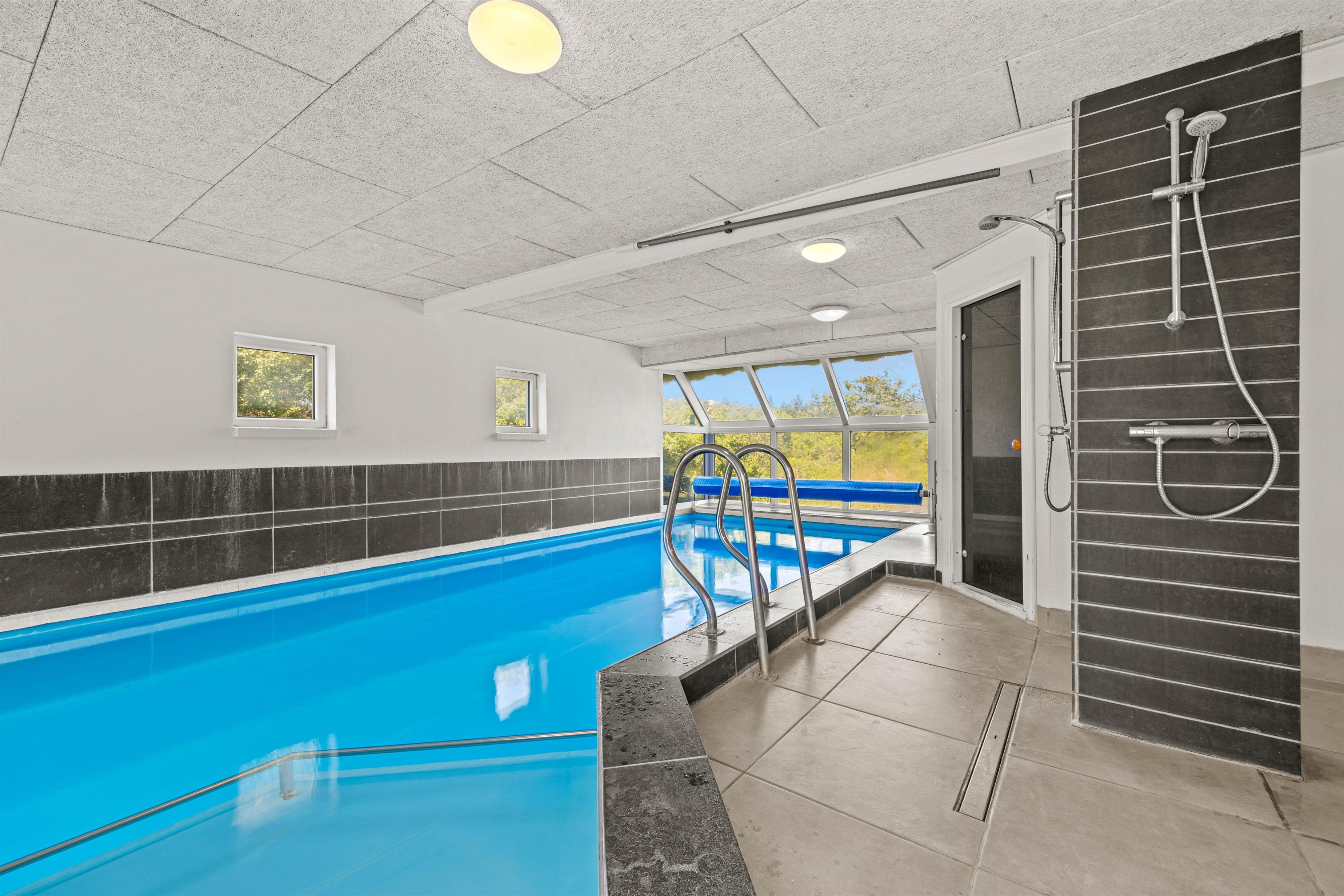 Med Per Knoldsvej 16 får I lidt af en wellness-oase. Den 23 m² store swimmingpool og saunaen indbyder til ren afslapning, mens spaen giver ekstra komfort, og gulvvarmen i badeværelserne samt brændeovnen i sommerhuset gør de køligere dage behageligt lune inden døre.