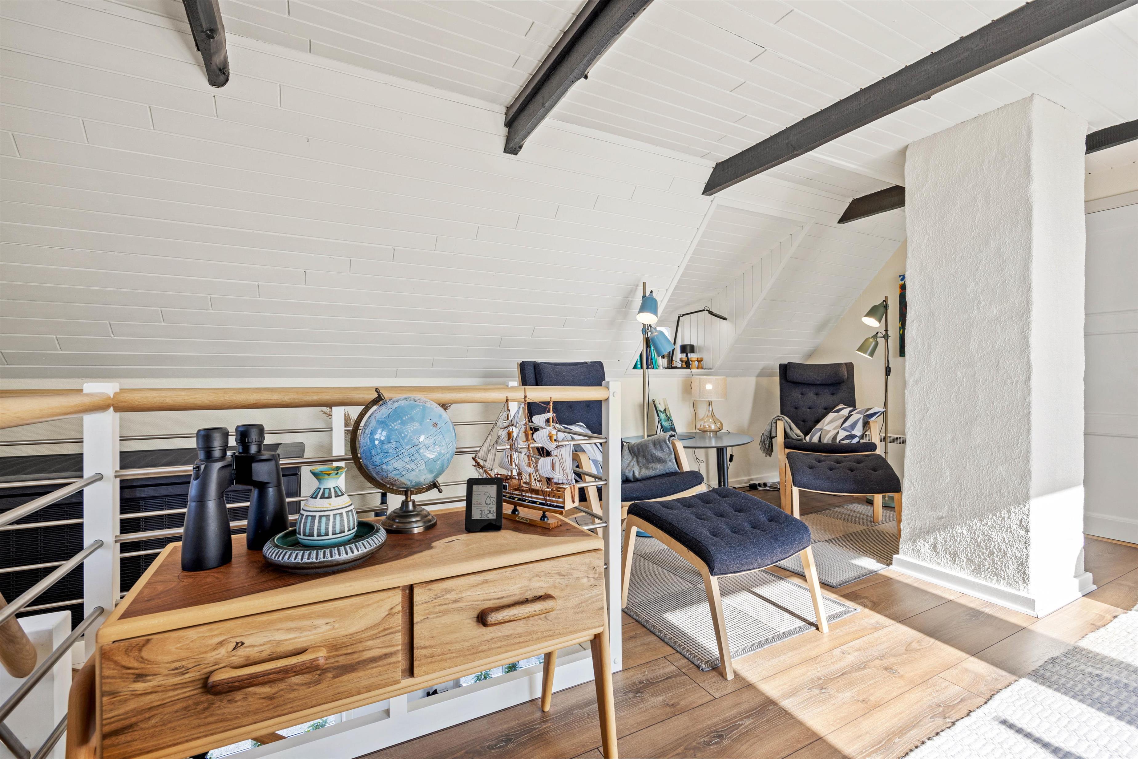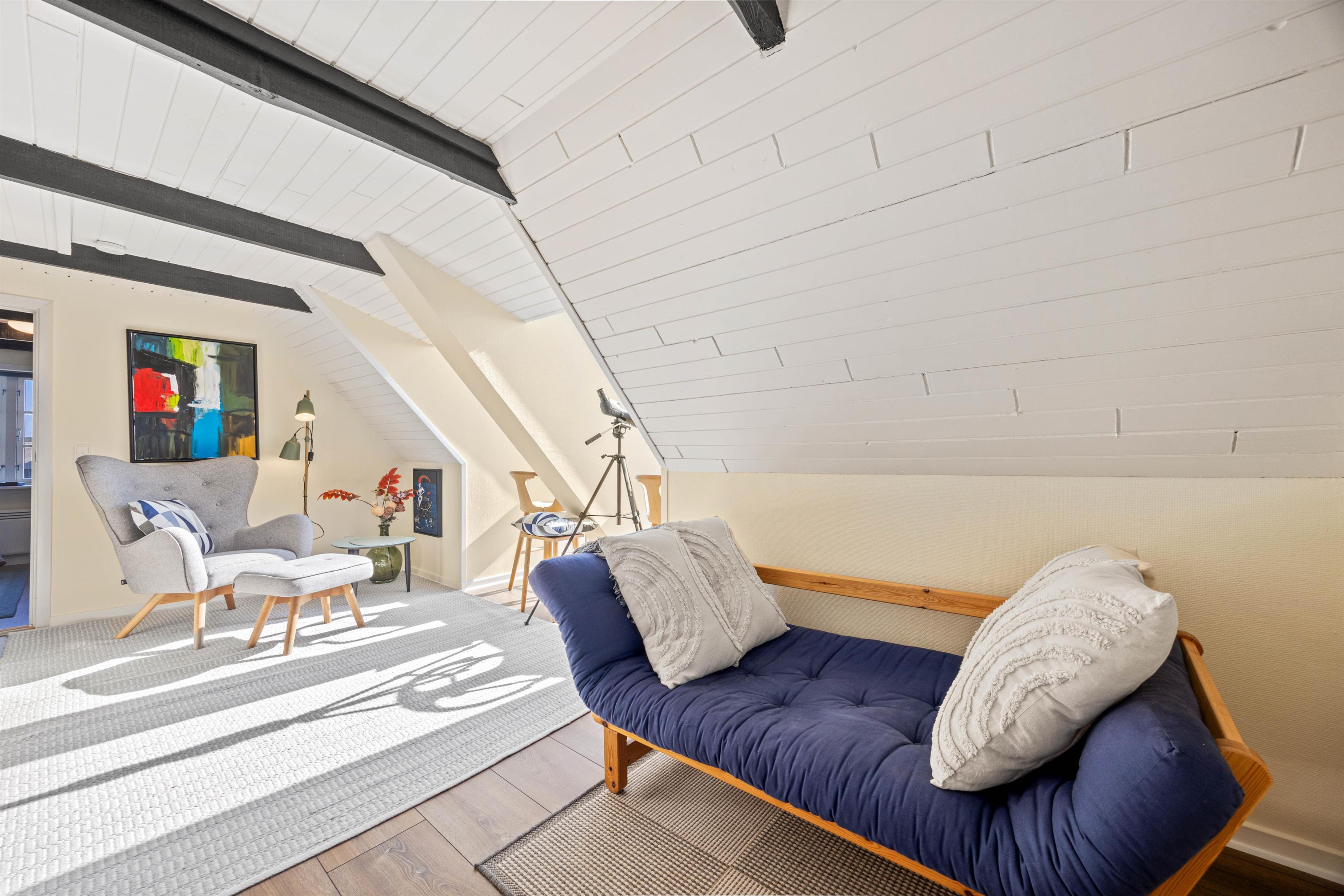 Feriehuset er renoveret i 2019 og er lyst og venligt indrettet. Det emmer af feriestemning og er perfekt til den lille familie. I vil have rig mulighed for at nyde Blåvands bedste udsigt fra feriehusets store vinduer på første sal, mens I slapper af med en god bog eller en kop kaffe.