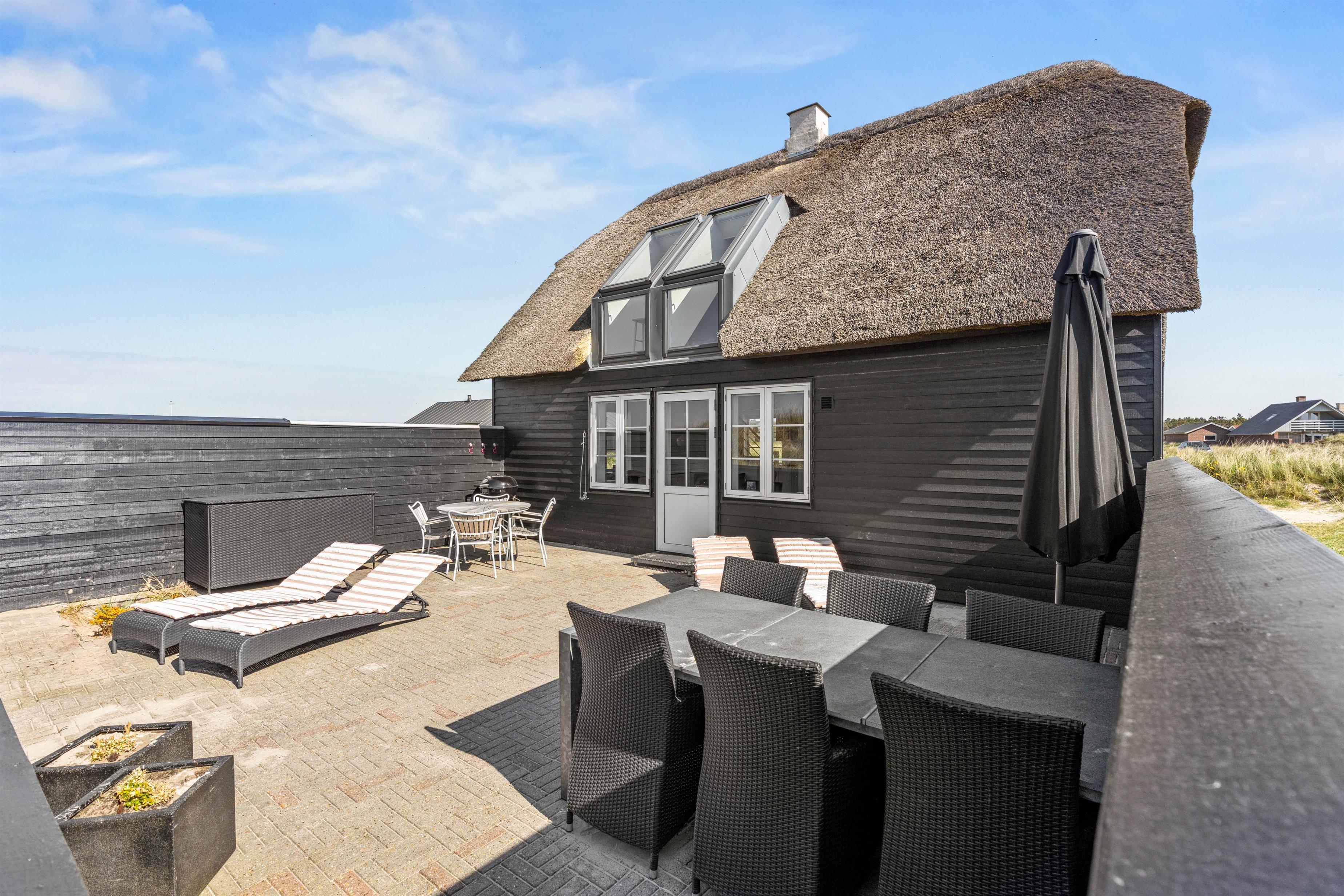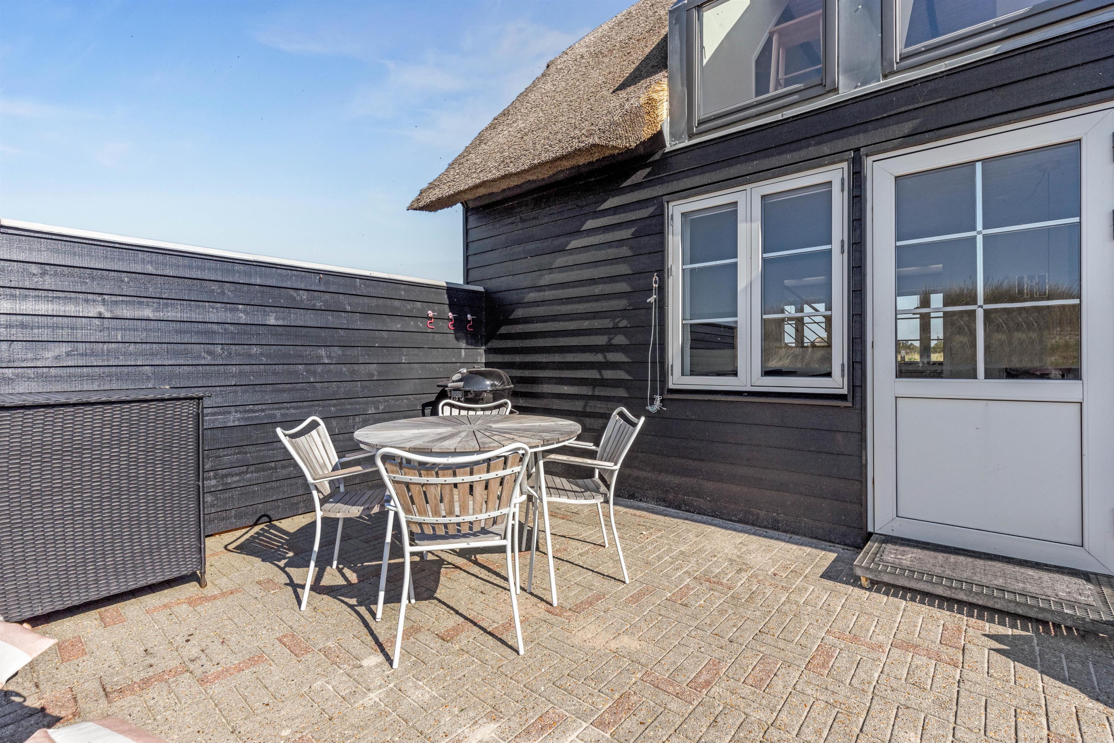 Feriehusets beliggenhed er noget helt specielt, og I vil komme til at bruge mange timer på blot at nyde udsigten over bølgerne. På sommerhusets vestvendte terrasse kan I nyde solen og Vesterhavet på en af de gode liggestole – den perfekte måde at læne sig tilbage og glemme hverdagens stress og jag.