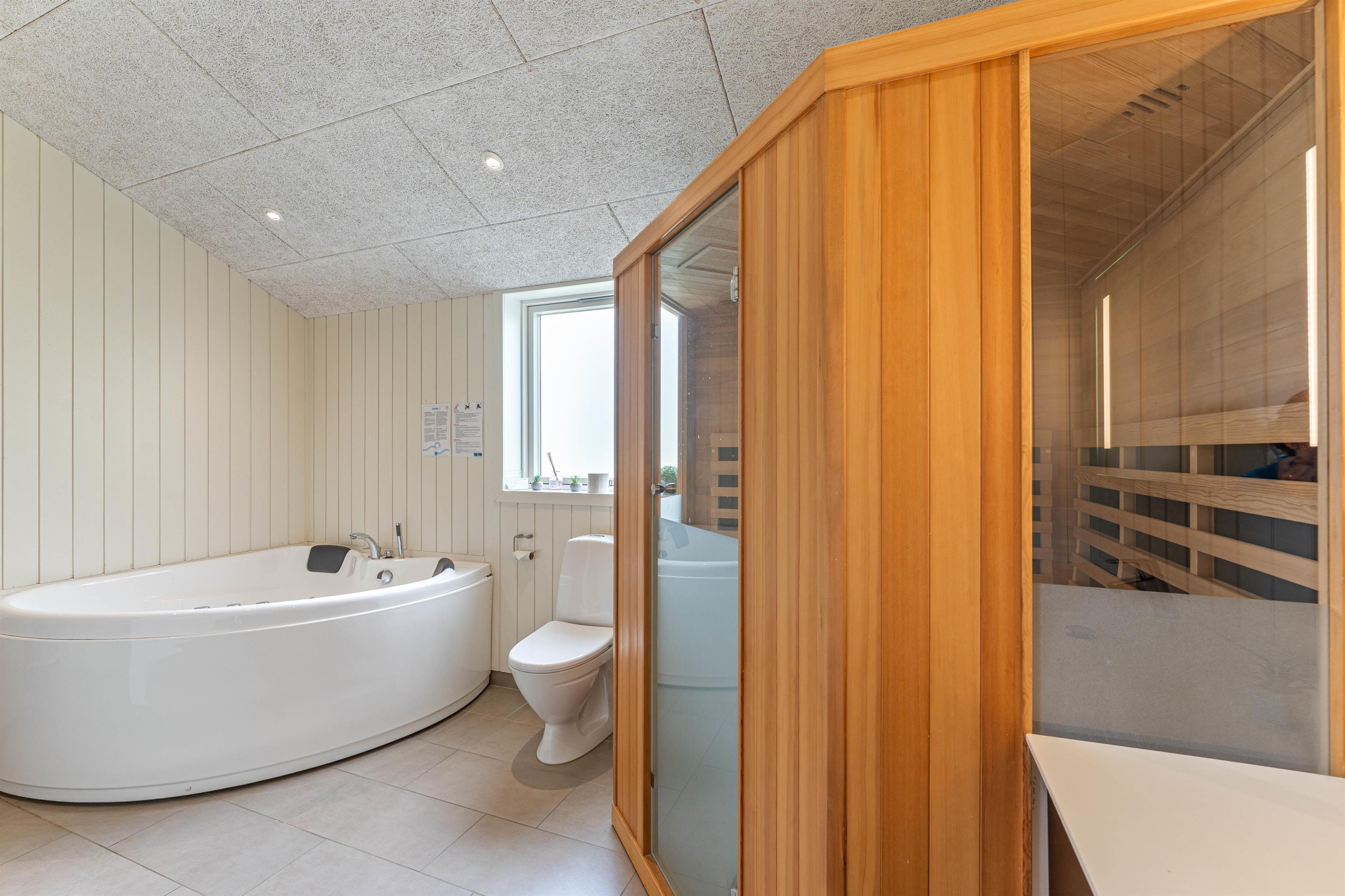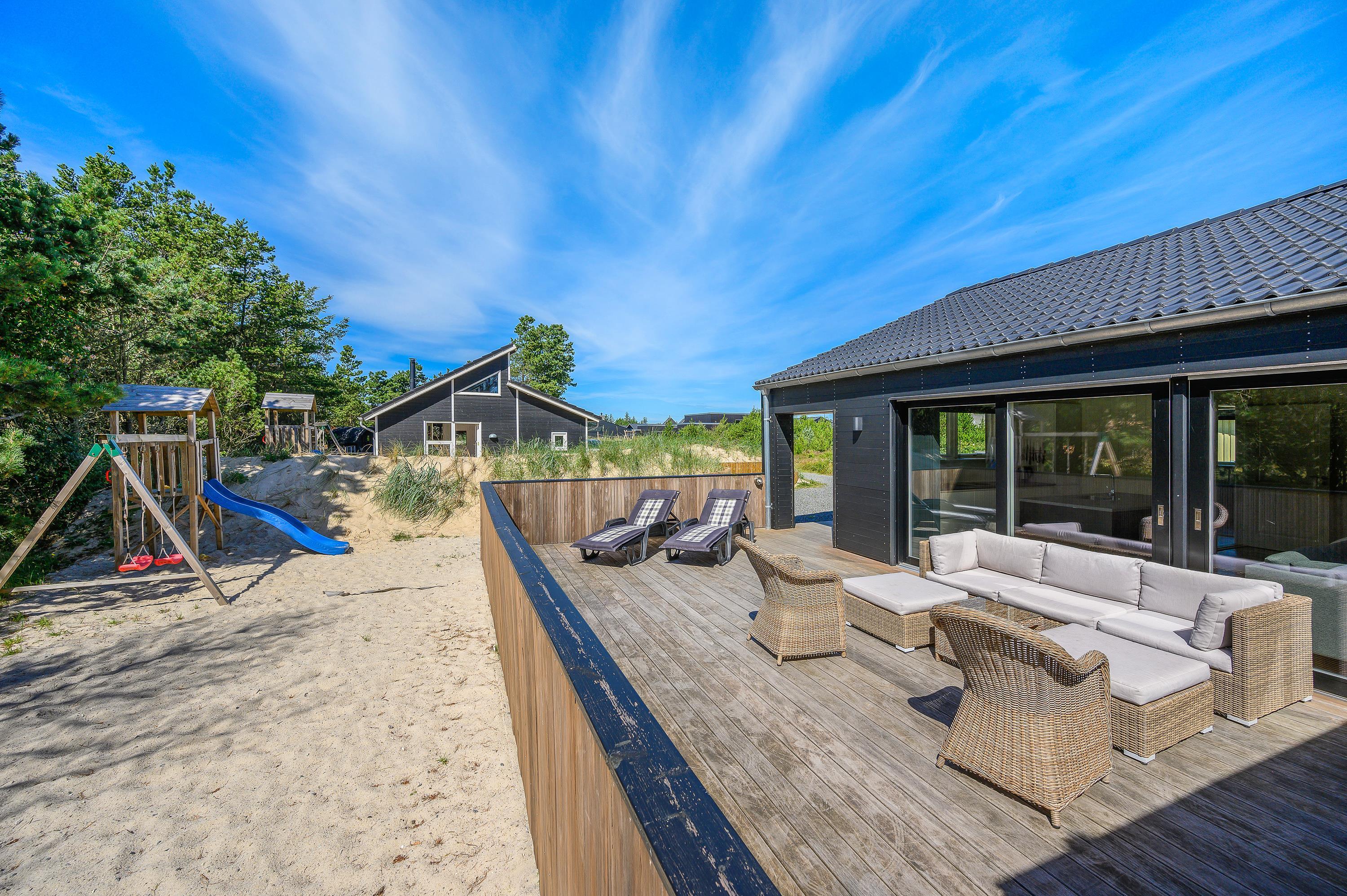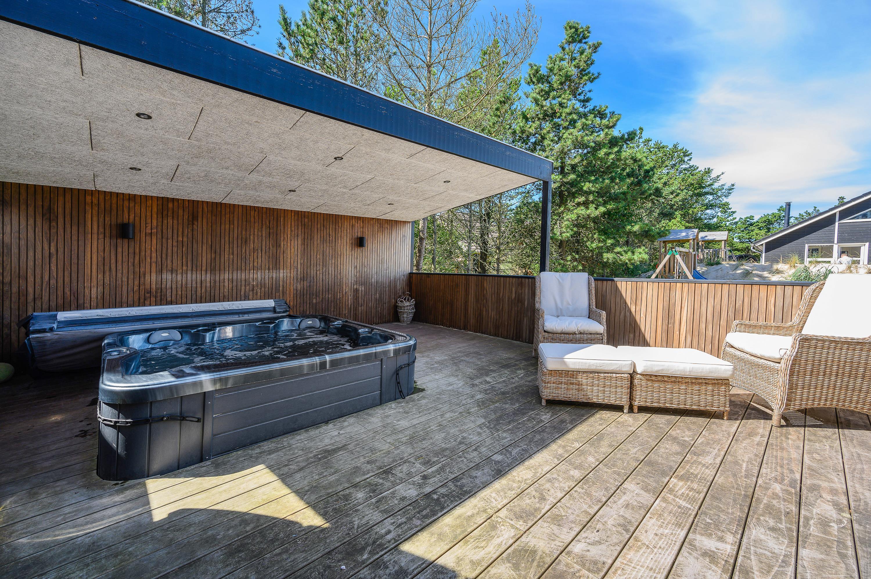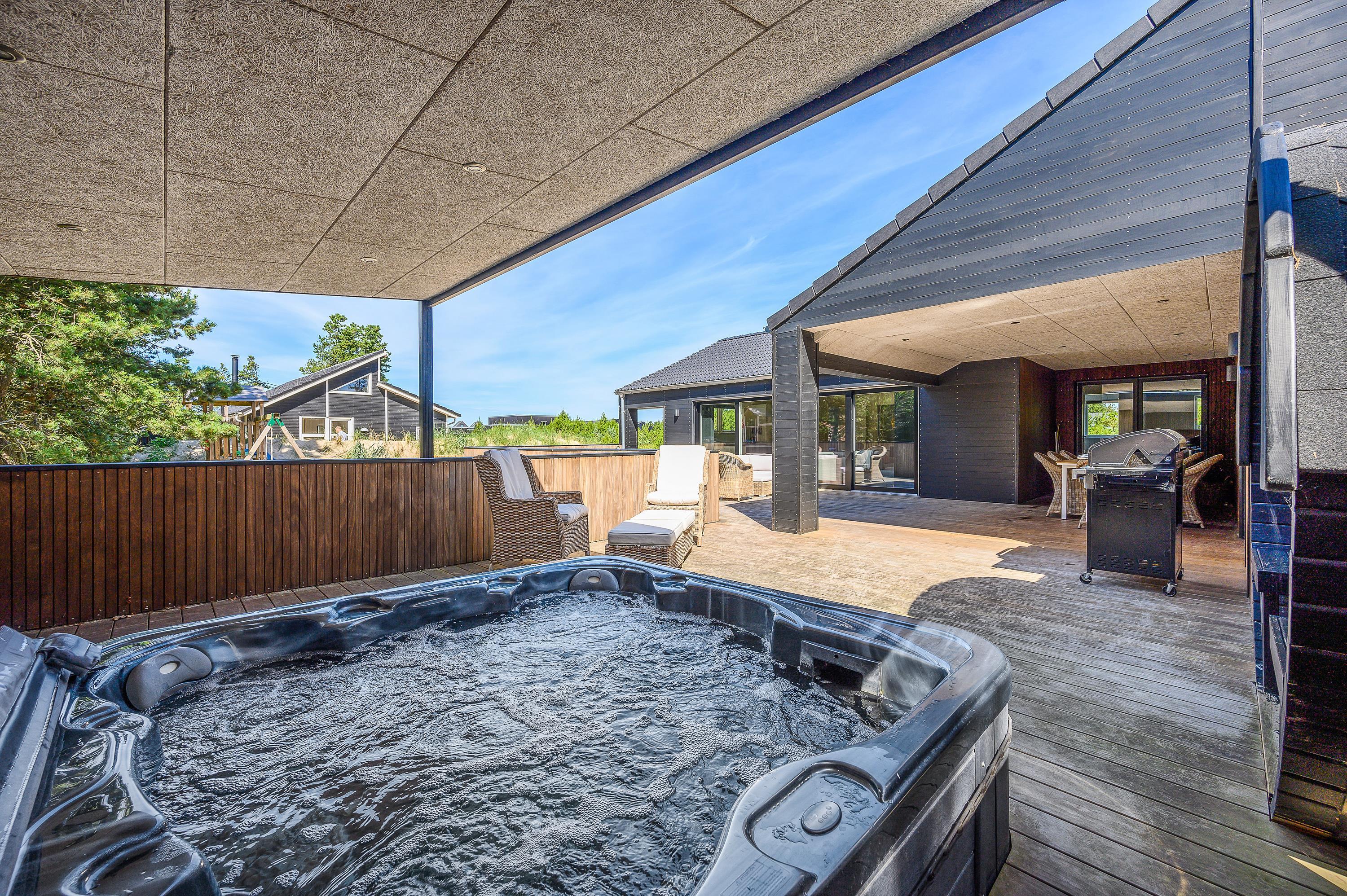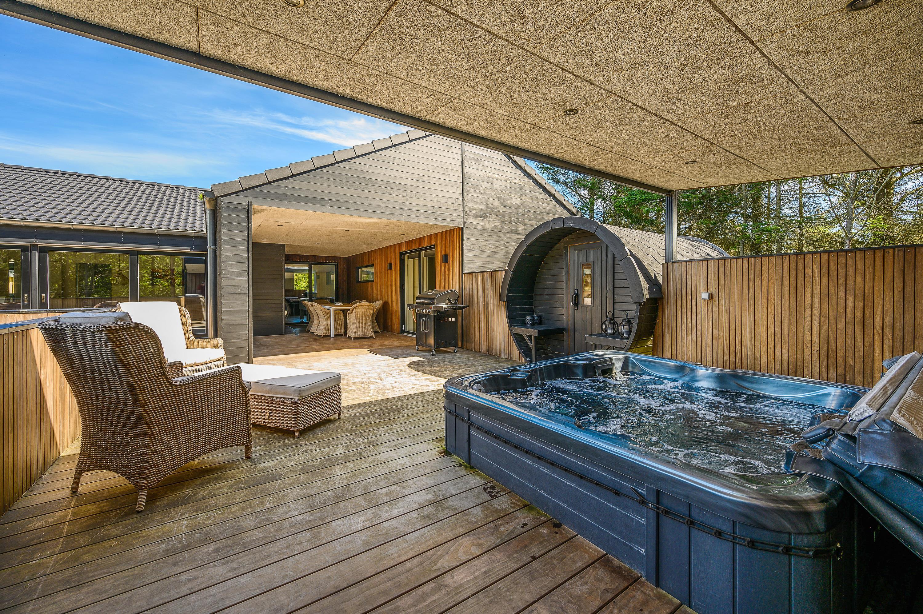 Dette feriehus på Midtbyvej 9 A har alt, hvad hjertet begærer - og mere til. Det flotte feriehus er lyst og lækkert indrettet og byder blandt andet på 2 saunaer, spabad, udendørs spabad og aktivitetsrum. Den store terrasse har masser af skønne spots og en overdækket lounge.