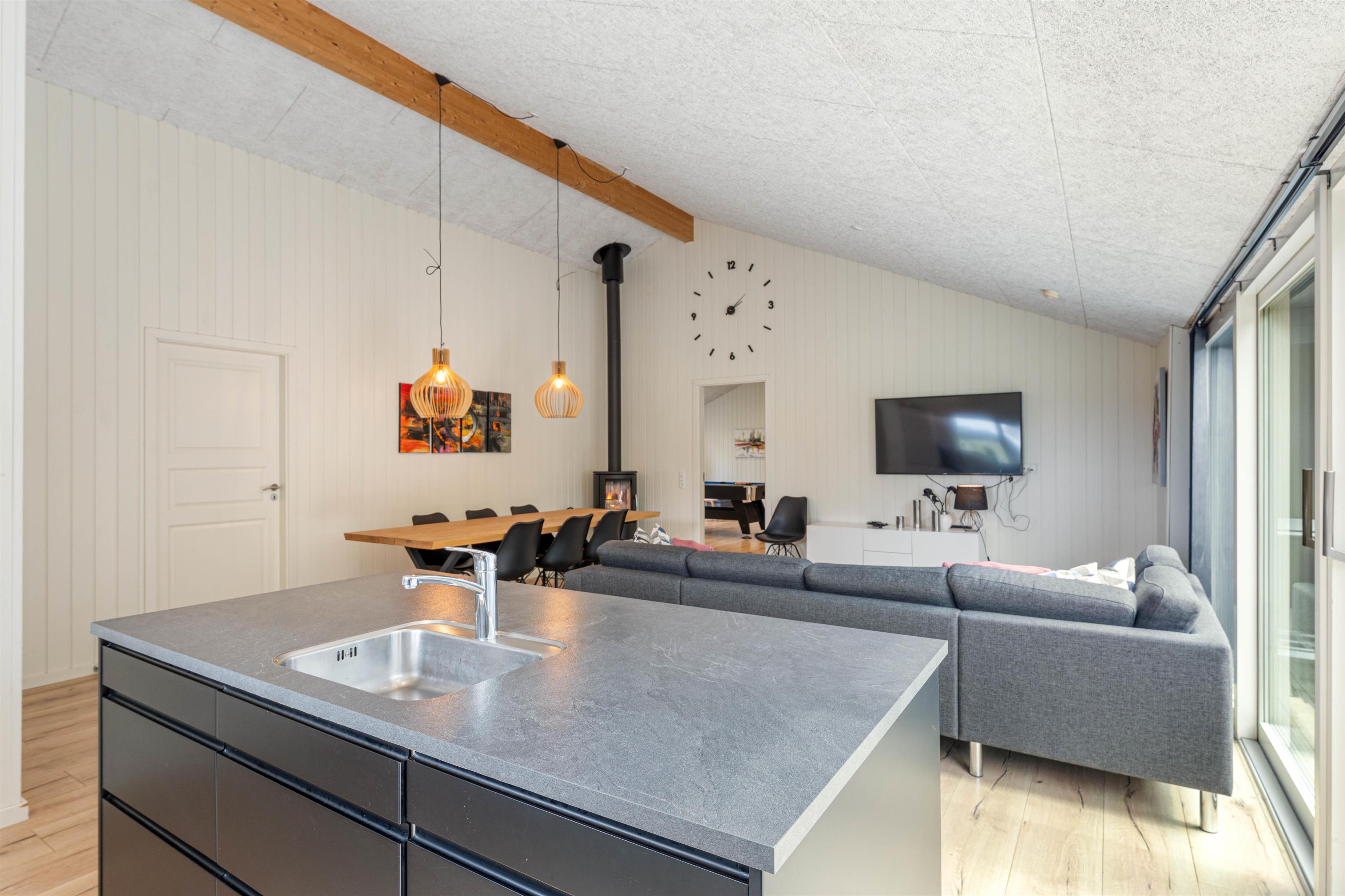 Sommerhuset i Blåvand er opført i 2018, og der er virkelig kredset om detaljen her. Indretningen er stilfuld og moderne med lyse farver og fine detaljer, som sørger for en hyggelig feriestemning, mens de store vinduer inviterer solens stråler indenfor.