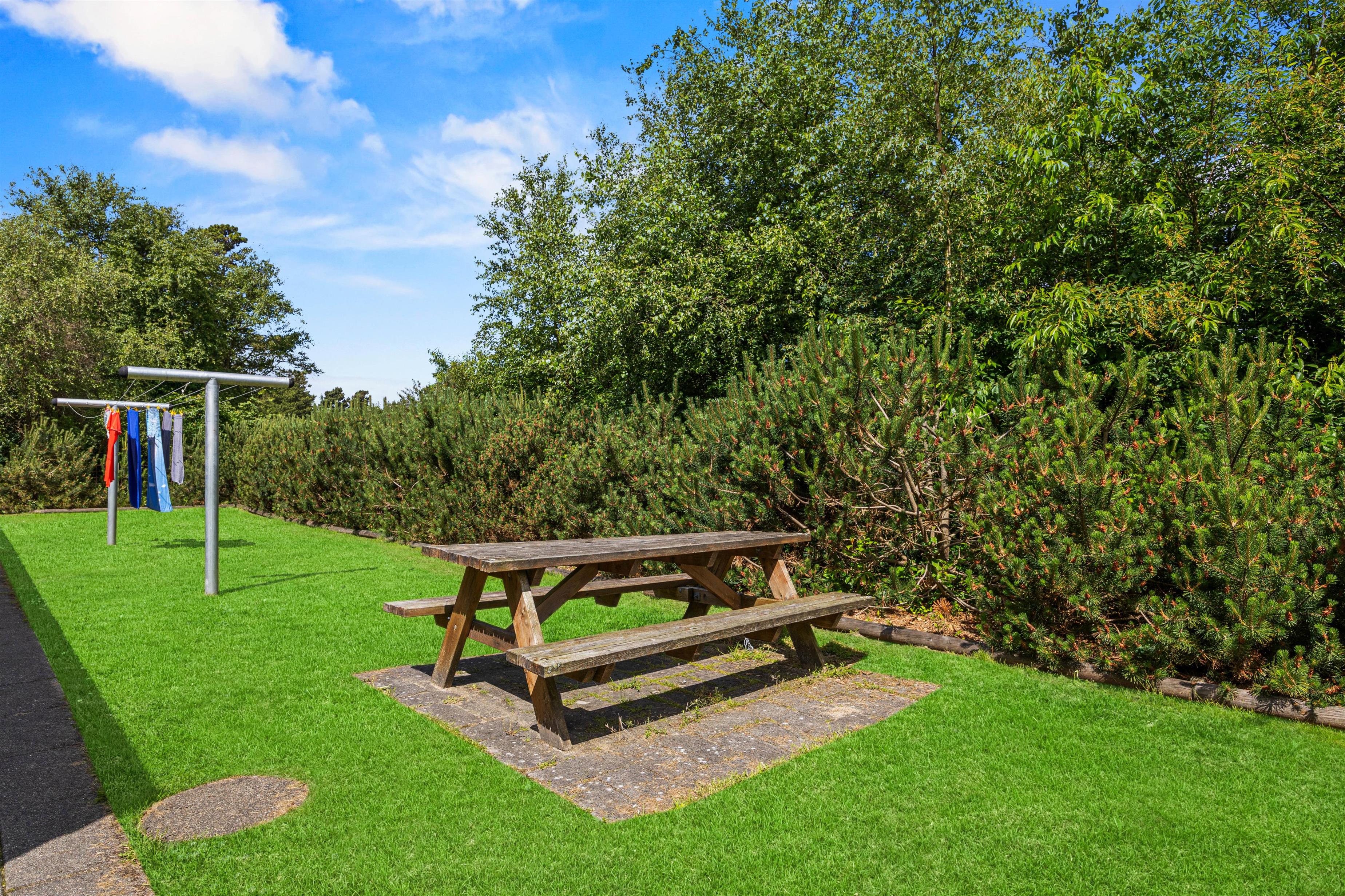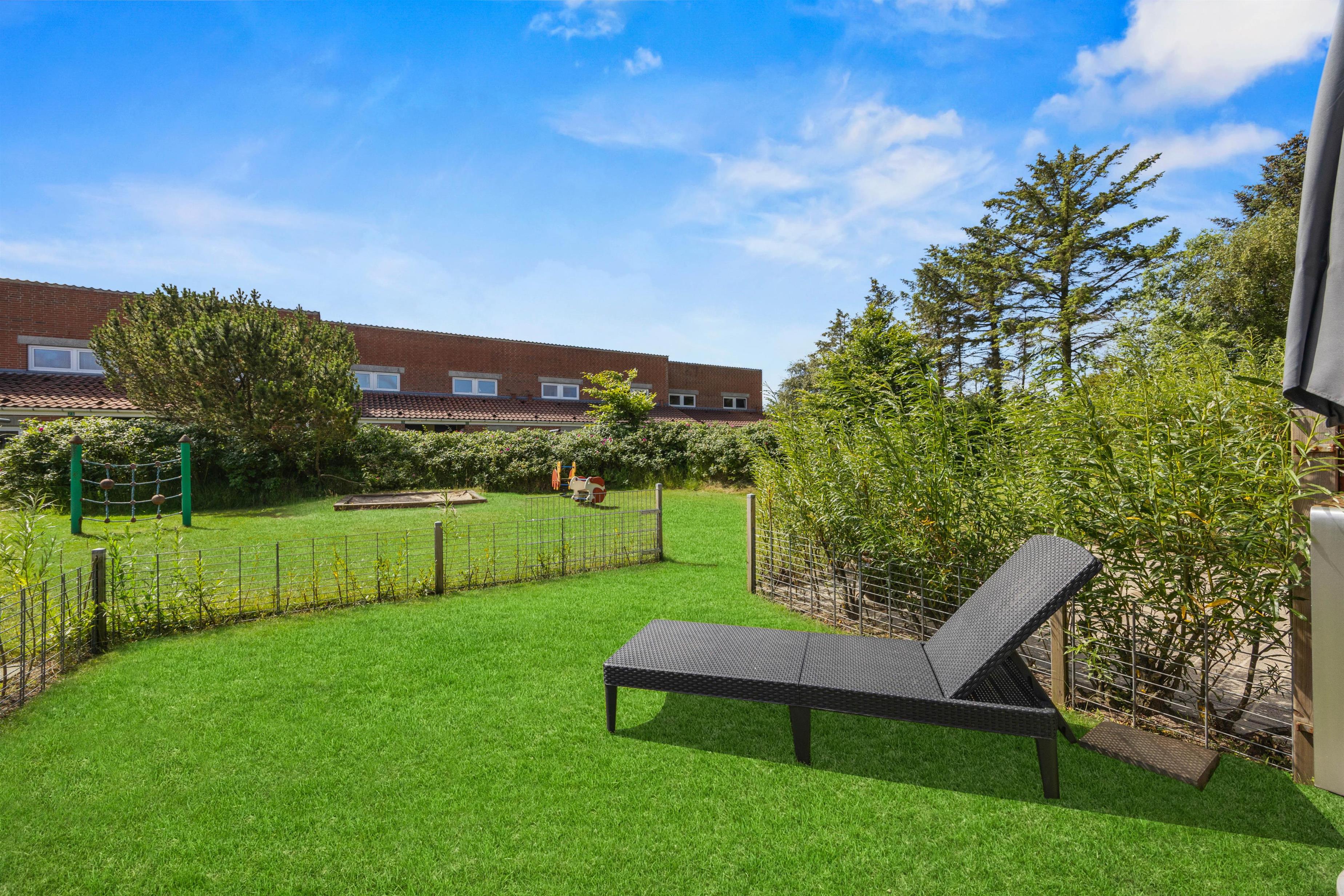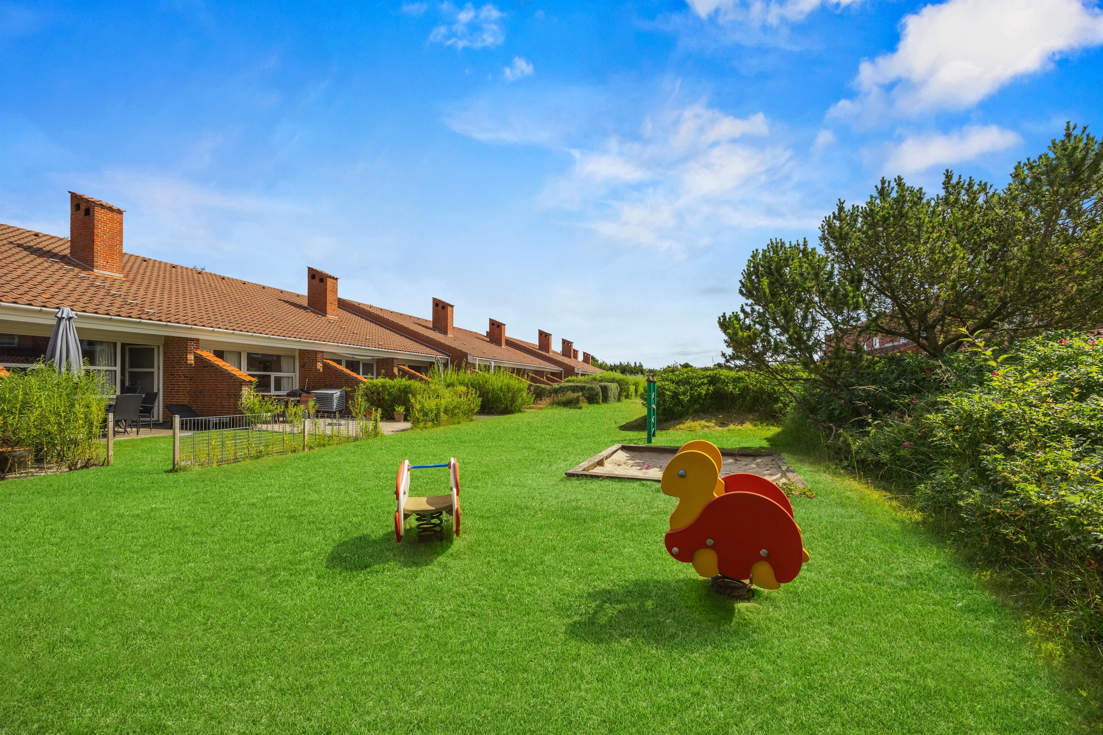 På den anden side af hegnet ligger en lille legeplads til lejlighederne. Her er der sandkasse og vipper. Lad børnene lege, mens der tændes op i grillen og gøres klar til en lækker middag på grillen. Nyd maden med et køligt glas rosé efterfulgt af en aftentur på stranden.
