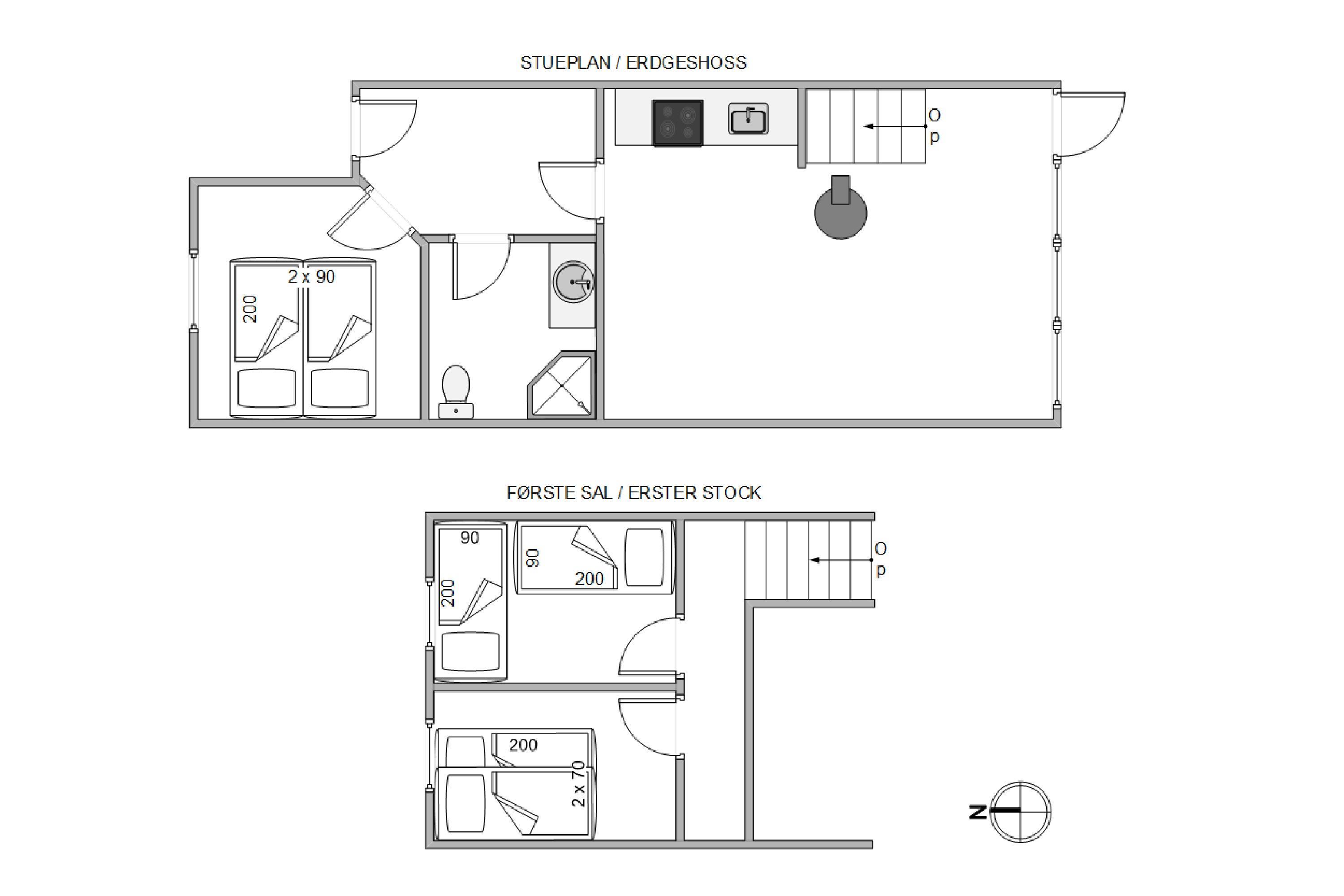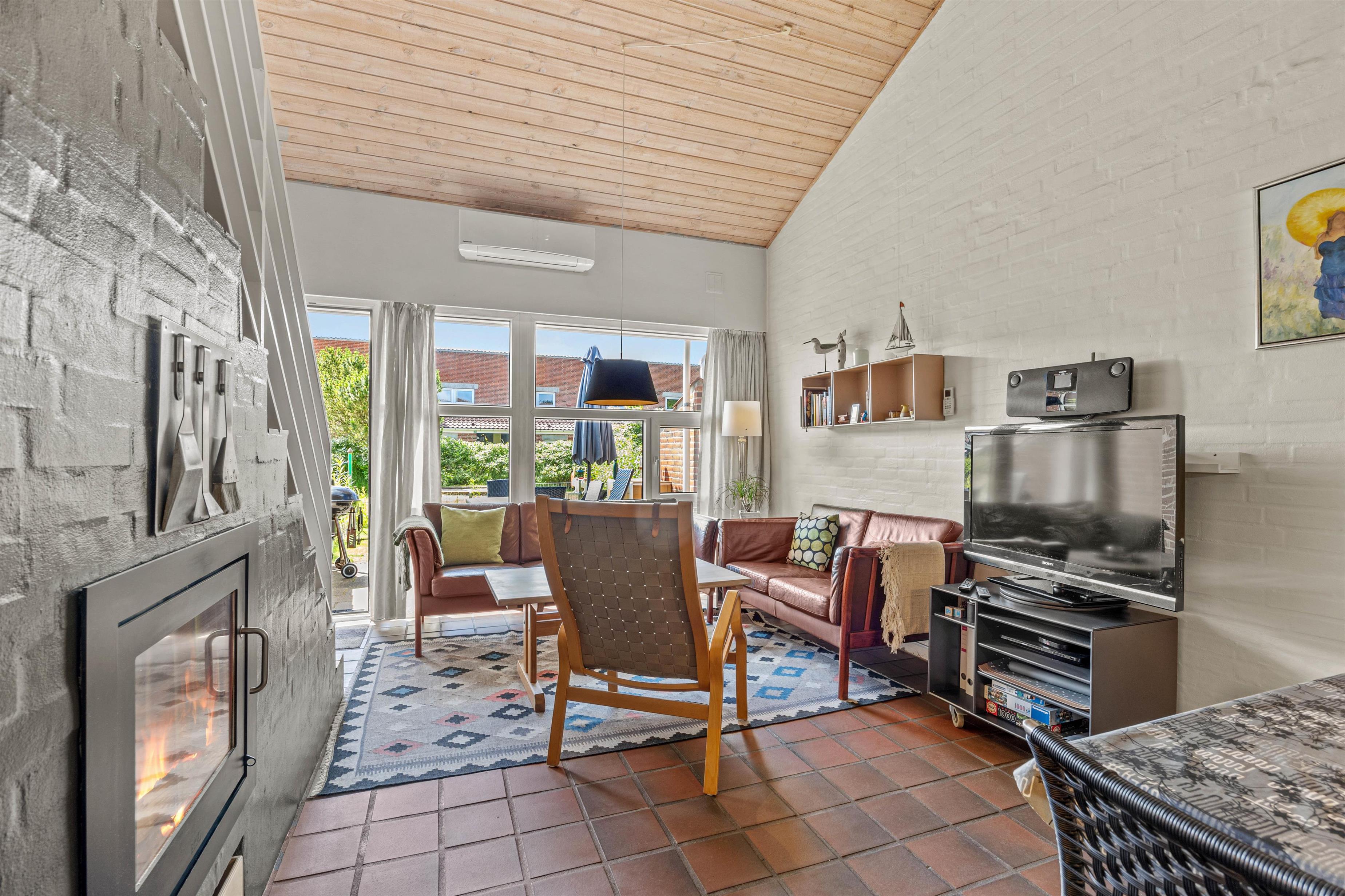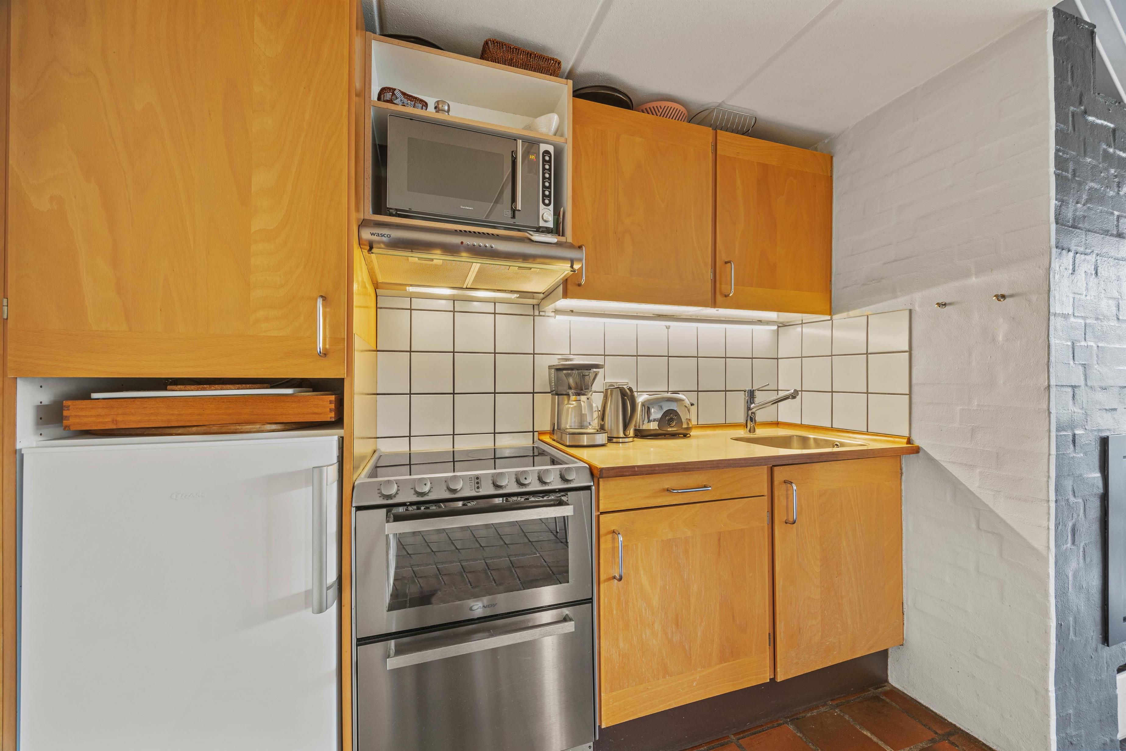 Planløsningen byder bl.a. på 3 soveværelser, 1 badeværelse og ikke mindst et køkken/alrum, hvor der er plads til jer alle. Køkkenet er udstyret med en mikroovn og en mindre ovn samt en mindre opvaskemaskine, som vasker servicet for jer – i stedet kan I sætte jer til rette omkring brændeovnen med en kop kaffe og en bog, samle familien til brætspilsaften omkring spisebordet eller til en filmaften i sofaen.