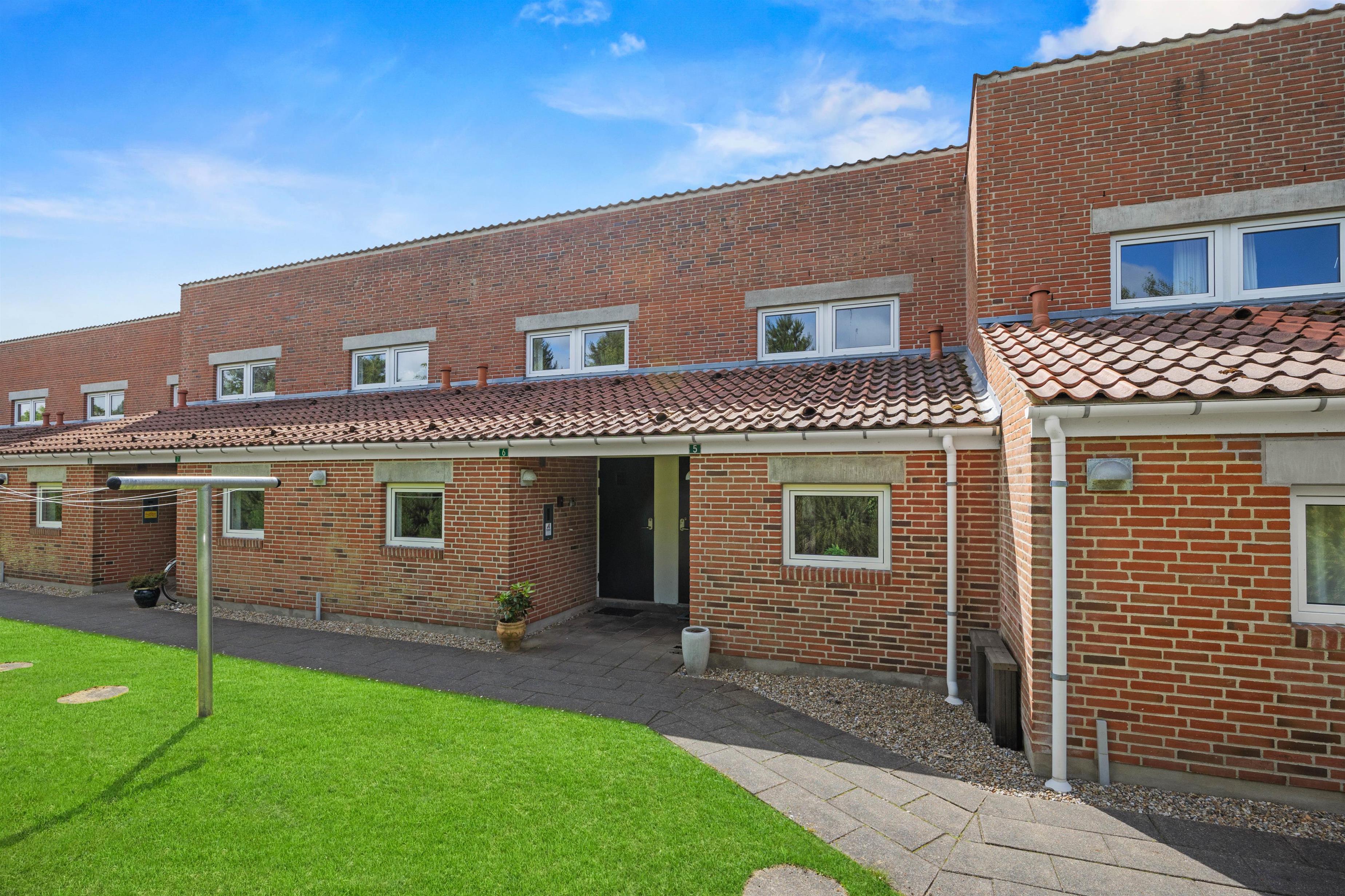 Fra stuen er der udgang til ferielejlighedens tilhørende terrasse. Her er afskærmning mellem naboerne, og den lille have er lukket af med et trådhegn i hækken, ligesom havemøblerne også står klar her, så I kan nyde den danske sommer.