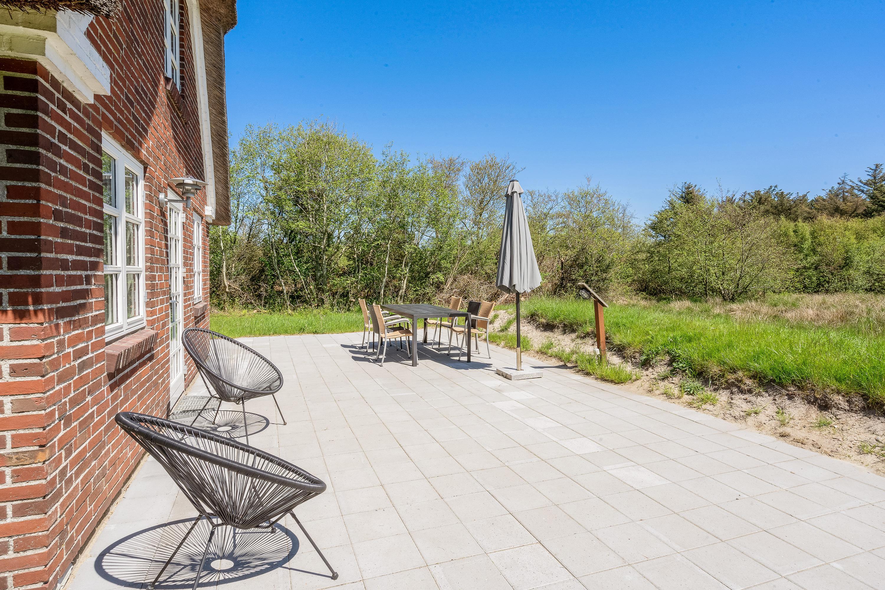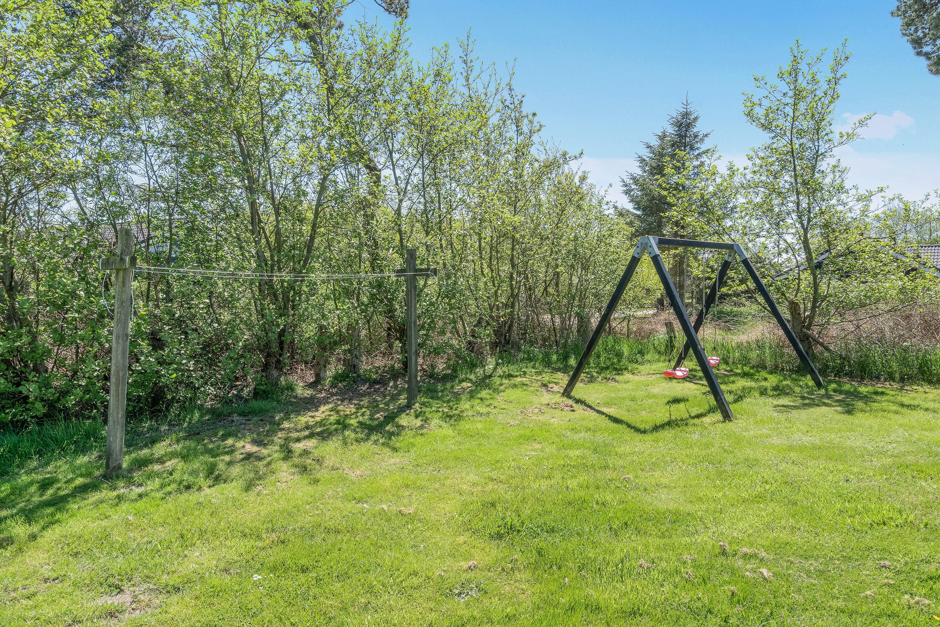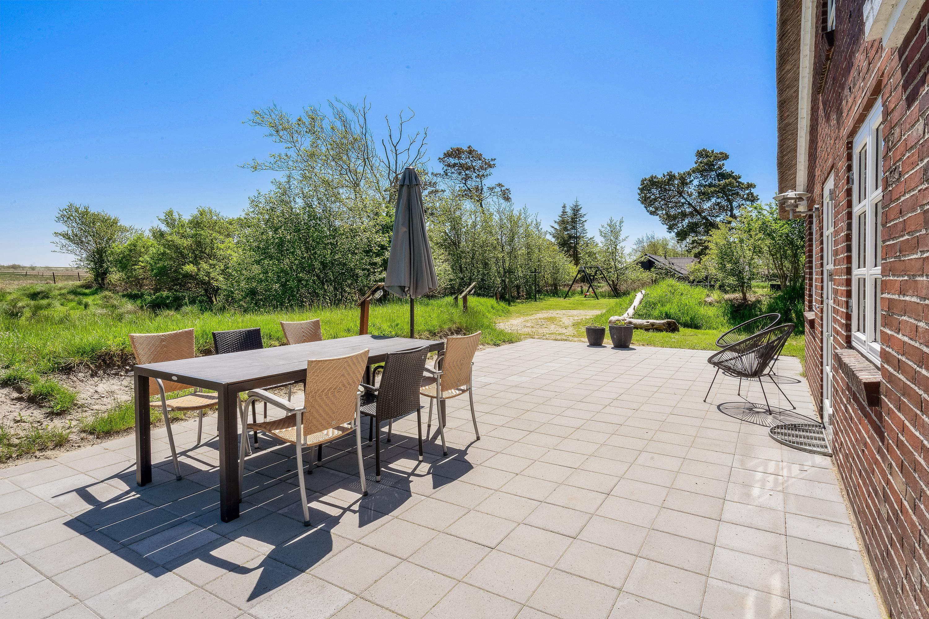 På terrassen finder I diverse havemøbler, liggestole og en grill. Så knap en øl op, og læn jer tilbage i liggestolene, mens solen bager på jer. I har kun 600 meter til stranden, så der er ikke langt fra tanke til handling, hvis et dyp i havet pludselig frister. I haven er der også et gyngestativ til familiens mindste.