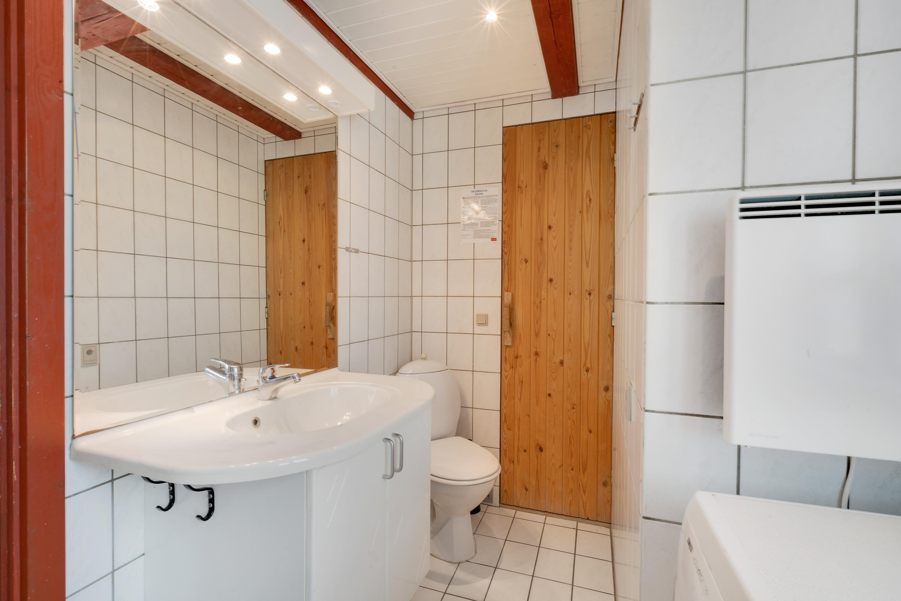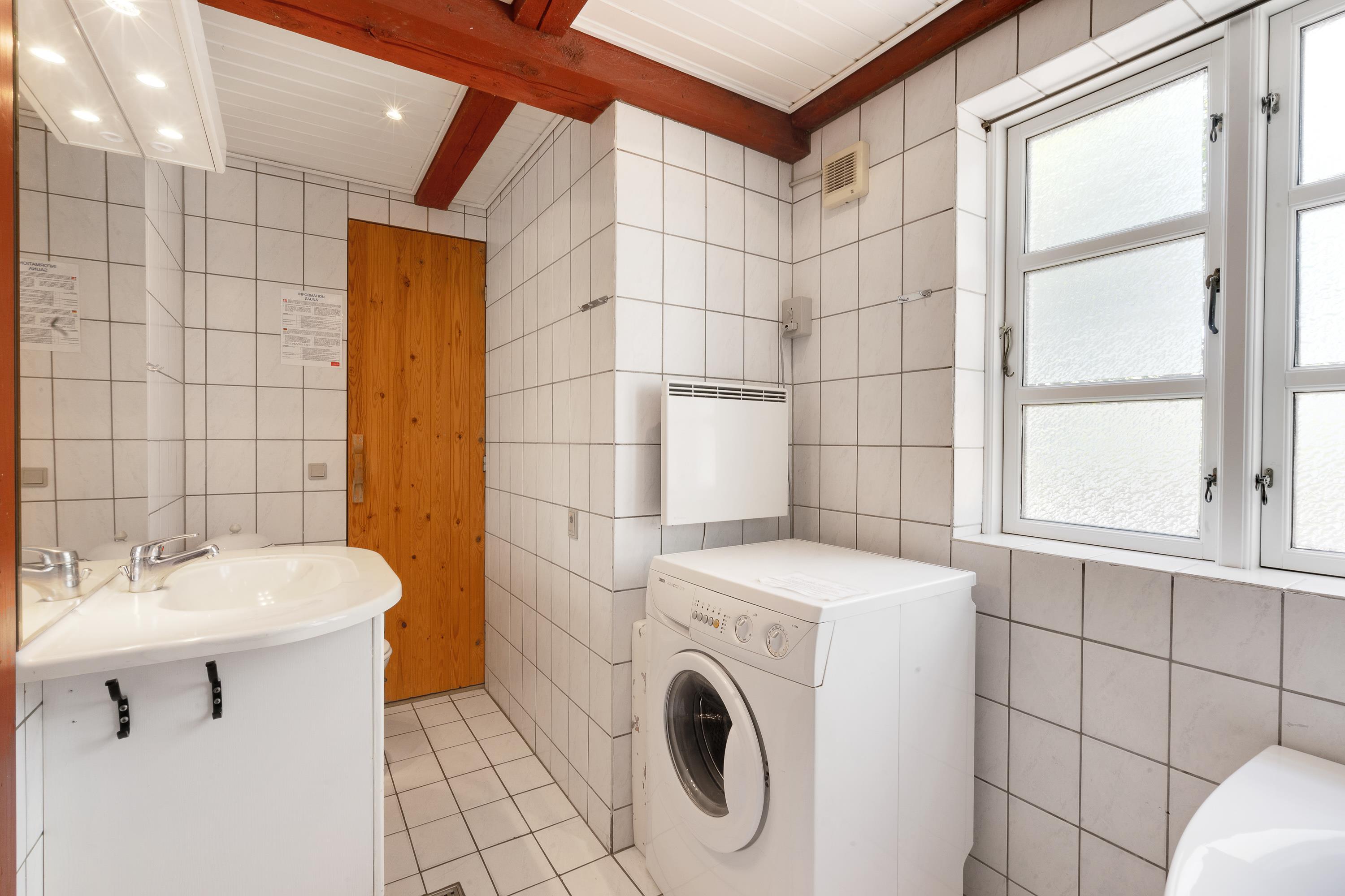 I sommerhusets badeværelse finder I både spabad og sauna, som I frit kan benytte. Så læn jer tilbage i spabadet eller saunaen, og mærk varmen og ikke mindst følelsen af ferie og ren afslapning. Det er lige, hvad man har brug for på sin ferie. Ydermere har husets badeværelse indbygget gulvvarme.