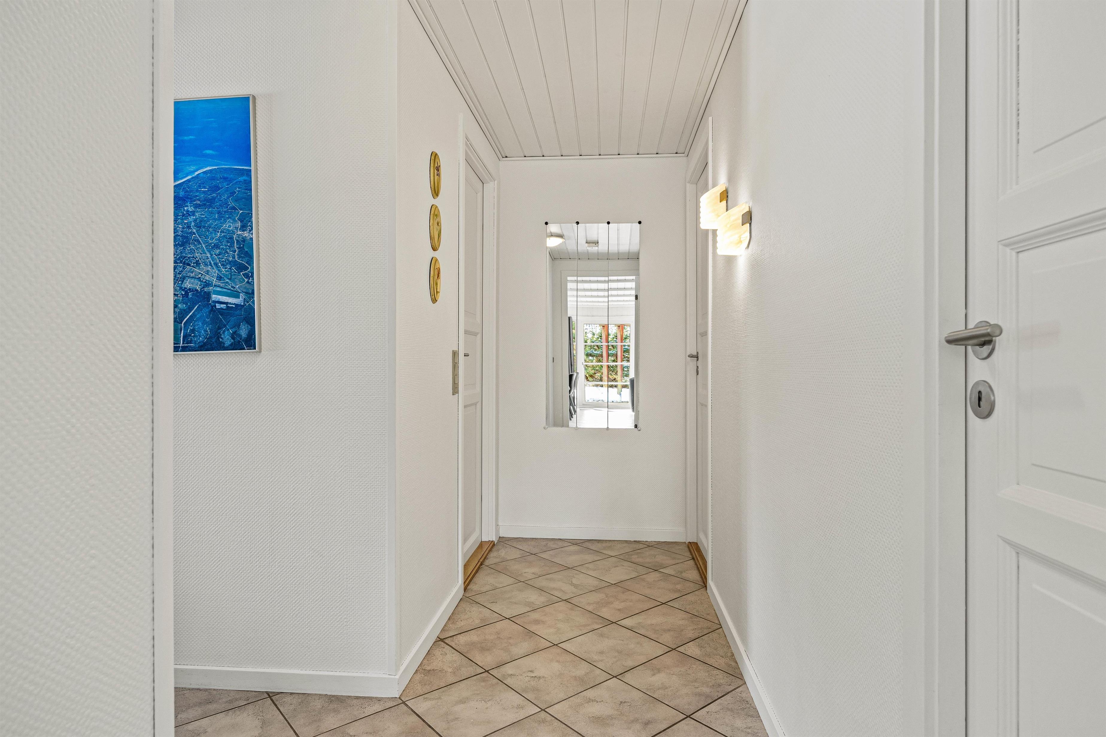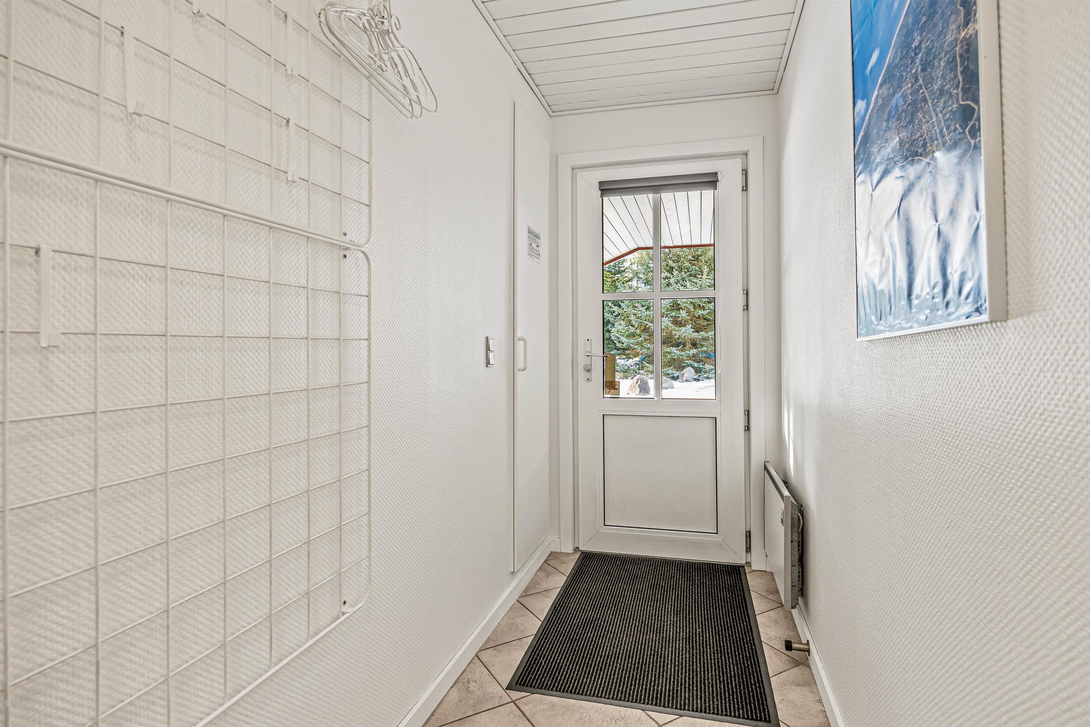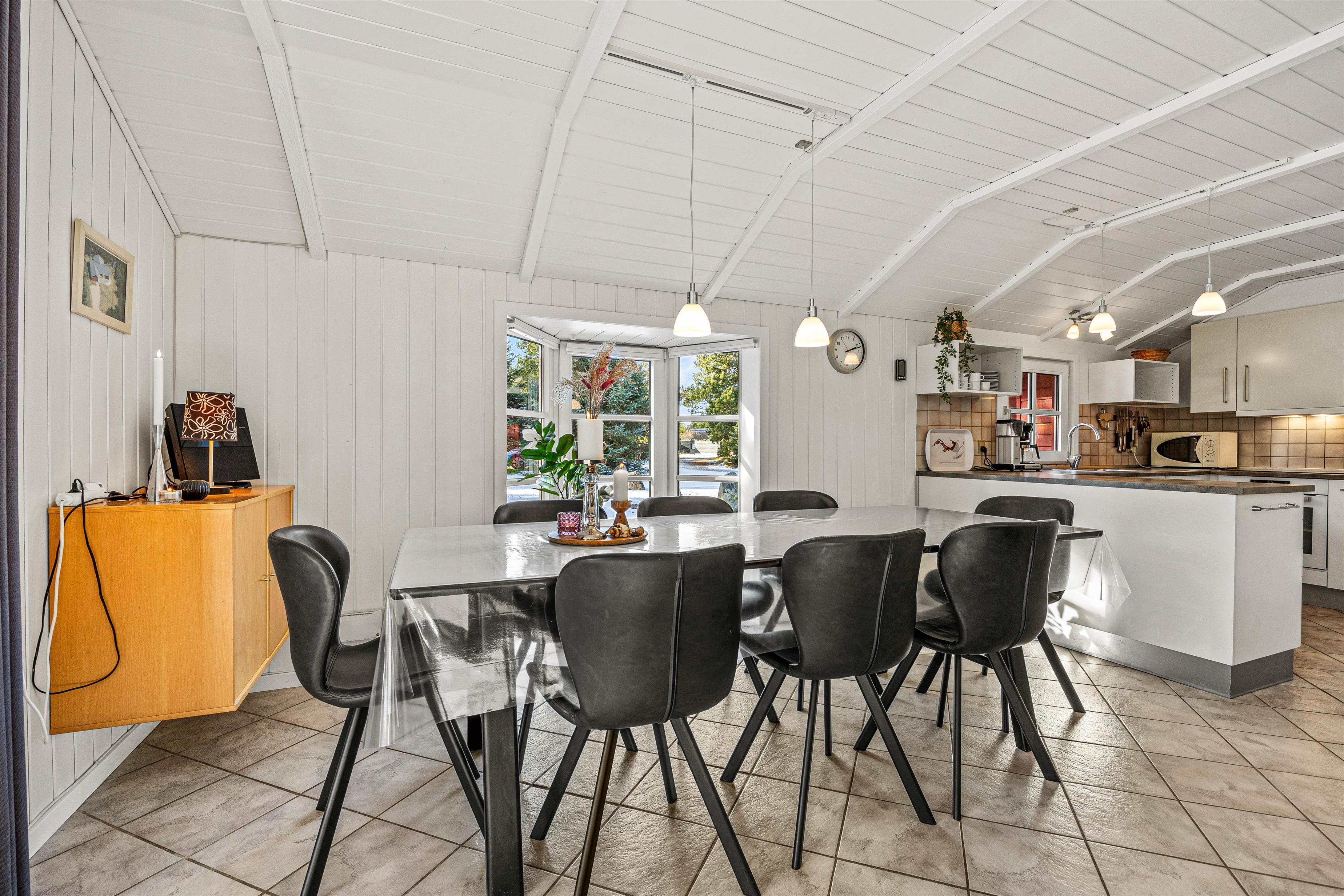 Fra den store indkørsel er der adgang til huset gennem den rummelige entré, hvor der god plads til sko eller støvler og overtøj. Ved siden af ligger sommerhusets lyse og veludstyrede køkken, der rummer både opvaskemaskine, mikroovn og induktionskogeplade med ovn. Det dejlige åbne køkken giver mulighed for, at også kokken kan følge med i samtalen eller spillets gang på spisebordet.