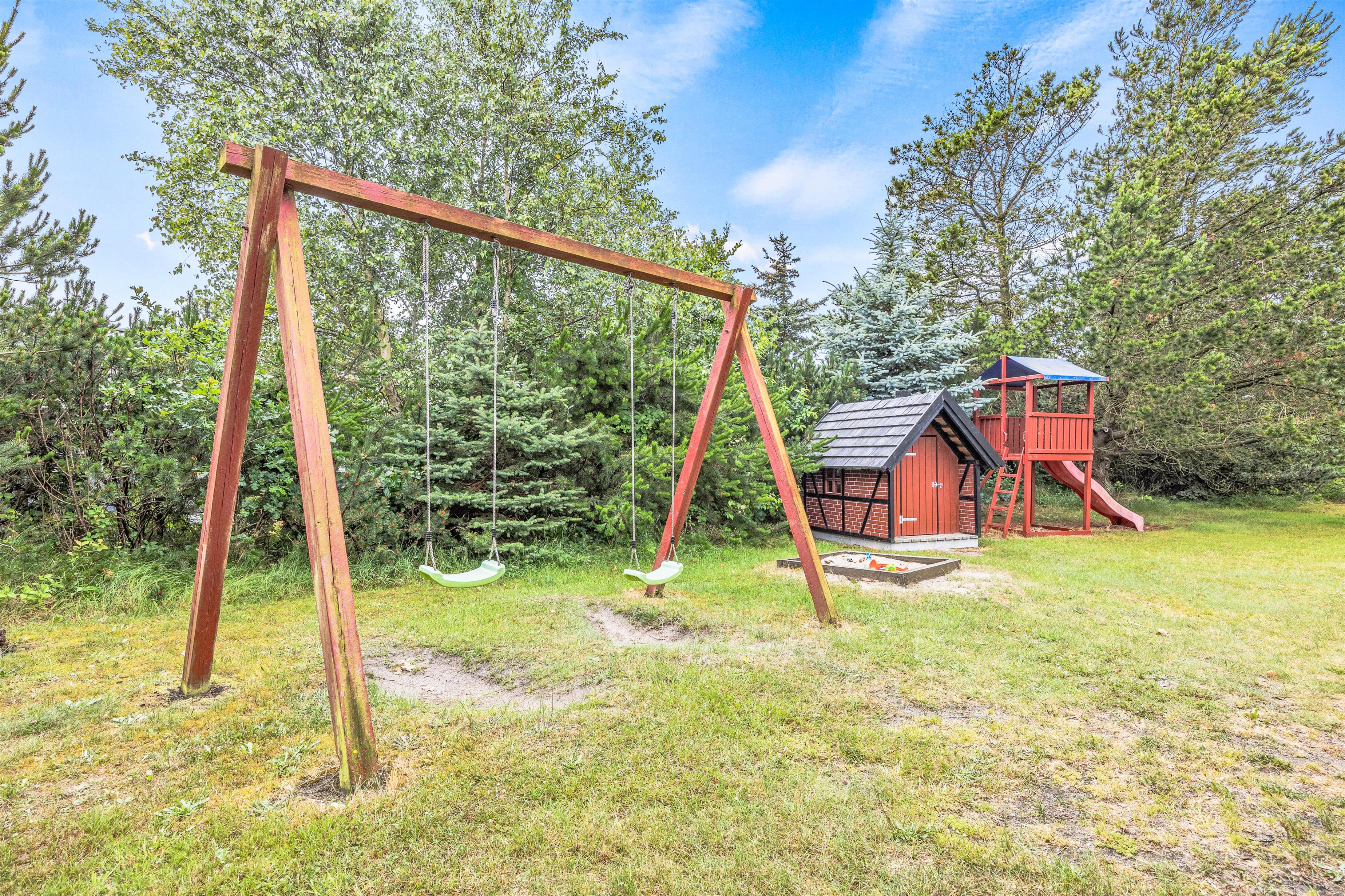 Den store naturgrund gemmer også på både sandkasse, gyngestativ, legetårn og fodboldmål, så der er alle muligheder for, at både hund og børn kan brænde eventuel overskydende energi af.