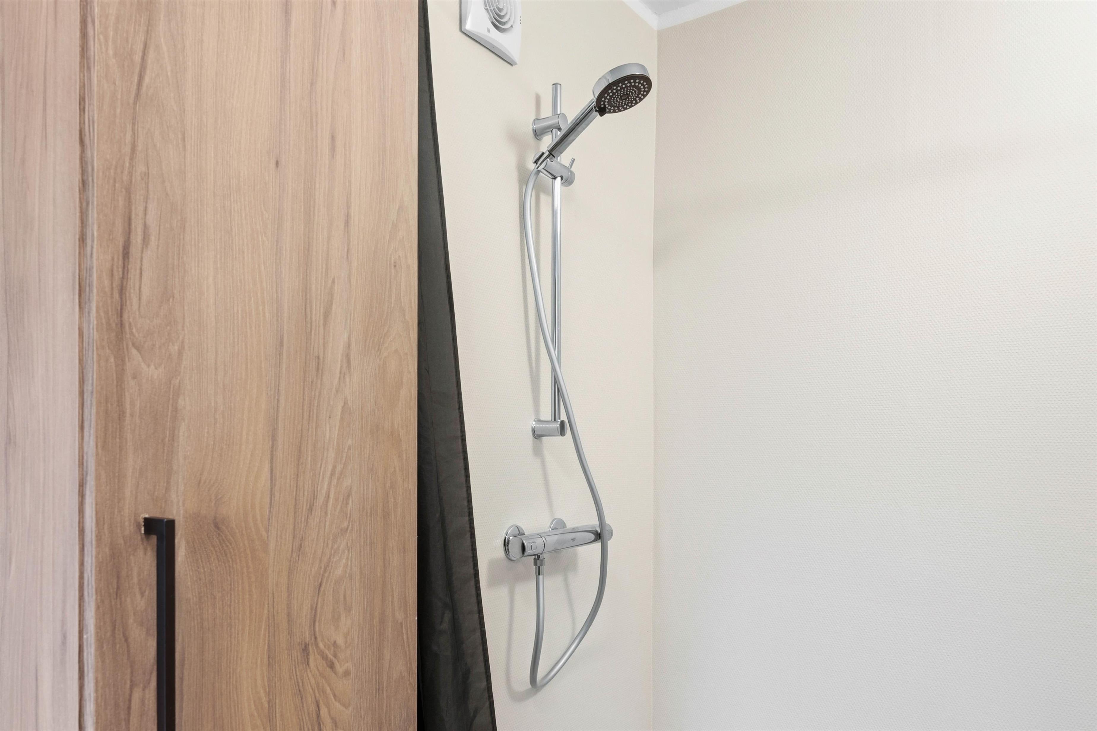 Sammen med træerne giver afskærmningen rigtig fine læforhold, så I selv i blæsten kan nyde de naturskønne omgivelser, og skulle regnen dryppe ned, er den hyggelige udestue det perfekte alternativ, hvor I kan nyde en varm kop kaffe, mens regndråberne trommer på ruden.