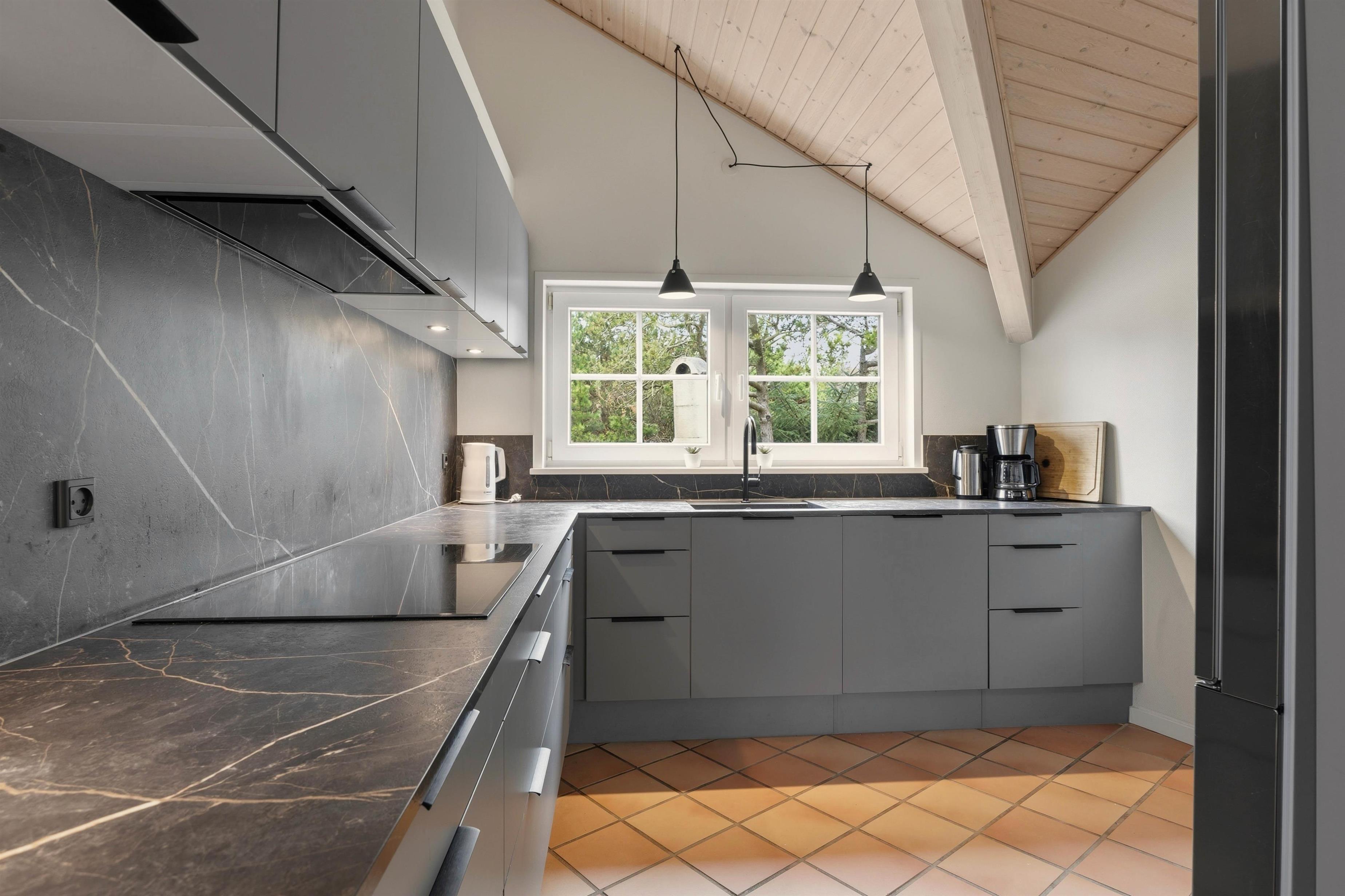 Du behøver ikke vælge mellem ferie og hund: her er hund tilladt, og du kan have op til tre hunde med, så hele flokken kan komme af sted. Hverdagen glider lettere med opvaskemaskine, vaskemaskine og tørretumbler, især når I har været ved stranden eller haft en dag med fuld fart på. Til bilen og cyklerne har du en carport med plads til to biler eller cykler, så ankomst og afgang føles ukompliceret. Og når nogen vil noget andet end fælles hygge, er der en separat tv- eller gamerafdeling på den anden hems – ideelt, når I gerne vil kunne være sammen uden at skulle lave det samme. Bemærk, at slutrengøring er obligatorisk, så du kan bruge de sidste ferietimer på det, der tæller: at være til stede.