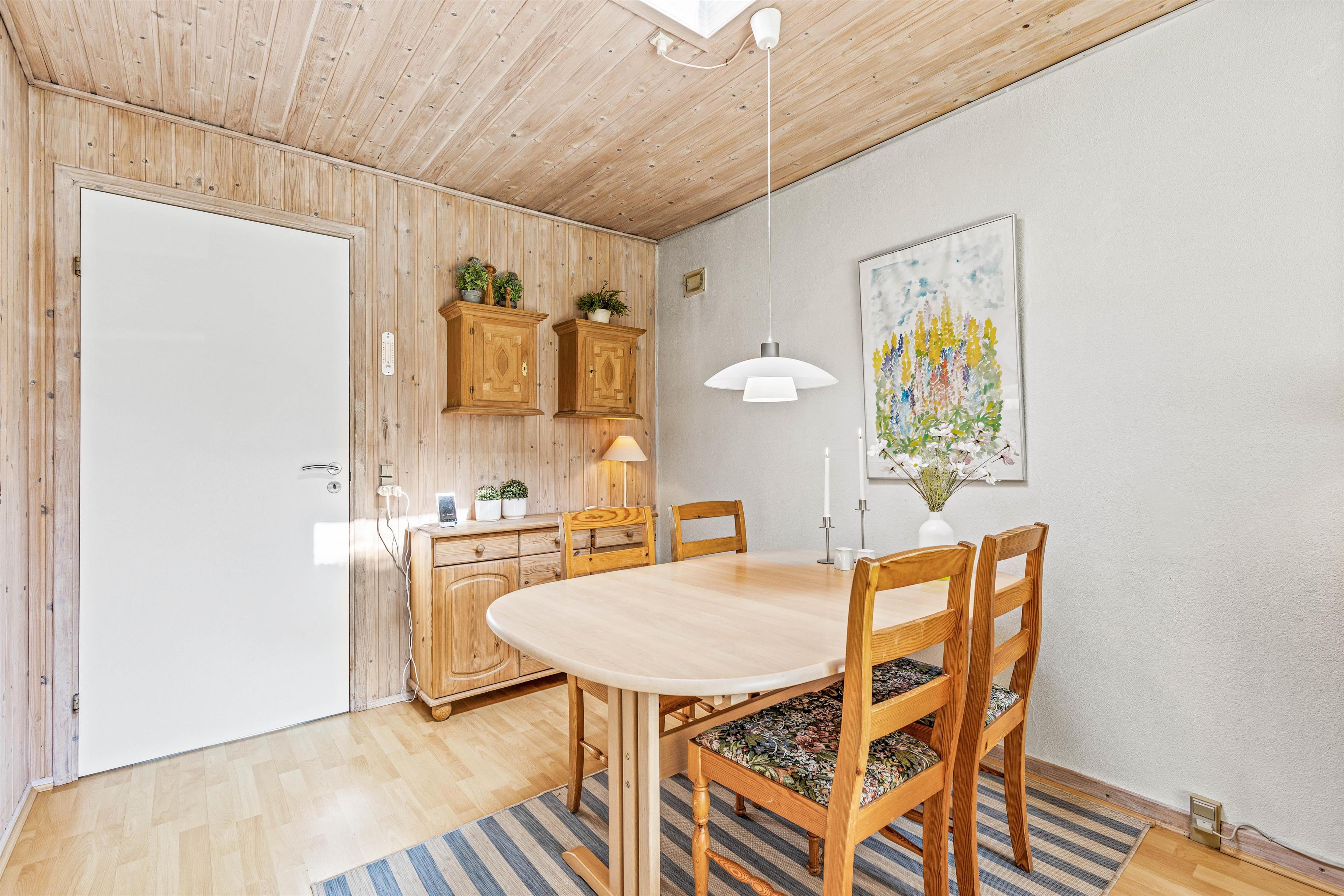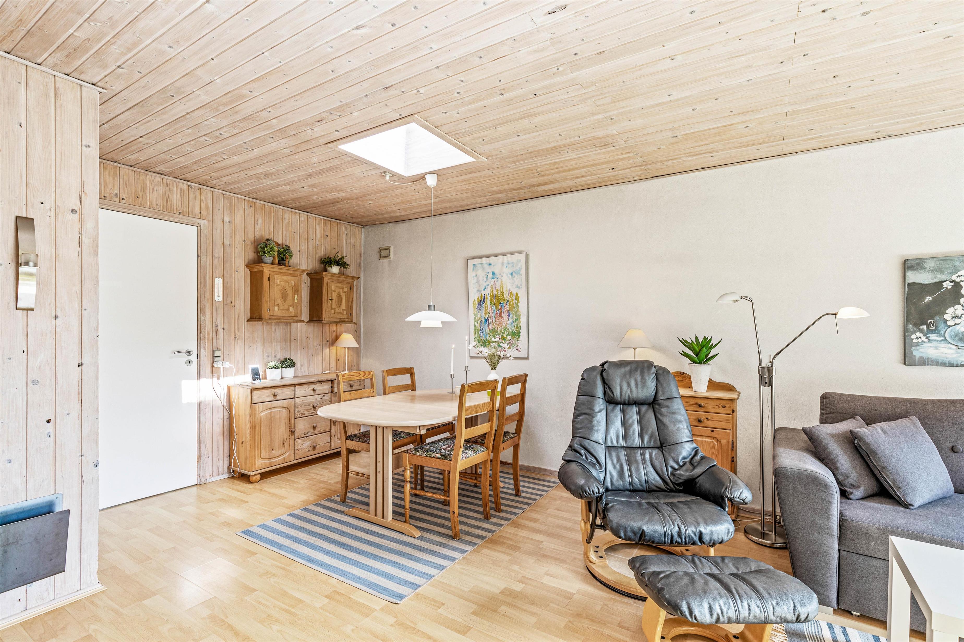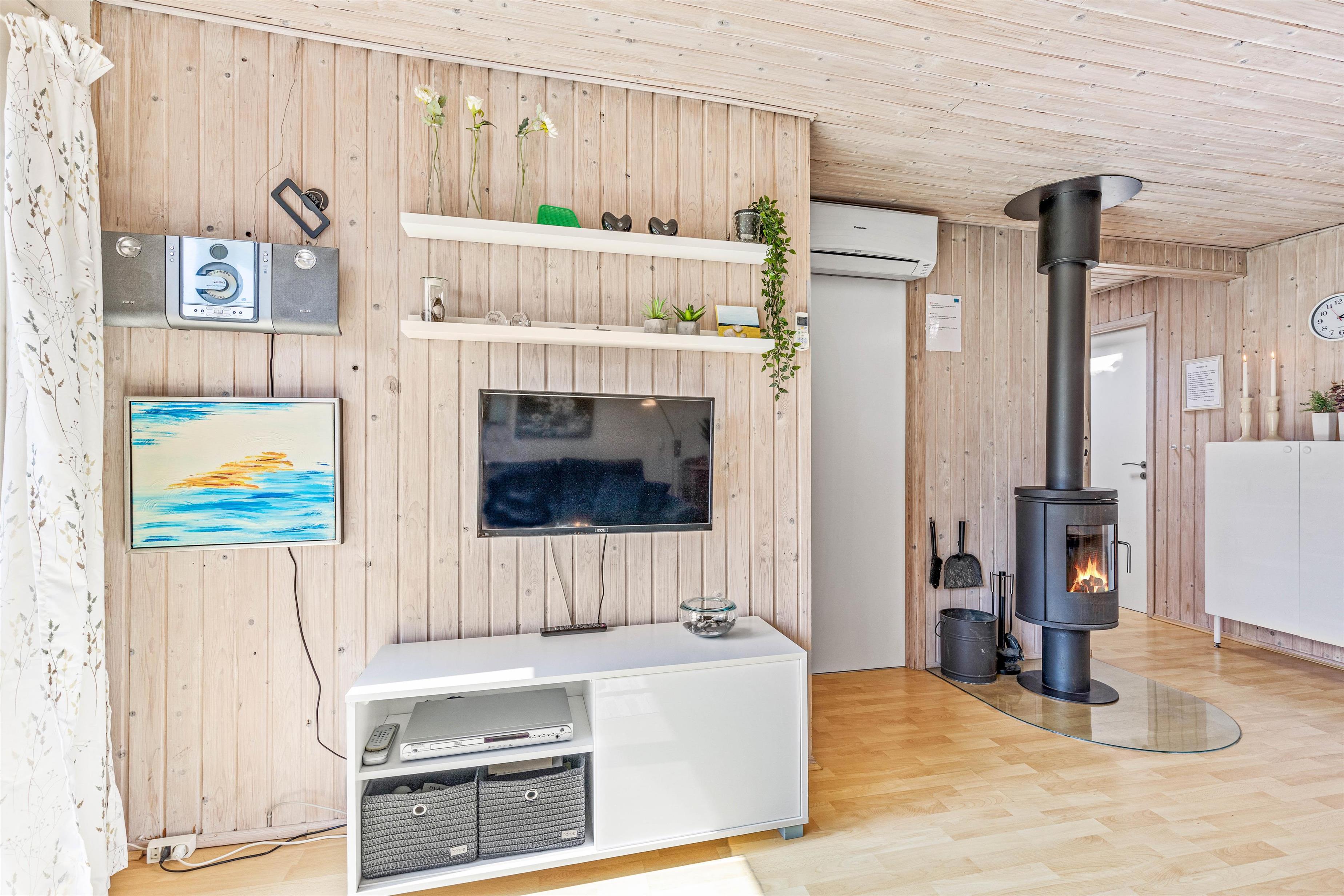 I sommerhuset på Fyrgården 1 er rammerne sat for en hyggelig ferie. Feriehuset har en personlig indretning, hvor der er garanti for mange gode feriestunder. I opholdsstuen er brændeovnen med til at fuldende feriestemningen med sine knitrende flammer, og på kølige aftener sørger den for god varme.