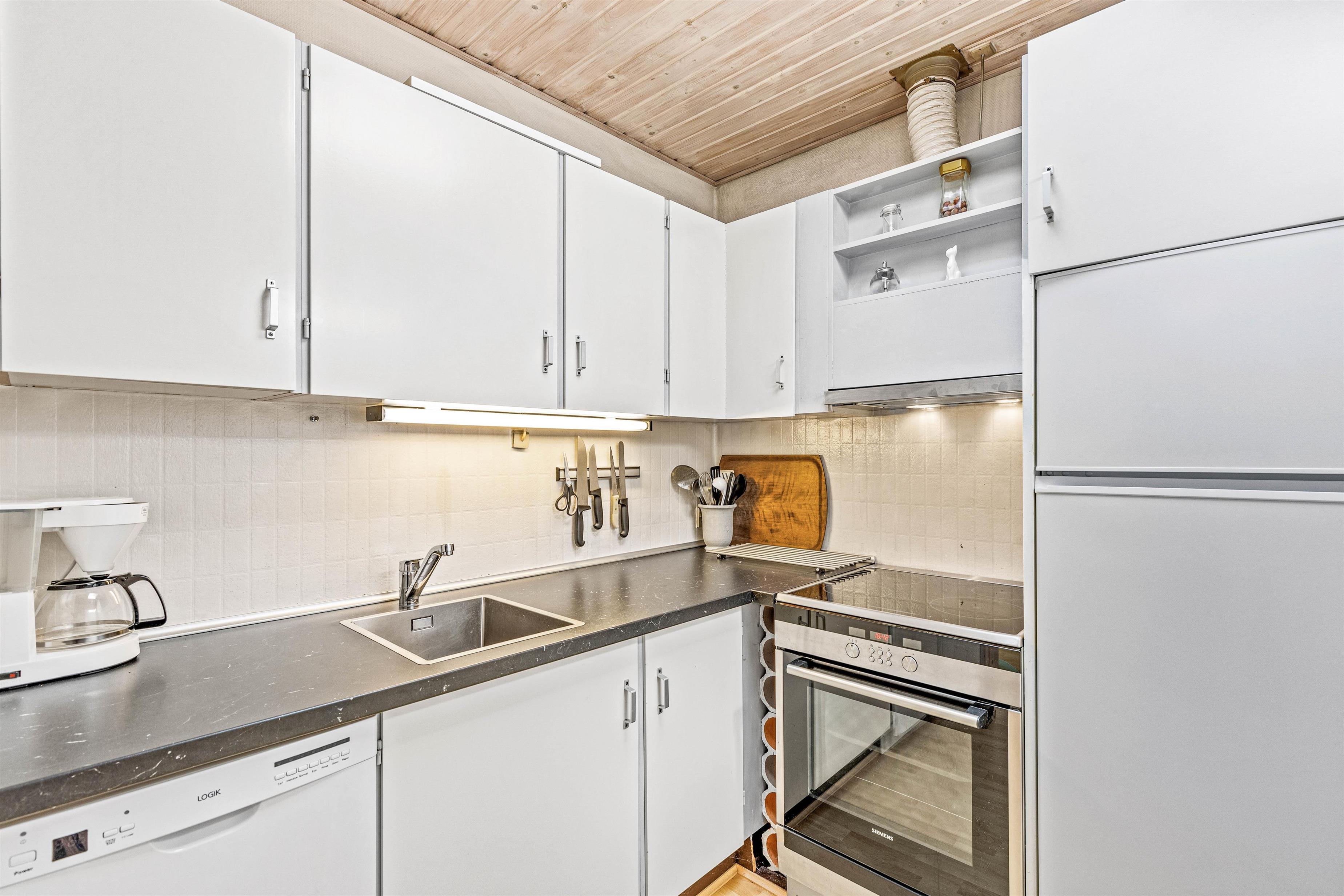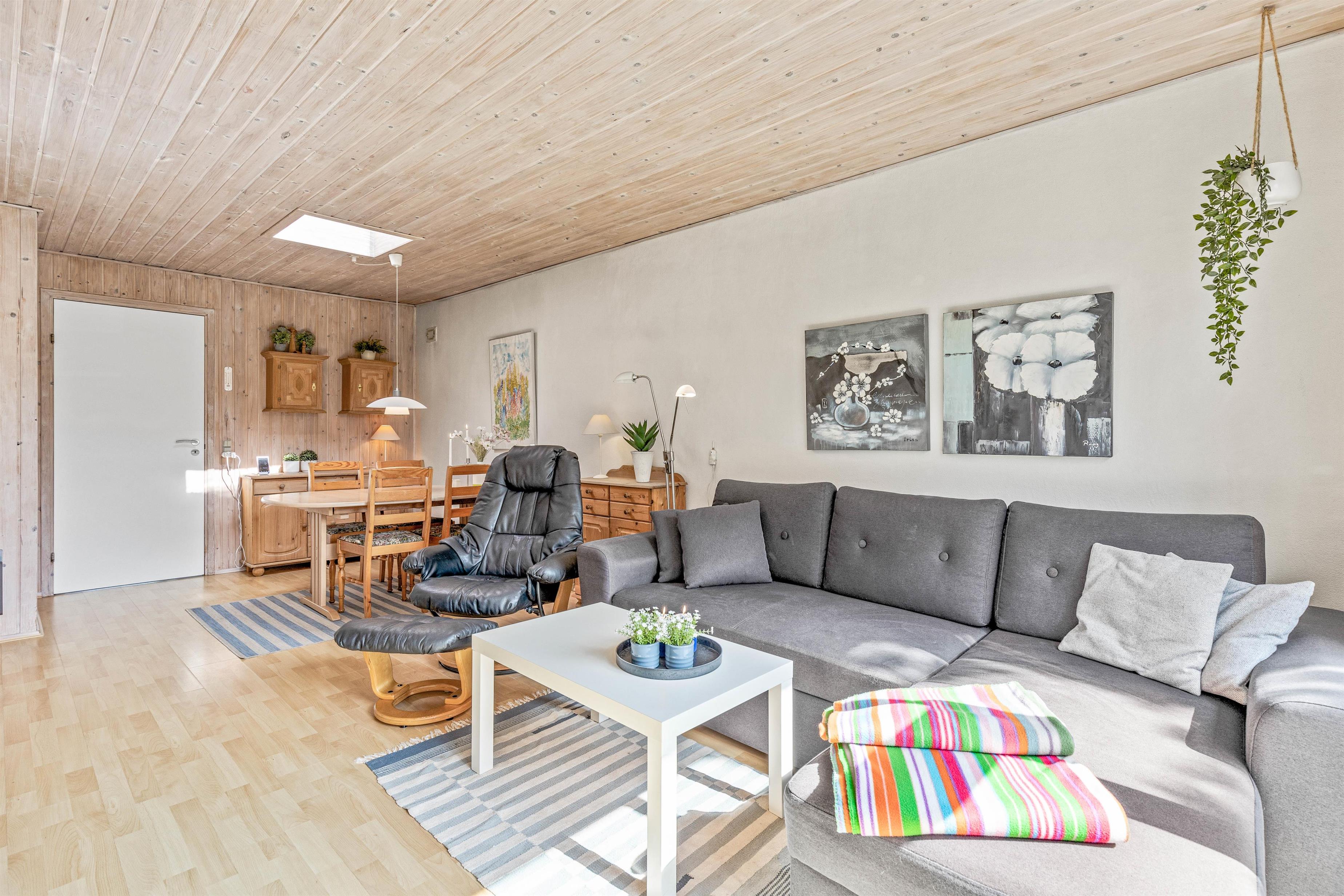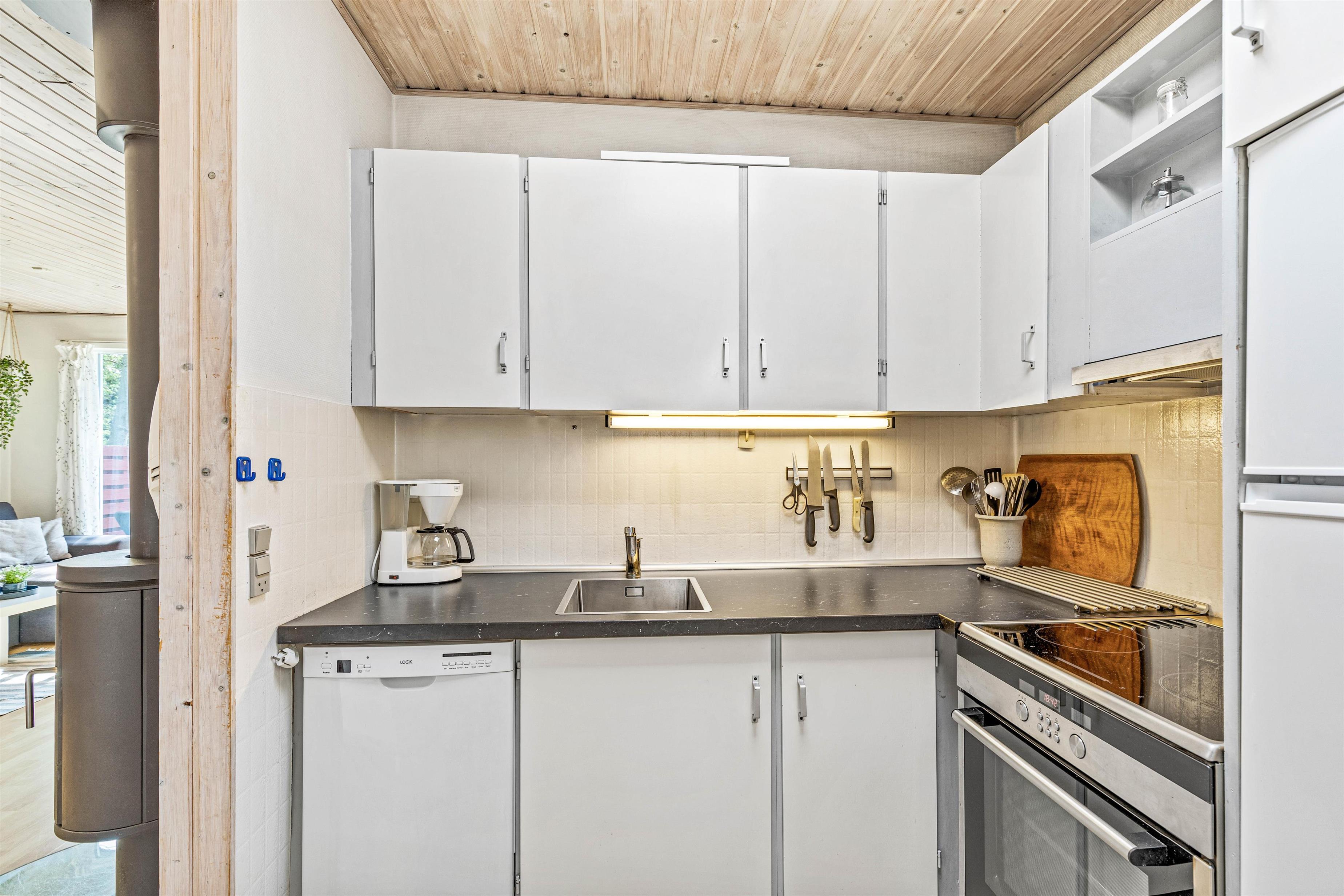 I sommerhuset på Fyrgården 1 er rammerne sat for en hyggelig ferie. Feriehuset har en personlig indretning, hvor der er garanti for mange gode feriestunder. I opholdsstuen er brændeovnen med til at fuldende feriestemningen med sine knitrende flammer, og på kølige aftener sørger den for god varme.